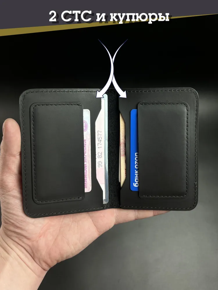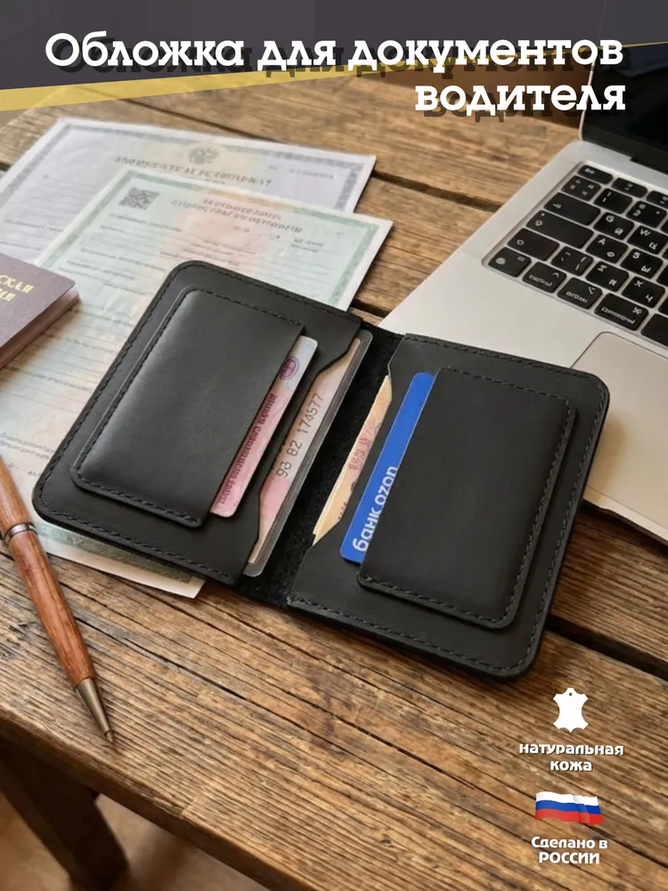 Портмоне для автодокументов из натуральной кожи - идеальный выбор для современных мужчин, ценящих стиль и функциональность. Это элегантное мужское портмоне станет незаменимым аксессуаром для любого автолюбителя, обеспечивая безопасное хранение водительских документов, кредитных карт и наличных денег. Компактное портмоне для автодокументов изготовлен из натуральной кожи. Внутри только необходимое - два отделения для автомобильных документов СТС и для двух карт (водительских прав). Снаружи на задней стороне - карман "быстрого доступа". Благодаря стильному и лаконичному дизайну, портмоне станет прекрасным подарком для мужа, брата, отца или друга на любой праздник. Изделие поставляется в подарочном картонной коробке. Обладая компактными размерами, портмоне удобно лежит в руке и не занимает много места в сумке или бардачке автомобиля. Подарите себе или своим близким эту изысканную вещь, подчеркивающую статус и вкус ее владельца. Портмоне для автодокументов – это не просто аксессуар, это незаменимый помощник в жизни каждого водителя, объединяющий в себе утонченность и практичность. Вы можете быть уверены, что с портмоне Raihand все самое важное всегда будет под рукой, в полной безопасности и комфорте. Обратите внимание!!! Размеры модели не позволяют поместить ПАСПОРТ.