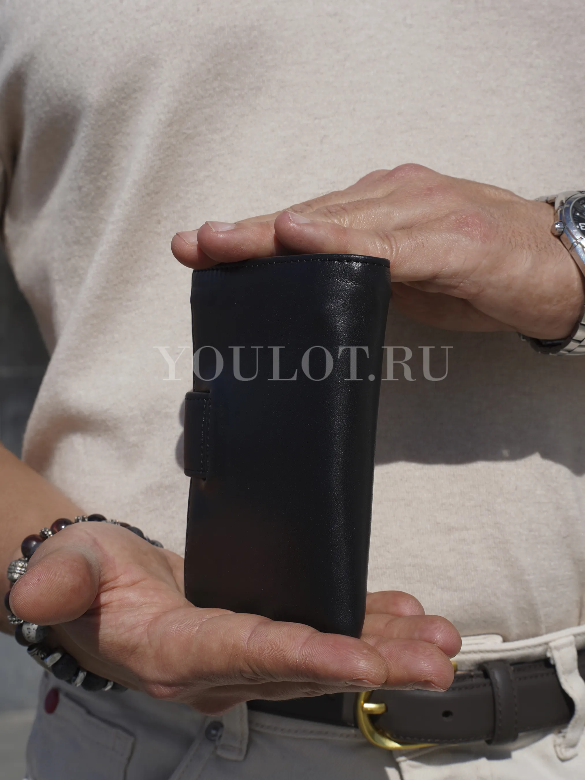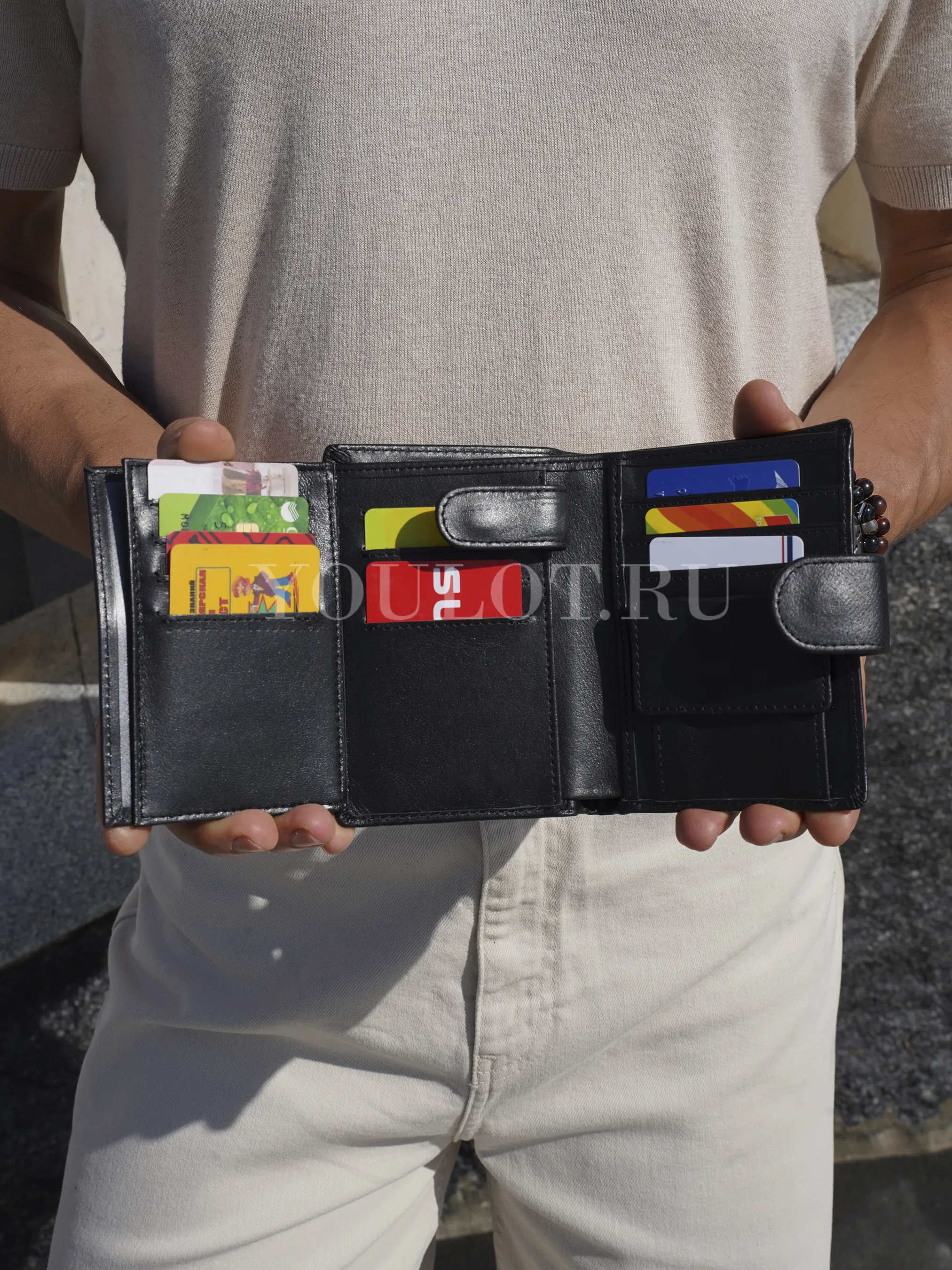 Кошелек сочетает вместительность и компактность. Его размеры — 13,5 × 10 × 2 см — позволяют удобно носить портмоне в кармане куртки, брюк или в сумке, не занимая много места.