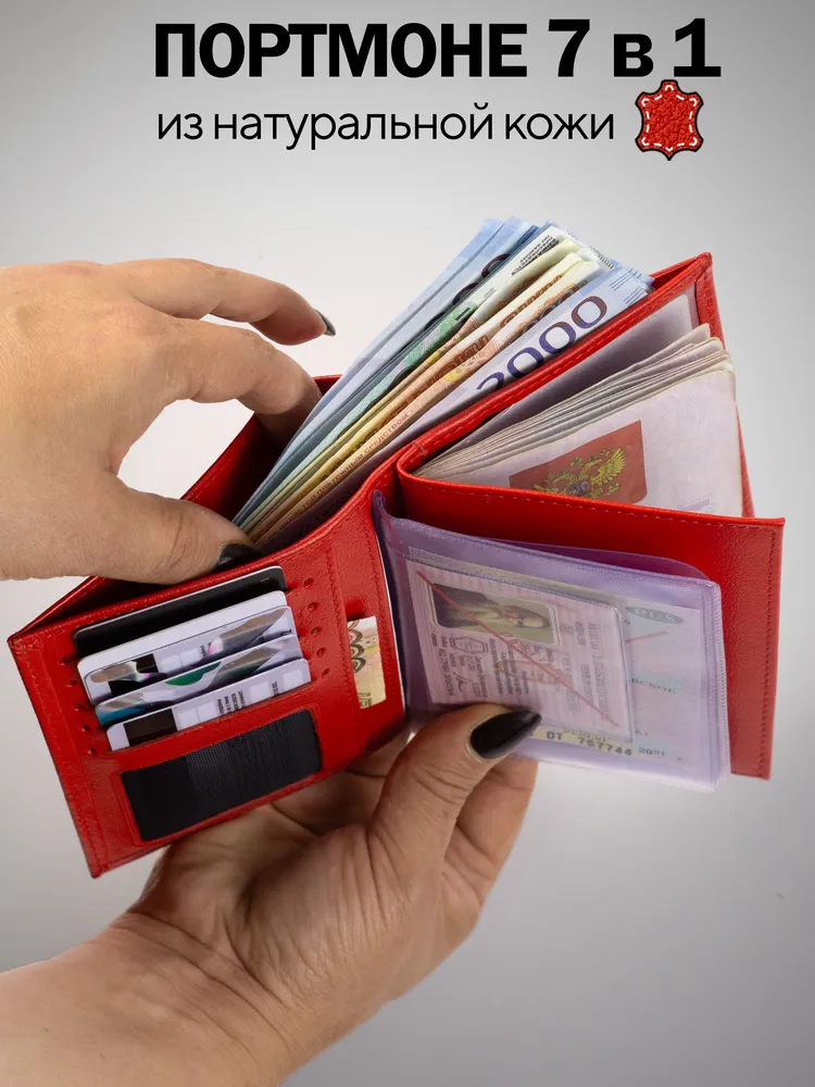 Портмоне из натуральной кожи для автодокументов и паспорта; кошелек; бумажник