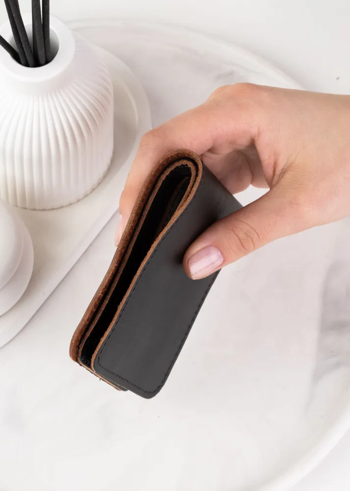 Маленький компактный кошелек из натуральной кожи - выбор настоящих ценителей стиля. Простой, стильный, брутальный, надежный и практичный - женщины точно будут в восторге! Этот кошелек привлекает женщин! Да-да, вы не ослышались. Именно так. Но в чем секрет? Дело в том, что женщинам нравятся брутальные, уверенные в себе, и смелые мужчины, которые не боятся рисковать и смотрят опасности прямо в глаза. Такие “ковбои” вызывают у женщин целый водопад ярчайших эмоций, словно фейерверк в новогоднюю ночь. И именно такими характеристиками обладает данный кошелек. Поэтому, все гениально и просто: женские эмоции, вызванные таким кошельком, моментально транслируются на его обладателя! Как следствие: с таким портмоне комплименты и восхищенные взгляды женщин вам обеспечены.