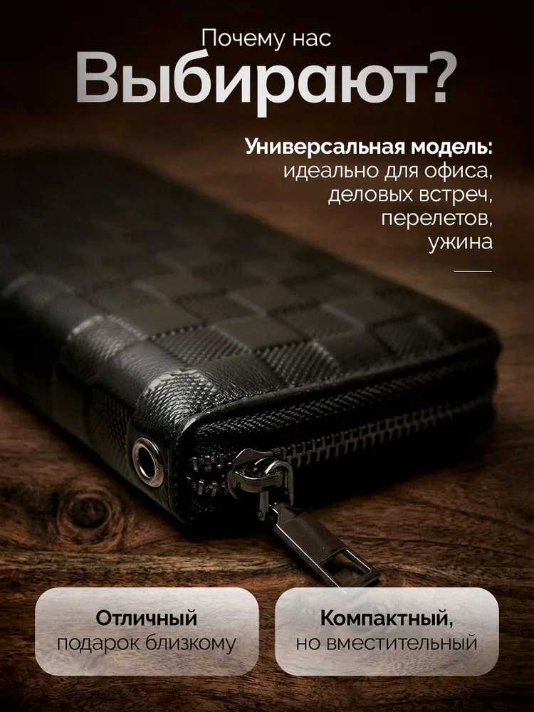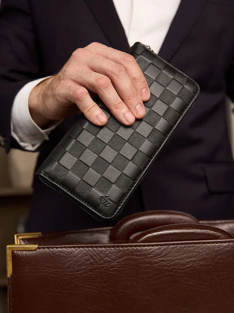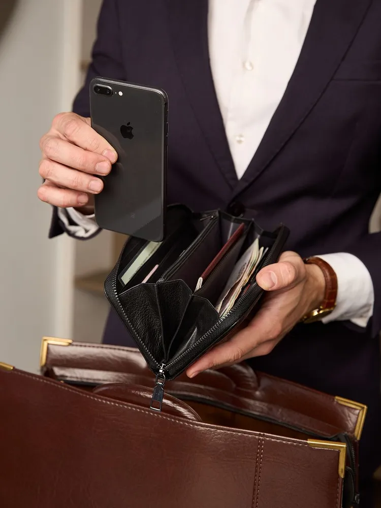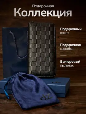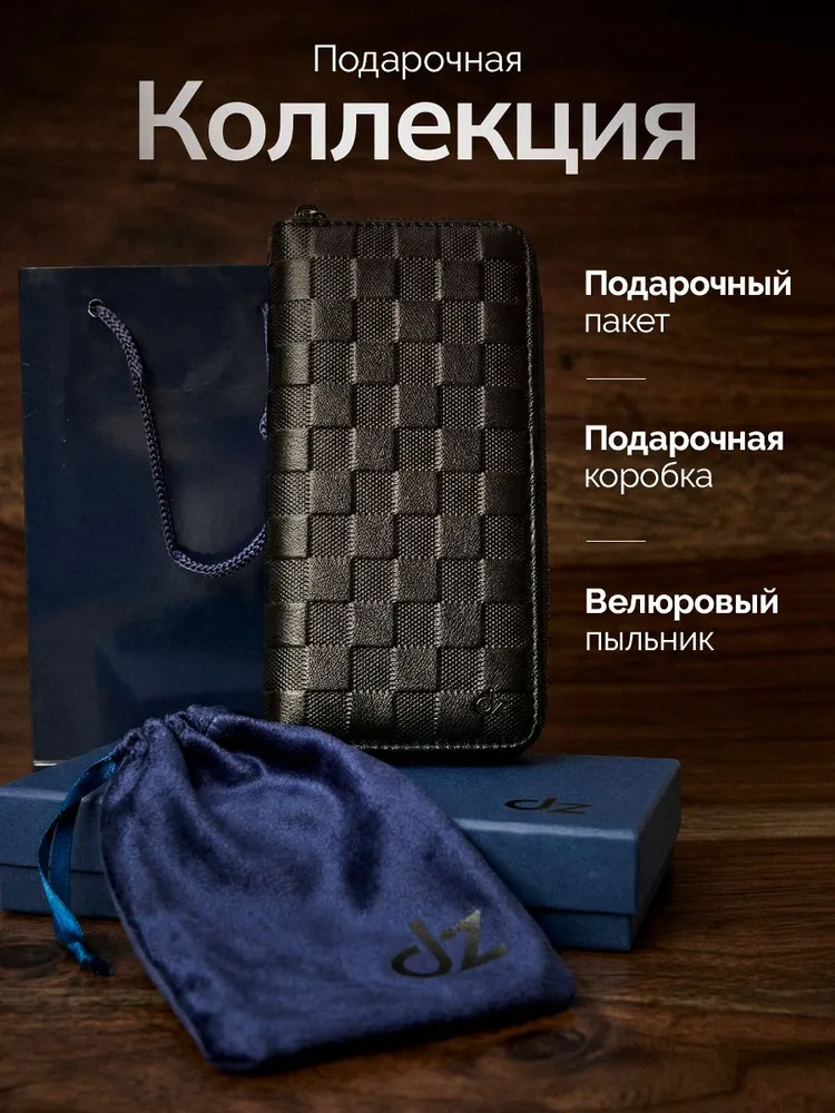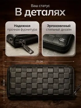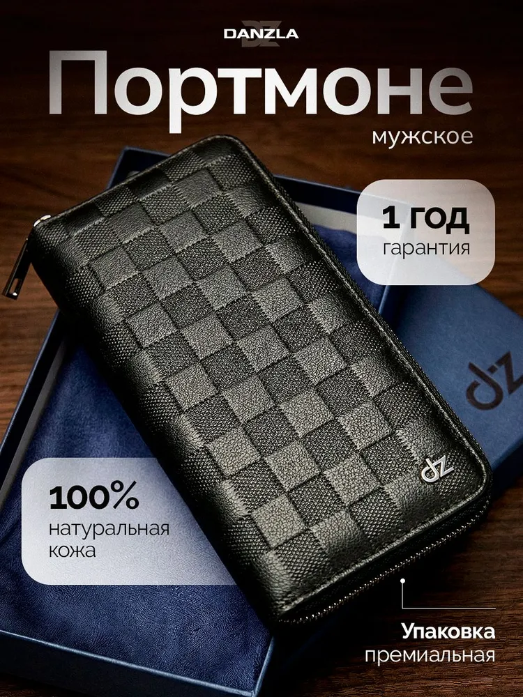 Портмоне мужкое на молнии, кошелек из натуральной кожи "DanZla", черный