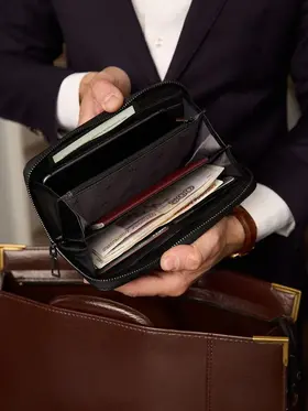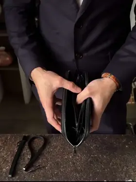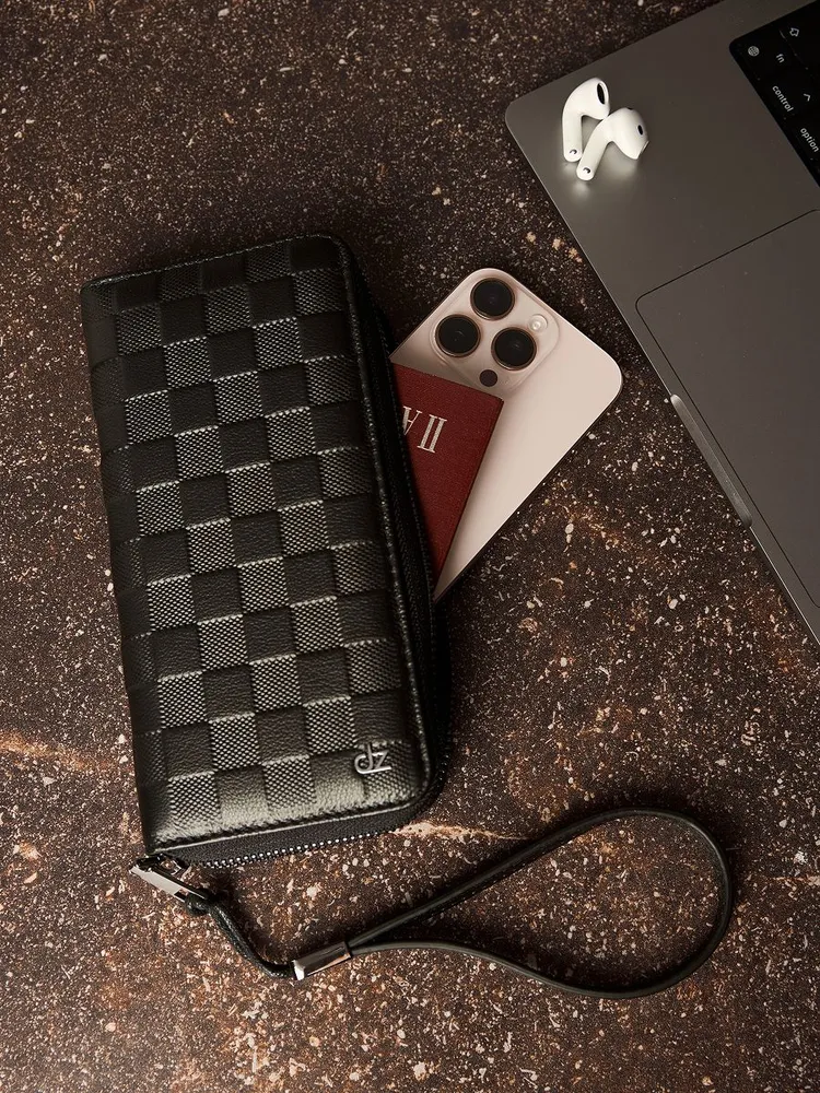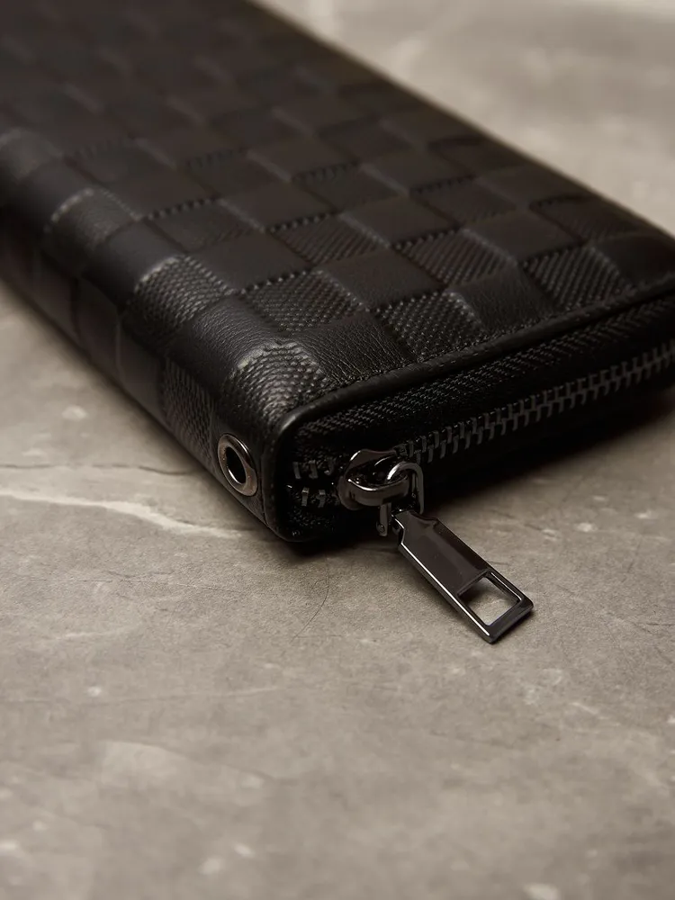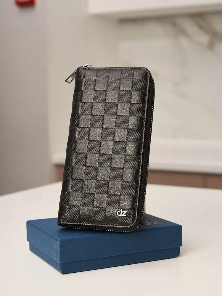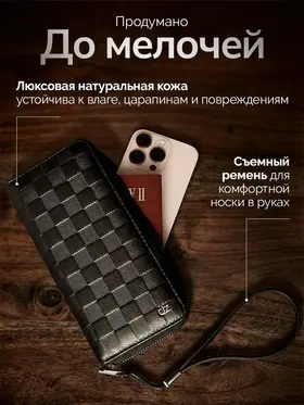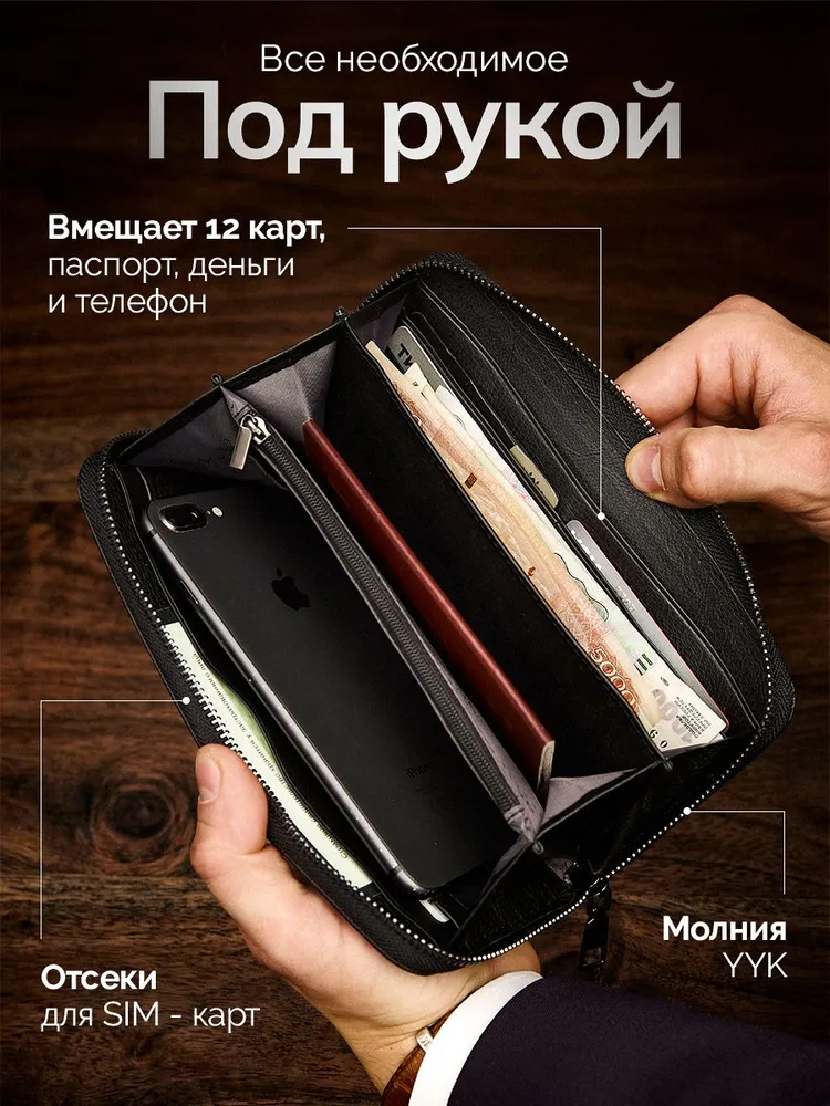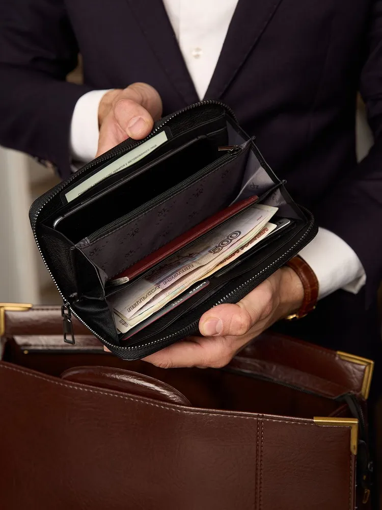 Портмоне мужкое на молнии, кошелек из натуральной кожи "DanZla", черный