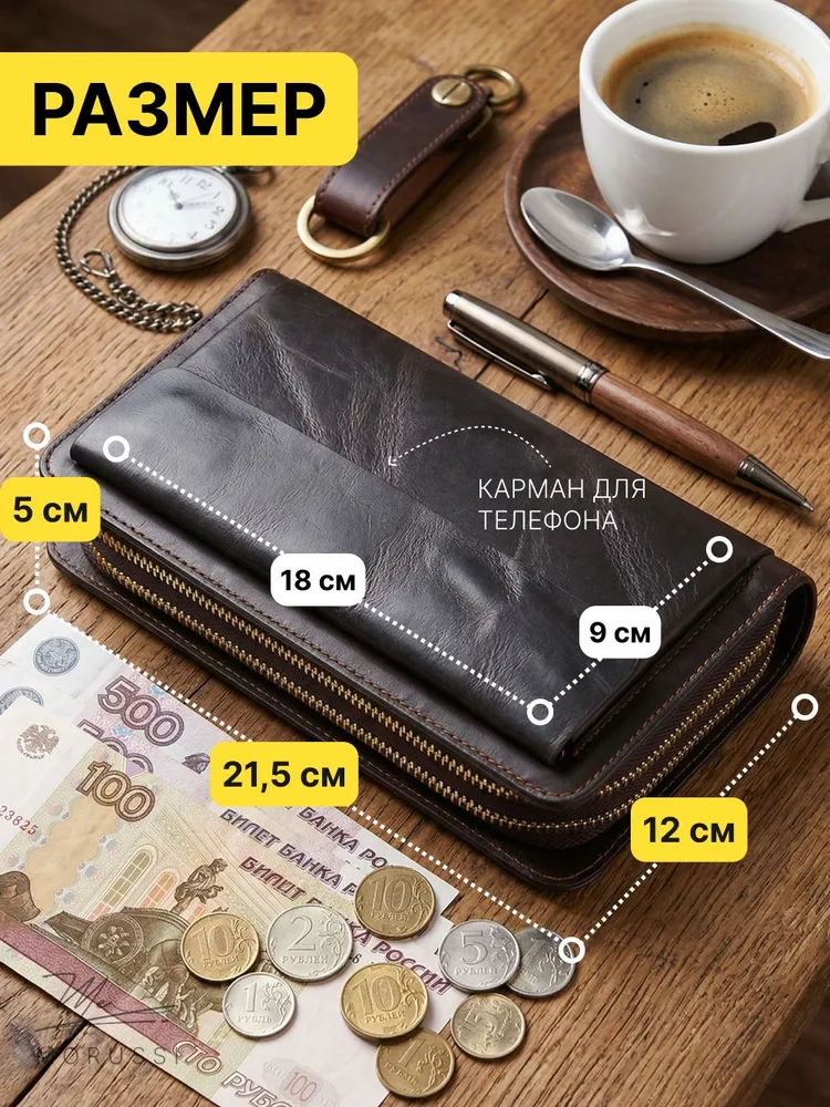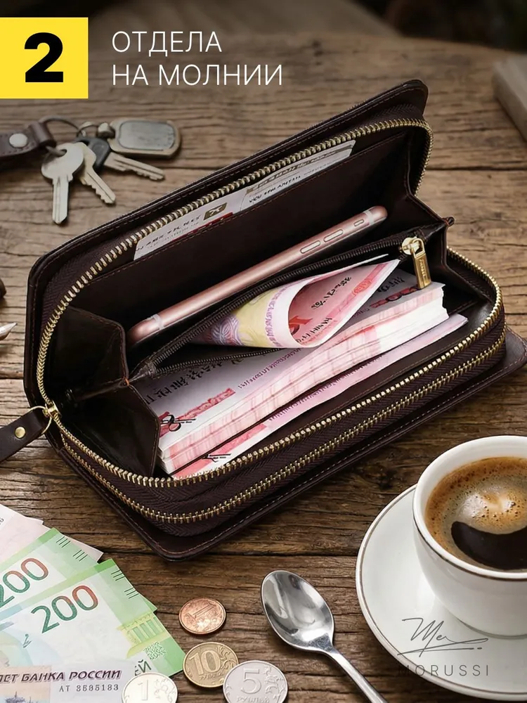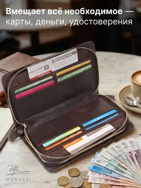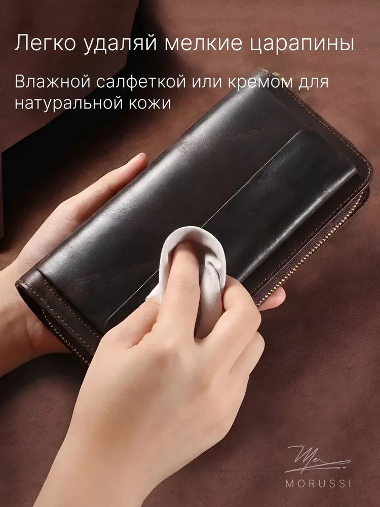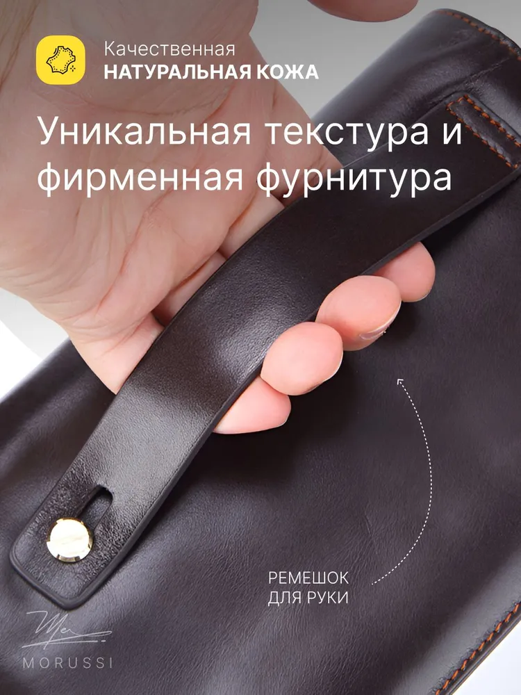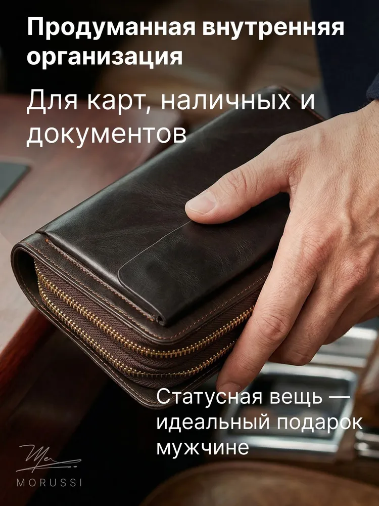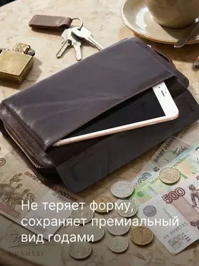 Элегантный мужской портмоне от MORUSSI выполнен из натуральной кожи, обеспечивая долговечность и приятную текстуру. Компактный формат идеально вмещает документы, наличные и карты, сохраняя порядок в повседневной сумке или рюкзаке. Отделение с надежной молнией защищает содержимое от выпадения, а минималистичный дизайн подходит как для деловых встреч, так для неформальных ситуаций. Темно-коричневый оттенок гармонично сочетается с классическими и современными образами. Продукт базовой коллекции создан для тех, кто ценит функциональность без лишних деталей. Легкий вес и компактные размеры обеспечивают комфорт при ношении даже в ограниченном пространстве.