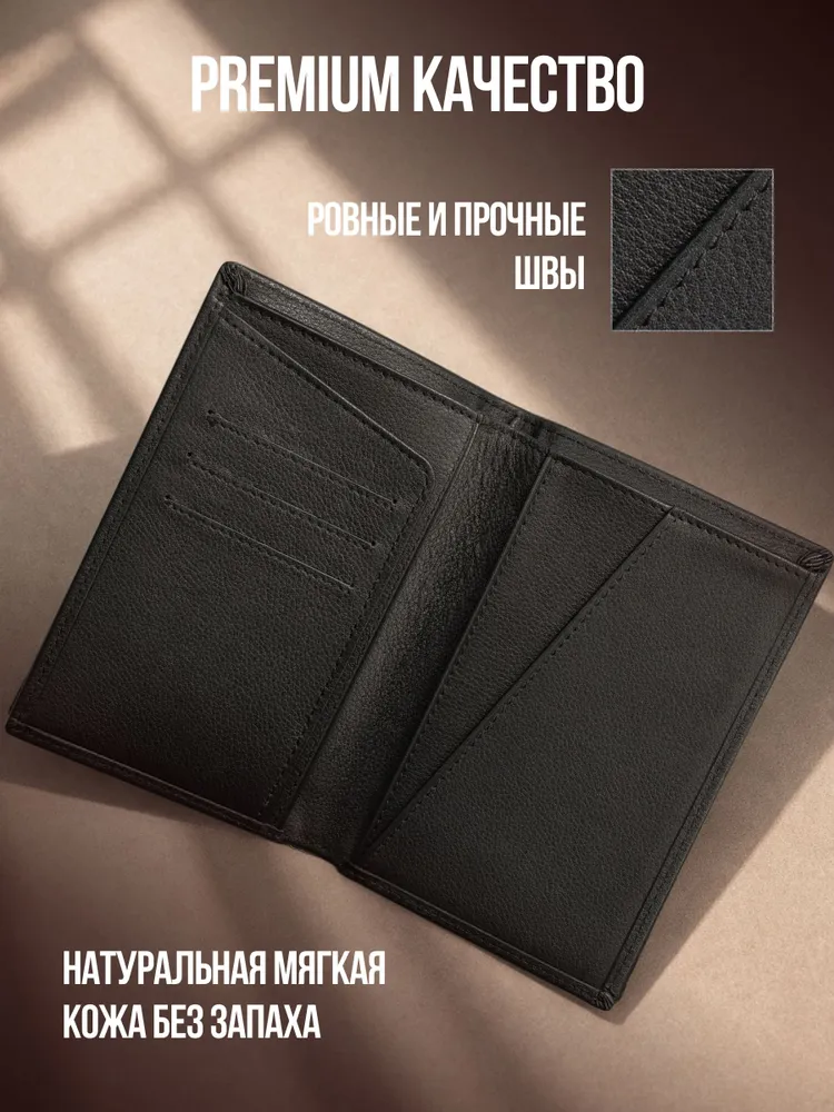 Незаменимый аксессуар. - Натуральная кожа - Удобный и функциональный - Премиальное качество Узнайте больше в описании ↓ Бумажник для паспорта и документов. Полезный мужской аксессуар для всех, кто хочет держать важные мелочи, карты и документы всегда под рукой. Выполненный из натуральной кожи, которую приятно держать в руках. Ультратонкий и компактный. При своей высокой функциональности, кошелек занимает весьма мало в сумке, портфеле или рюкзаке. Вместительный и прочный. Несмотря на компактный размер, в бумажнике 6 надежных отделений: для купюр, паспорта, автодокументов и карт. Качественная прошивка позволит прослужить кошельку долгое время. Практичность. Стиль. Универсальность. Это не просто практичный, но и модный аксессуар для любого мужчины, ценящего качество и стиль. Идеальный мужской презент! Красивая и плотная подарочная коробка, в которой вы смело можете дарить кошелек дорогим, важным и близким вашим людям. Добро пожаловать в наш магазин бренда TECUM! Кликайте на фото, заходите к нам на страничку и выбирайте подходящие для вас или ваших близких аксессуары нашего магазина под ваш стиль жизни. Спасибо за выбор нашего магазина. Ваш бренд TECUM!