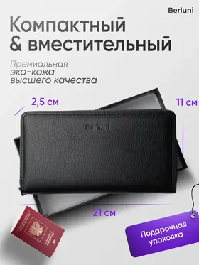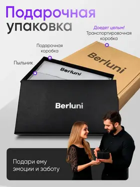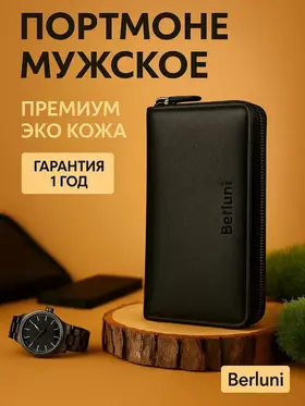 Стиль и Долговечность: Портмоне из Эко Кожи от Berluni Портмоне из эко кожи премиум качества от Berluni - это очень стильный и долговечный кошелек, несмотря на то, что это не натуральная кожа. Premium подарок Брендовое портмоне Berluni для мужчин идеально сочетает в себе элегантность и функциональность. Изготовлено из премиум эко кожи, оно дарит ощущение роскоши и долговечности. Мягкий материал приятно держать в руках, а модный дизайн подчеркнет вашу индивидуальность. Максимум удобства: портмоне с 12 слотами для всего важного! Портмоне оснащено 12 слотами для банковских карт и карточек, что обеспечивает удобное хранение всех необходимых пластиковых карт. Также имеется отдельное отделение на молнии, куда можно положить много мелочи или монеты. Место для любого смартфона! В портмоне имеется 5 больших отделений, где без труда разместятся купюры и документы. Паспорт, СТС и водительское удостоверение (права). И много места для наличных денег. Надёжность и безопасность Застежка на молнии надежно защитит содержимое вашего портмоне. Место для всего необходимого! Это не просто кошелек, а настоящий аксессуар, который легко трансформируется под любые нужды. Внутри найдется место для паспорта и телефона. Автодокументы всегда будут под рукой. Есть и место для хранения контактных данных важных партнеров. Удобство в носке В комплект входит ремешок на запястье, с ним портмоне ещё удобнее носить в руке. Подарок с изюминкой: стильная упаковка от Berluni! Упаковано всё в брендированный пыльник, подарочную брендированную коробку и транспортировочный короб, поэтому подарок сохранит стильный и модный вид. Выбирай лучшее - покупай Berluni!