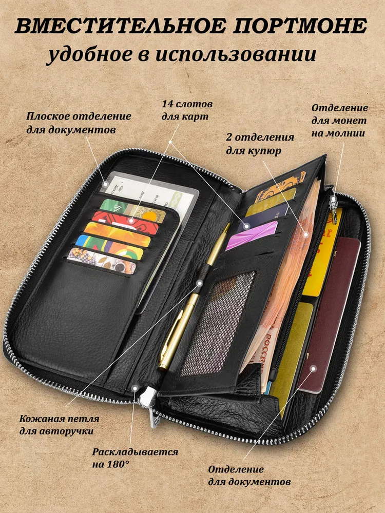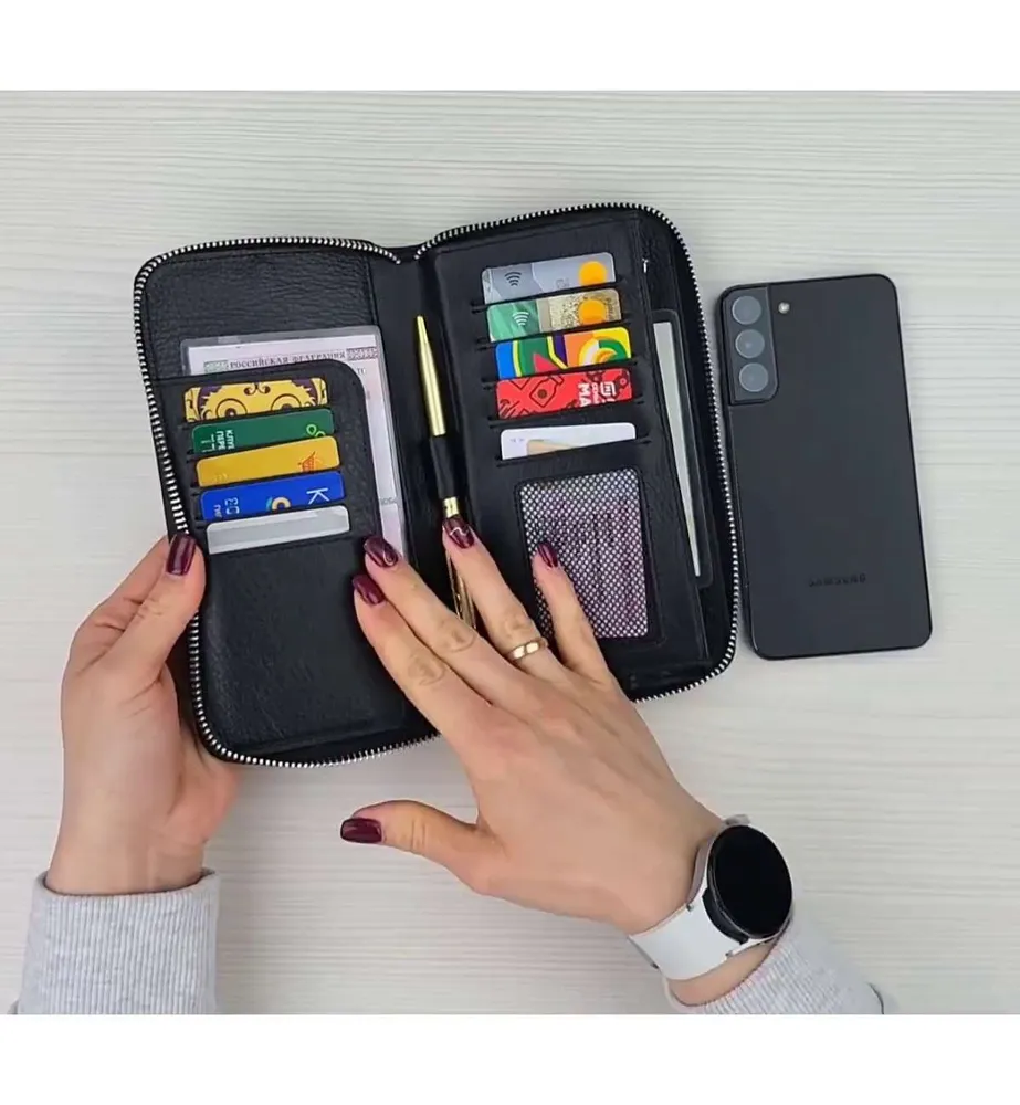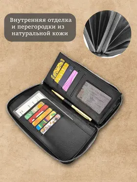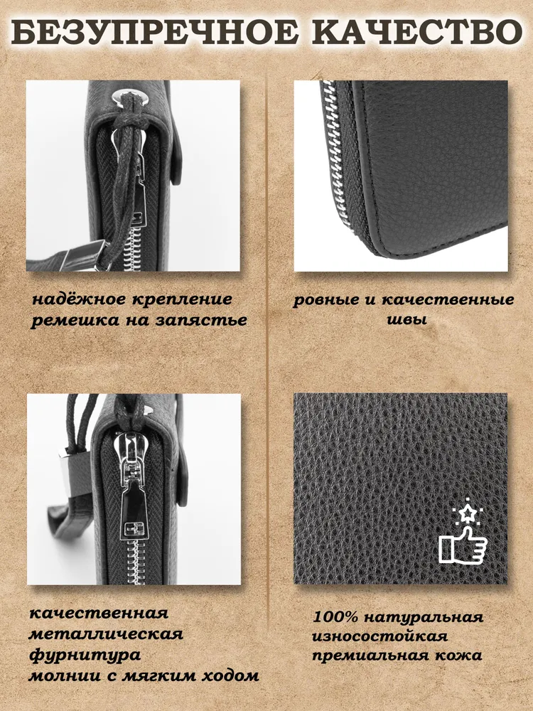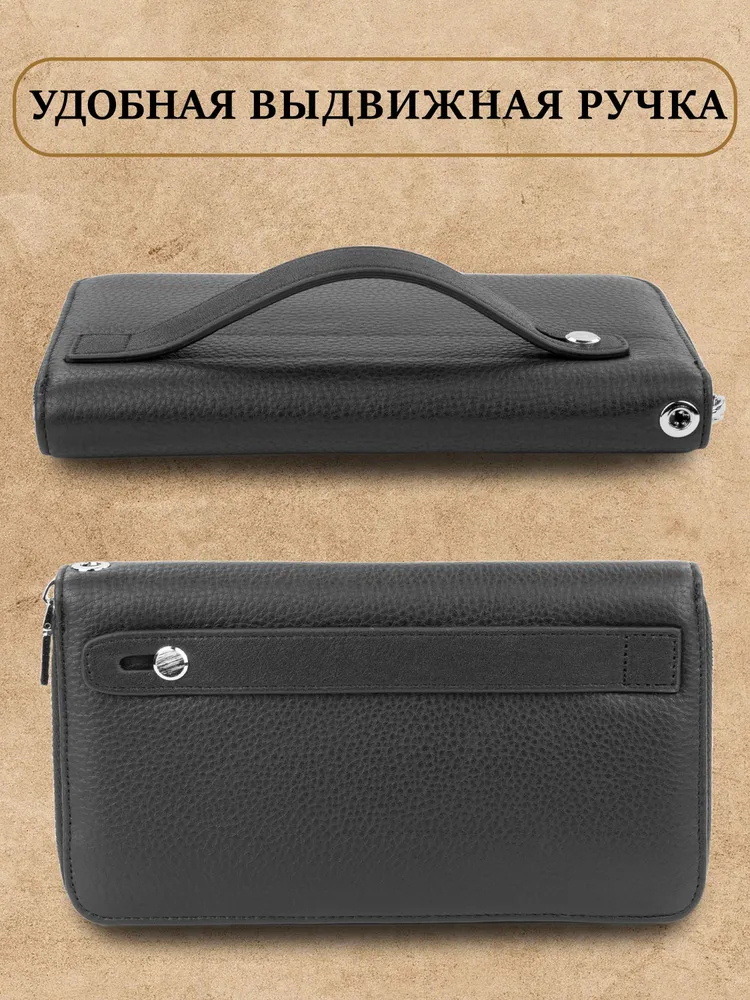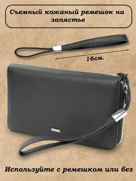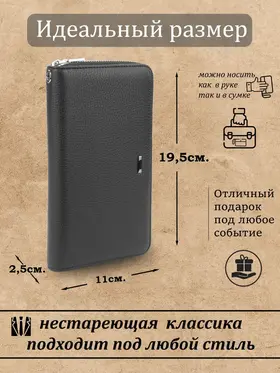 Ищете идеальное портмоне, которое сочетает в себе вместительность и стильный дизайн? Тогда обратите внимание на наше портмоне "Galteria" из натуральной кожи! Этот аксессуар станет незаменимым в повседневной жизни, подчеркнув ваш статус и обеспечив сохранность ваших ценностей. Наше портмоне изготовлено из высококачественной натуральной кожи, что гарантирует его долговечность и элегантный внешний вид. Оно имеет достаточно места и много различных отделений и карманов для хранения наличных денег; купюр и монет, кредитных карт, документов, ключей и даже смартфона. Благодаря этому, вы можете всегда иметь при себе все необходимое, не перегружая карманы. Ровные швы, плотная износостойкая натуральная кожа, железная фурнитура и молнии, подчеркивают премиальное качество. Бумажник мужской состоит из одного отделения оно раскладывается на 180 градусов. Наш мужской кошелек не только практичный, но и стильный. Его дизайн выполнен в современном клатч-стиле, что позволяет носить его как в руке, так и под мышкой. Есть подвижная ручка для более удобной переноски, и съемный ремешок на запястье. Такой аксессуар будет отлично смотреться как в повседневных образах, так и в более формальных ситуациях. Не упустите возможность приобрести идеальное портмоне, которое будет сочетать в себе практичность и стиль. Закажите наше портмоне из натуральной кожи прямо сейчас и наслаждайтесь его удобством и элегантностью каждый день! Наш универсальный мужской кожаный кошелек клатч станет вам незаменимым помощникам на каждый день. Отличный подарок на новый год, 23 февраля и любой другой праздник.
