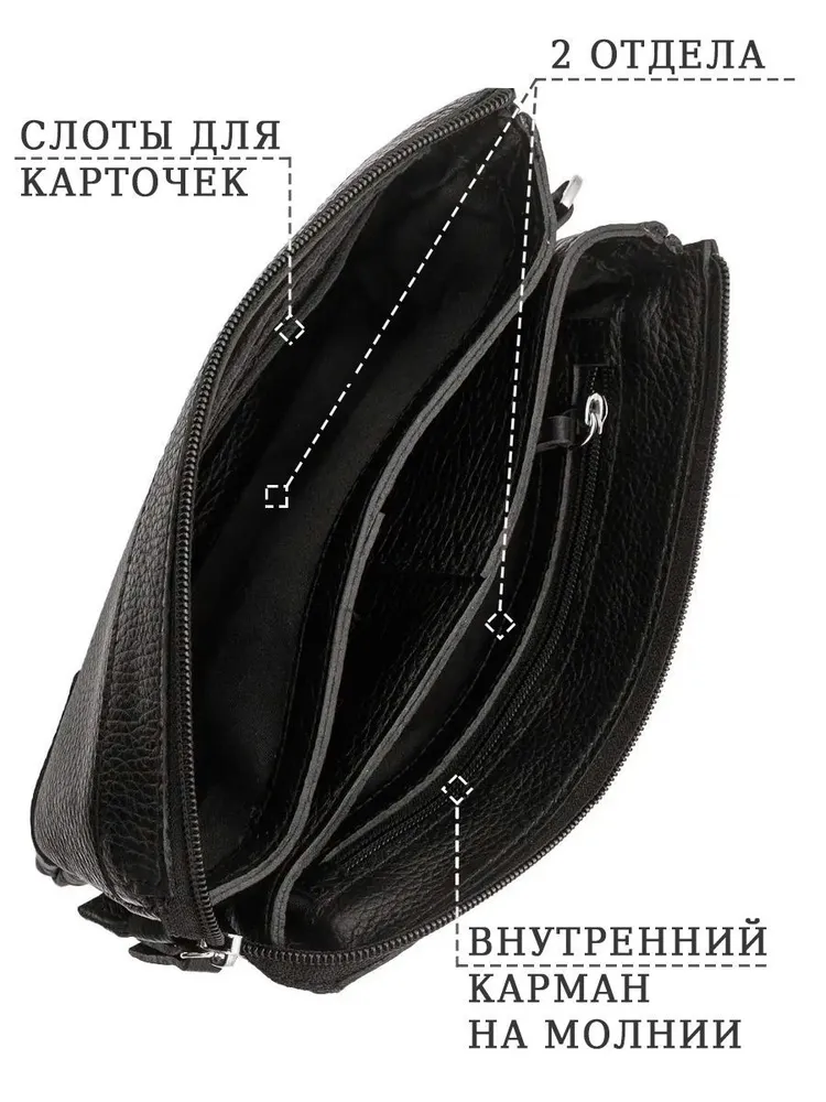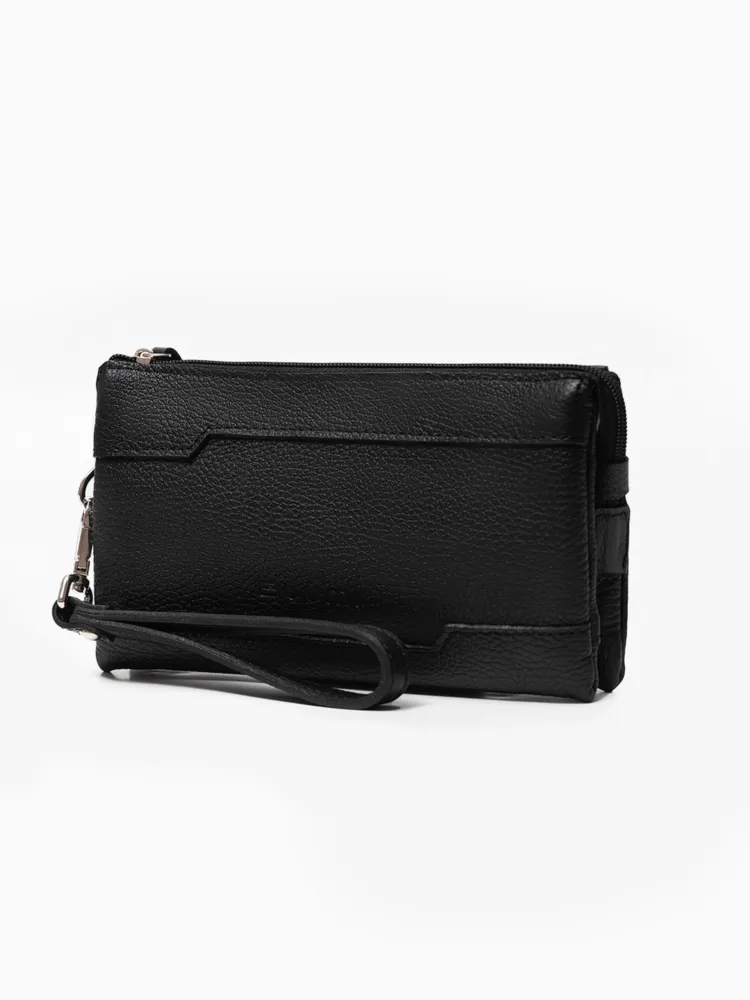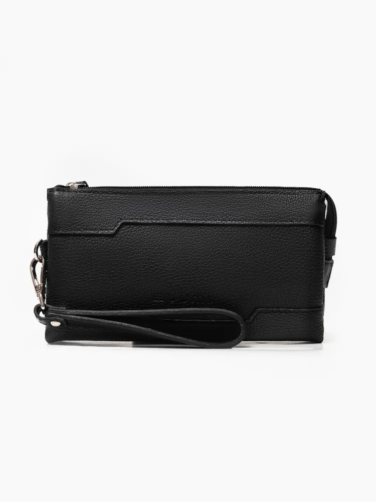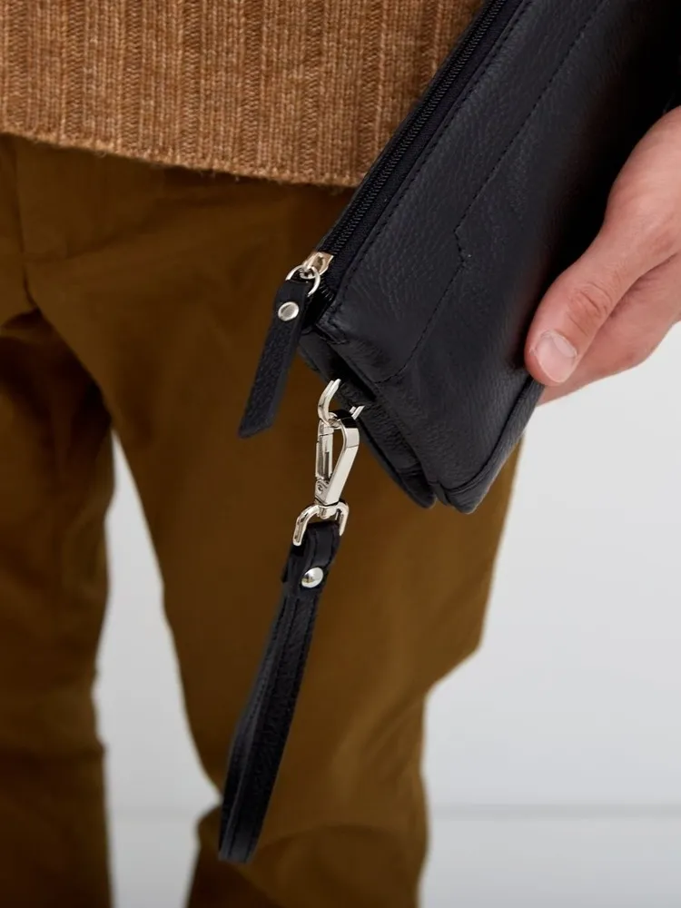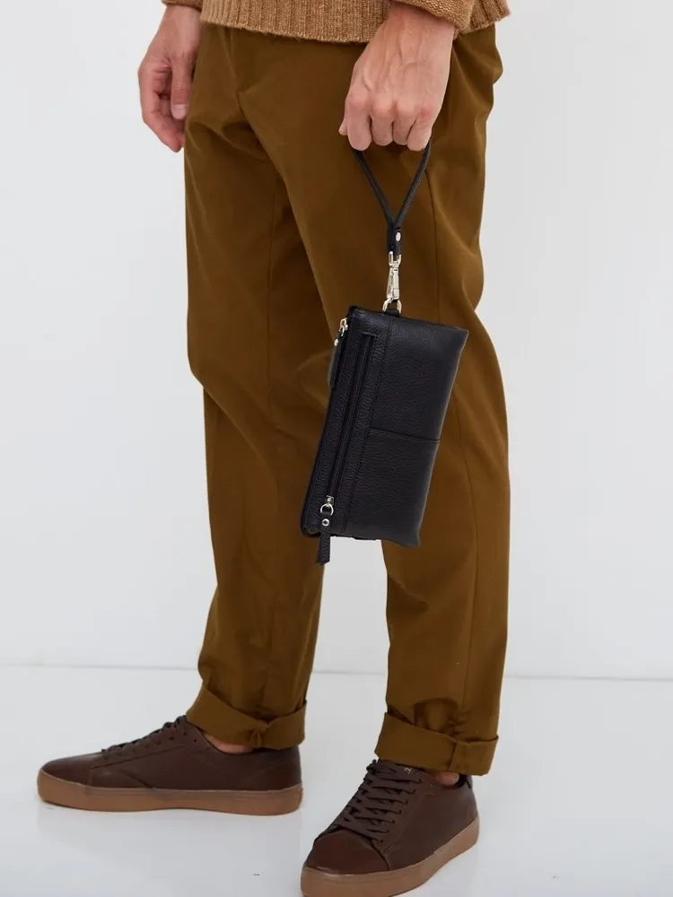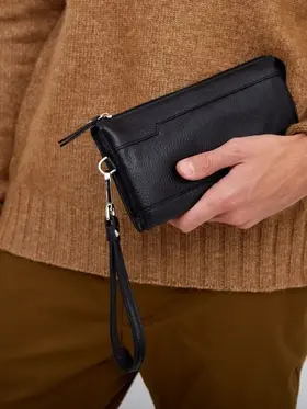 Мужское портмоне/клатч Мужское портмоне является одним из самых необходимых ежедневных аксессуаров. Кошелёк-клатч выполнен из натуральной кожи, вмещает в себя смартфон, купюры, ключи, водительское удостоверение, паспорт, снилс, 6 банковских или дисконтных карт. Портмоне имеет 1 внешний карман на молнии. Внутри: 1 основное отделение + визитница для карточек + открытый карман для хранения банковских карточек и денег 1 основное отделение + 1 карман на молнии для ключей и других ценных вещей 1 дополнительные отделение для карточек, пропуска, канцелярии. Все 3 отделения закрываются молнией, что обеспечит безопасность Вашим вещам. Барсетка имеет съёмную ручку с карабином на запястье благодаря которой аксессуар удобно размещается в руке. Размеры: 12,5х3,5х22см Цвет фурнитуры - серебро. Кожаный кошелек Блуми - отличное сочетание классического дизайна и функциональности, будет прекрасным подарком на любые праздники. Идеальное решение для тех, кто ищет компактный органайзер на каждый день.