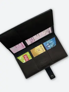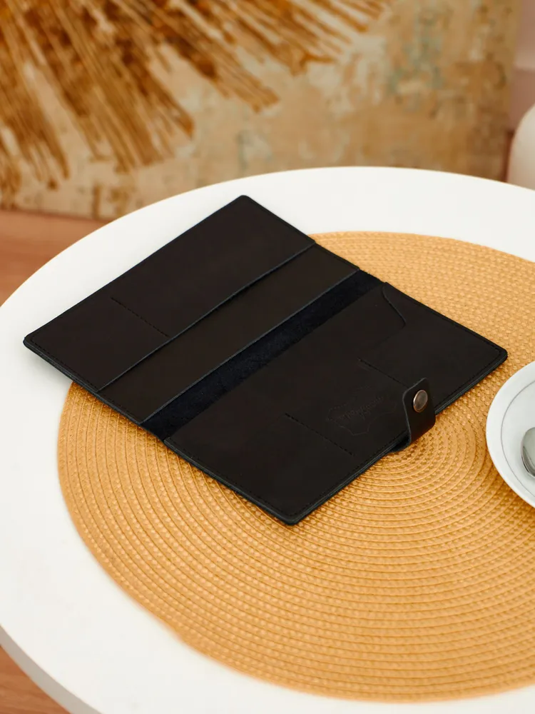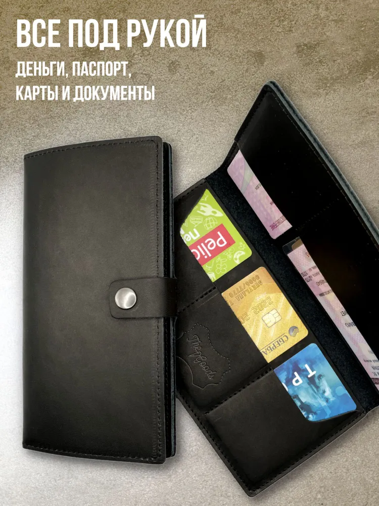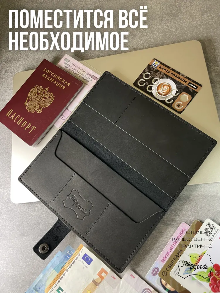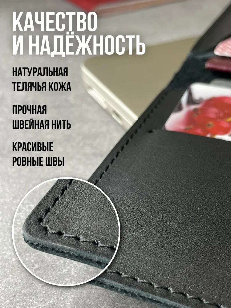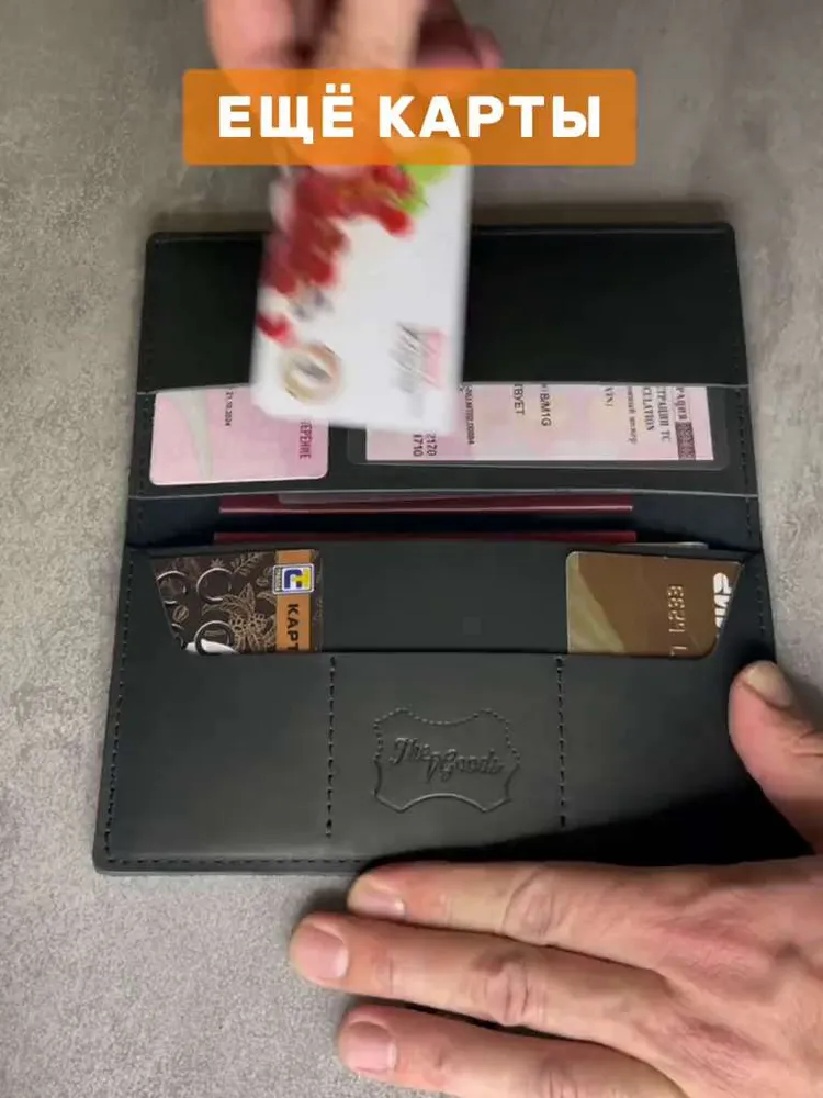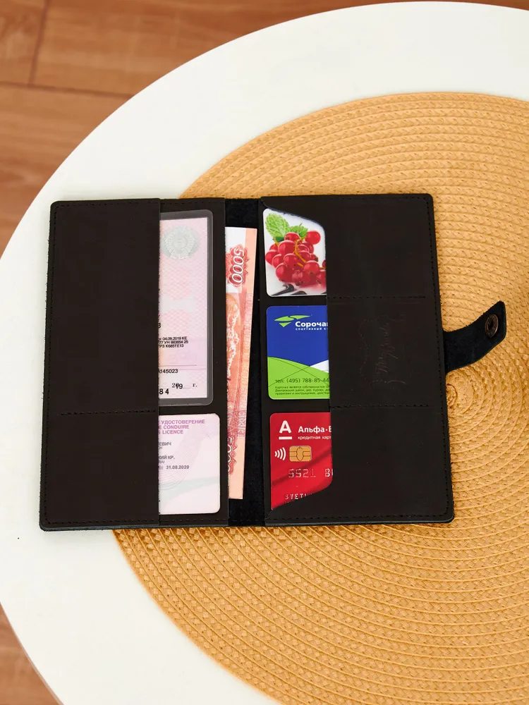 Портмоне из натуральной кожи Вы нашли то, что искали! Портмоне кожаное сделано из 100% натуральной телячьей кожи наивысшего качества, которую мы закупаем у проверенных российских поставщиков. Кожаное портмоне станет отличным подарком папе, брату, коллеге, маме, сестре или себе на день рождения, праздник или юбилей. Внимание к деталям При создании портмоне мы продумали каждую мелочь. Идеальные размеры кармашков для пластиковых карт, денег, паспорта, авто документов и других важных мелочей. Крепкие аккуратные швы. Надежная фурнитура застёжки-кнопки. Удобный размер портмоне: длина 19 см, ширина 10 см в сложенном состоянии, толщина 1 см. Отлично помещается в сумки, клатчи, внутренние карманы пиджака, куртки, пальто. Где бы вы ни находились: в путешествии, ресторане, машине, в гостинице или дома – всё самое важное всегда под рукой. Подарочная упаковка Каждое портмоне мы кладём в красивую белую подарочную коробочку. Презентабельный внешний вид – готовый подарок, который можно презентовать без дополнительной упаковки. Натуральная кожа KPC Crust Немного о коже, из которой мы делаем наши портмоне. Это 100% натуральная высококачественная кожа телёнка краст (Crust skin). Такую кожу ещё называют «живой», т.е. она не подвергалась никакой отделке, шлифовке и тиснению. Кожа сохраняет естественный и неповторимый рисунок на каждом изделии. Со временем становится только благороднее и приятнее. Уверены, что наше портмоне Вам понравится и будет радовать долгое время! Преимущества портмоне из кожи — Хранение всех документов в одном месте; — Оптимальный размер (19 на 10 см); — Удобная и надежная металлическая застежка-кнопка; — Стильный универсальный дизайн: прекрасный подарок как мужчине, так и женщине.; — Вместительность: 7 отделений внутри (3 кармашка для карт и визиток, 1 кармашек для водительского удостоверения, 1 кармашек для регистрационного удостоверения СТС, 2 вместительных отделения для денежных купюр, паспорта и даже телефона; — Высокое качество, долговечность, износостойкость: упругая, качественная натуральная кожа теленка проверенных российских производителей; — Приятное на ощупь портмоне: базовая вещь и атрибут для каждого джентльмена и дамы; — Красивая подарочная упаковка в комплекте (белая брендированная коробочка с крышкой).