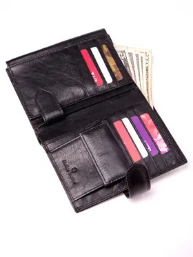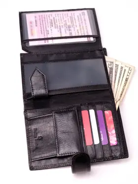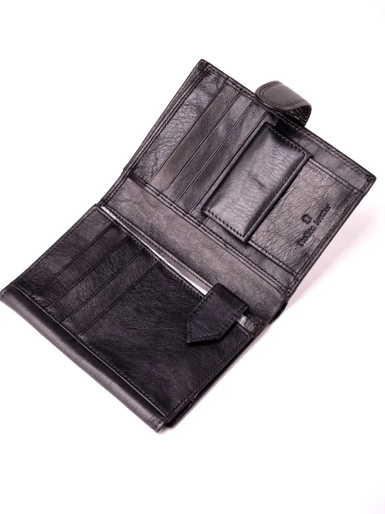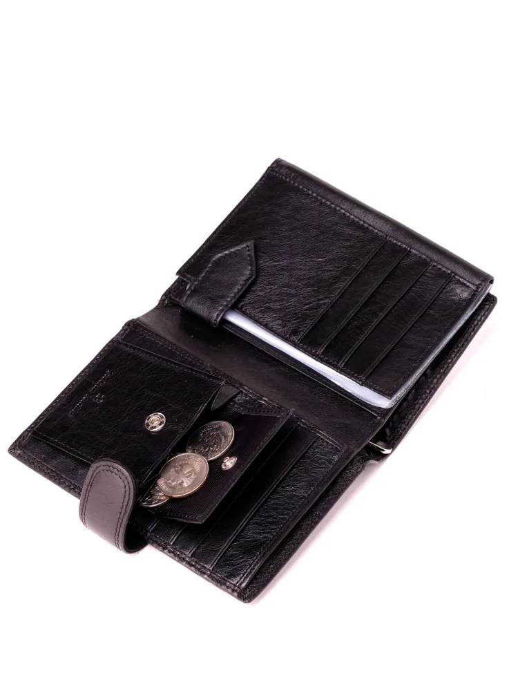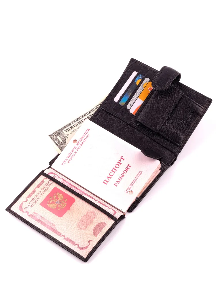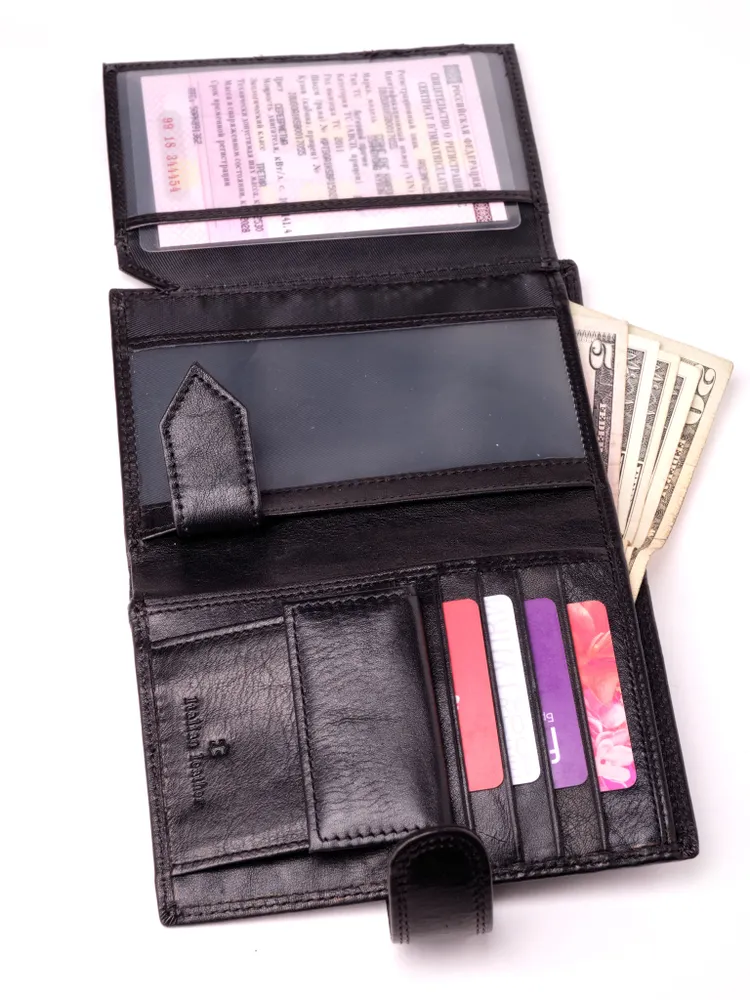 Удобное, стильное и многофункциональное портмоне-книжка из натуральной итальянской кожи подчеркнет статус любого мужчины! Закрывается хлястиком на кнопку. Внутри: 2 отделения для купюр (одно на молнии); 1 карман для мелочи на кнопке; 2 потайных кармашка; 2 отсека с прозрачными вставками для документов (фиксируются внутренним хлястиком на кнопке); пластиковый вкладыш для авто-документов (водительских прав, СТС, страховки и т. п.); 8 объёмных отделения для банковских карт. Поставляется в подарочной коробке. Мужское портмоне — идеальный аксессуар для успешного мужчины. Данная модель может похвастаться удобством, практичностью и функциональностью. Внутри можно хранить все, что нужно настоящему мужчине: деньги, авто-документы, банковские карты, визитки, документы и многое другое.