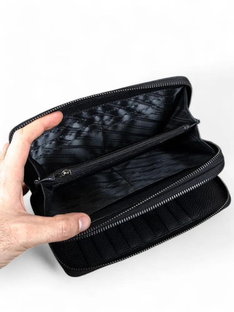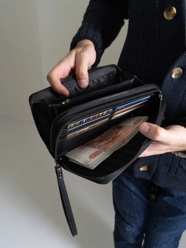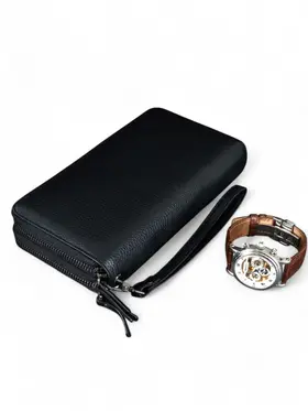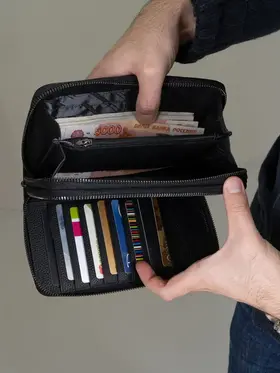 Портмоне мужское из натуральной кожи Этот мужской кошелек, выполненный из высококачественной натуральной кожи, станет неотъемлемой частью вашего образа, сочетая элегантность, функциональность и прочность. Натуральная кожа обладает уникальной текстурой, которая со временем только улучшается, приобретая характерный патину, что делает каждый кошелек уникальным. Он оснащен несколькими просторными отделениями для карт, банкнот и монет, что позволяет удобно организовать пространство и всегда иметь под рукой все необходимое. Компактные размеры и продуманный дизайн обеспечивают комфорт при использовании, а классический внешний вид делает кошелек подходящим как для повседневной носки, так и для деловых встреч. Этот аксессуар не только подчеркнет ваш стиль, но и прослужит долго, сохраняя свою презентабельность даже при активном использовании. Мужской кошелек из натуральной кожи — это отличный выбор для тех, кто ценит качество, долговечность и изысканный дизайн.