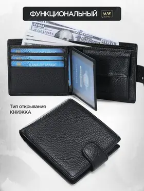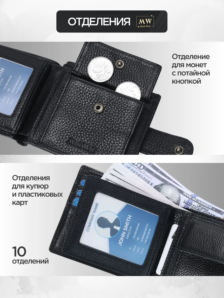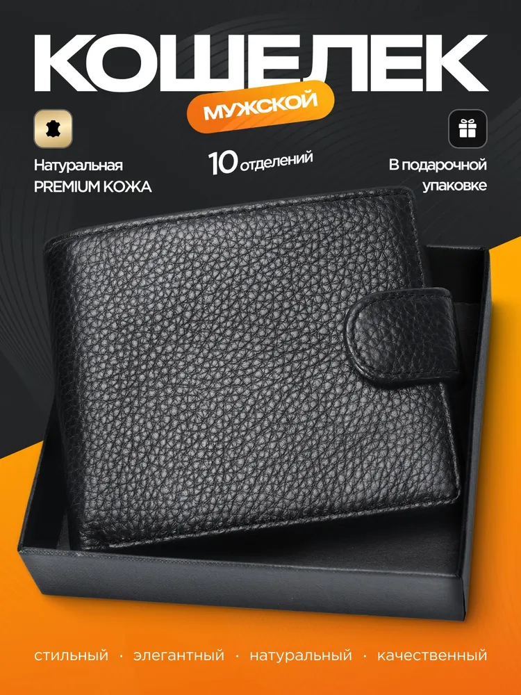 Представляем вашему вниманию стильный и компактный мужской кошелек, идеально подходящий для современных мужчин. Этот качественный бумажник выполнен из натуральной кожи, обладающей приятной текстурой и элегантным внешним видом. Солидный дизайн кошелька придаст уверенности в любых ситуациях, будь то деловая встреча или повседневная жизнь. Модель отличается продуманной конструкцией, включающей 10 отделений для удобного размещения пластиковых карт, кредиток, визиток и водительского удостоверения, есть отдел для монет. Темно-черный цвет придает этому портмоне универсальность, а качественная обработка швов гарантирует долговечность изделия даже при активном использовании. Кроме того, данный аксессуар поставляется в подарочной упаковке, что делает его отличным презентом для близкого человека на любое торжество. Эта модель портмоне не только функциональна, но и стильно смотрится в руках любого мужчины. Если вы ищете подарок для любимого человека или хотите побаловать себя, этот кошелек станет идеальным выбором.