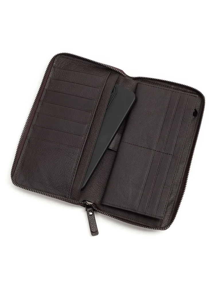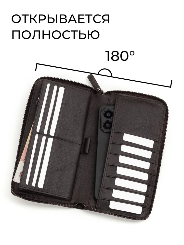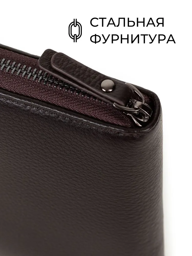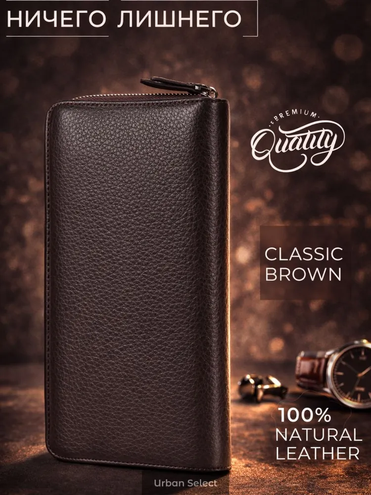 Незаменимый мужской аксессуар. В коллекции магазина Urban Select появилась новая модель — мужское портмоне из натуральной кожи, которое воплощает собой сочетание элегантности и функциональности. Этот премиум-аксессуар создан для тех, кто ценит безупречное качество и стремится подчеркнуть свой утонченный вкус в каждой детали. Высокое качество материалов Портмоне выполнено из высококачественной натуральной кожи, что гарантирует долговечность и устойчивость к износу. Стиль и элегантность вашего образа. Универсальный аксессуар для современных мужчин, которые ценят надежность и практичность. Это часть вашего образа, который подчеркнет вашу элегантность. Благородный цвет Благородный темный оттенок коричневого цвета делает портмоне универсальным, гармонично дополняя как деловой, так и повседневный образ. 100% удобство и функциональность Продуманная конструкция портмоне обеспечивает максимальную функциональность. Внутреннее пространство организовано таким образом, чтобы вы могли удобно разместить все необходимые предметы: отделения для купюр, карманы для кредитных карт, секция для монет на молнии. В кошелек поместятся документы, деньги и даже мобильный телефон. Это позволяет держать все важные вещи под рукой, не перегружая карманы одежды. Особое внимание уделено деталям: аккуратные швы, надежные застежки и фурнитура премиум-класса свидетельствуют о высоком уровне исполнения. Шикарный подарок Мужское портмоне из натуральной кожи также может служить отличным подарком для тех, кто ценит стильные и практичные аксессуары. Этот клатч станет неотъемлемой частью образа современного мужчины, подчеркивая его статус и внимание к деталям. Уникальный дизайн Дизайн портмоне ориентирован на потребности деловых людей, которые привыкли к высокому уровню комфорта и надежности. Внутренние отделения позволяют быстро и легко находить нужные вещи, а компактные размеры делают портмоне удобным для ношения в руках или в кармане пиджака. На внешней стороне клатча отсутствуют дополнительные элементы — ручка или петля на запястье — что делает образ лаконичным и минималистичным. Статусный аксессуар Этот кошелек станет вашим надежным спутником в любой ситуации, будь то деловая встреча, вечерний выход или повседневные дела. Он создан для тех, кто стремится к совершенству во всем и не готов идти на компромиссы, когда речь идет о качестве и стиле. Приобретая мужское портмоне из натуральной кожи, вы делаете выбор в пользу элегантности и практичности. Этот аксессуар станет не только функциональным элементом вашего гардероба, но и символом вашего безупречного вкуса и статуса.