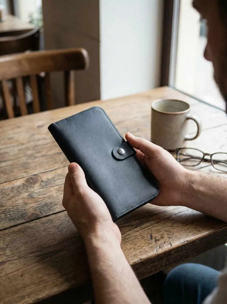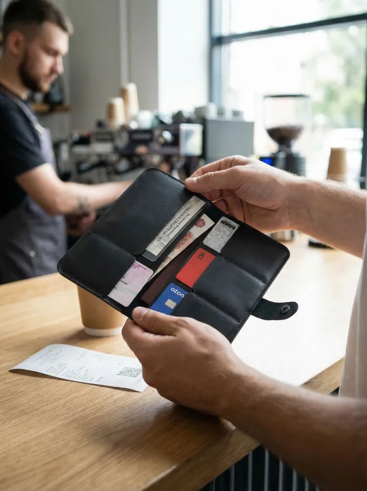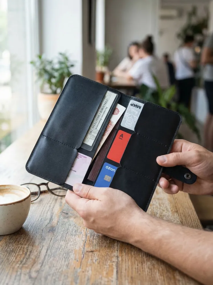 Настоящее искусство рождается в руках мастера Наши портмоне — это результат ручной работы и внимания к деталям. Мы используем только натуральную кожу премиального качества и проверенные временем техники пошива. Элегантный минимализм. Натуральная кожа с благородной текстурой и аккуратная строчка делают портмоне стильным аксессуаром для каждого дня. Внутри всё продумано до мелочей: отделения для карт, купюр и документов. Практичность и надёжность в каждой детали. Компактное и удобное портмоне идеально ложится в руку, легко помещается в карман и при этом сохраняет функциональность.