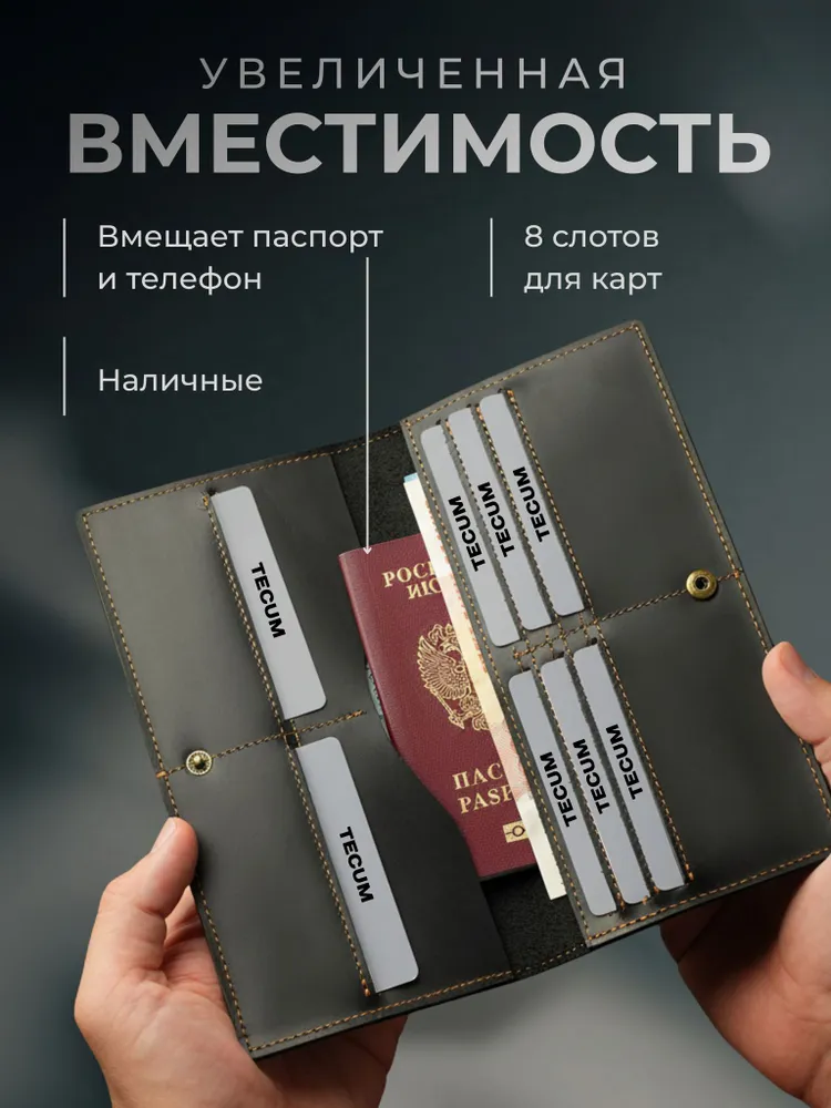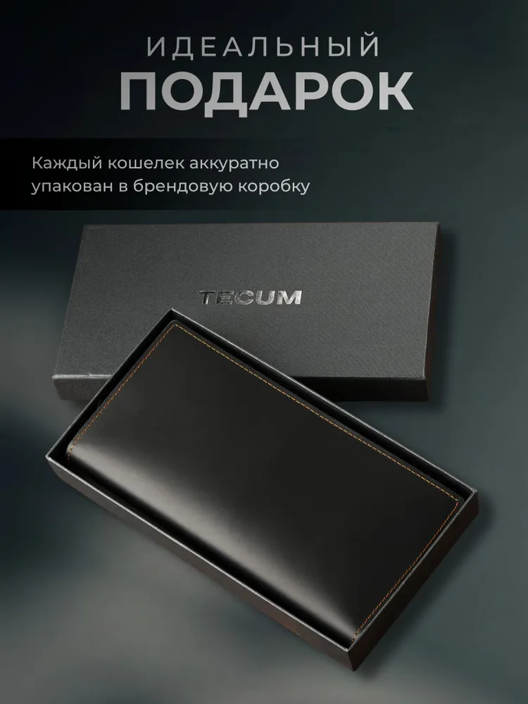 Незаменимый мужской аксессуар. - Натуральная кожа crazy horse - Удобный и функциональный - Премиальное качество Узнайте больше в описании ↓ Стильное портмоне лонгер из натуральной кожи. Полезный мужской аксессуар для всех, кто хочет держать важные мелочи, карты и вещи всегда под рукой. Выполненный из восхитительной натуральной кожи дубления crazy horse, которую приятно держать в руках. Она красиво стареет и приобретает патину с легким глянцем, благодаря тугоплавким воскам. Ультратонкий и компактный. При своей высокой функциональности, кошелек занимает весьма мало в сумке, портфеле или рюкзаке. Прочный и надежный. Материал кошелька надежный, износостойкий, не поддается стиранию и механическим повреждениям. Если вам не нравятся потертости и царапины - протрите аккуратно чистой тканью, можно смазать с небольшим количеством растительного масла и кожа вернется к первоначальному состоянию Вместительный и надежный. Несмотря на компактный размер, в бумажнике 10 отделений для прав, карт, купюр, документов! Качественная прошивка позволит прослужить кошельку долгое время. Аристократический стиль в ваших руках. Красивая расцветка в глубоком коричневом цвете понравятся каждому любителю оригинальных аксессуаров. Такая кожа отличается особенной текстурой и цветовым переливанием в сочетании с мягкостью. Приятна на ощупь, обладает высокой прочностью и со временем при использовании создастся эффект антикварности. Идеальный мужской презент! Вы можете использовать кошелек как повседневно, так и в качестве презента! Красивая и плотная подарочная коробка, в которой вы смело можете дарить кошелек дорогим, важным и близким вашим людям. Добро пожаловать в наш магазин бренда TECUM! Пользуйтесь с удовольствием нашими изделиями! Кликайте на фото, заходите к нам на страничку и выбирайте подходящие для вас или ваших близких аксессуары нашего магазина под ваш стиль жизни. Спасибо за выбор нашего магазина. Ваш бренд TECUM!