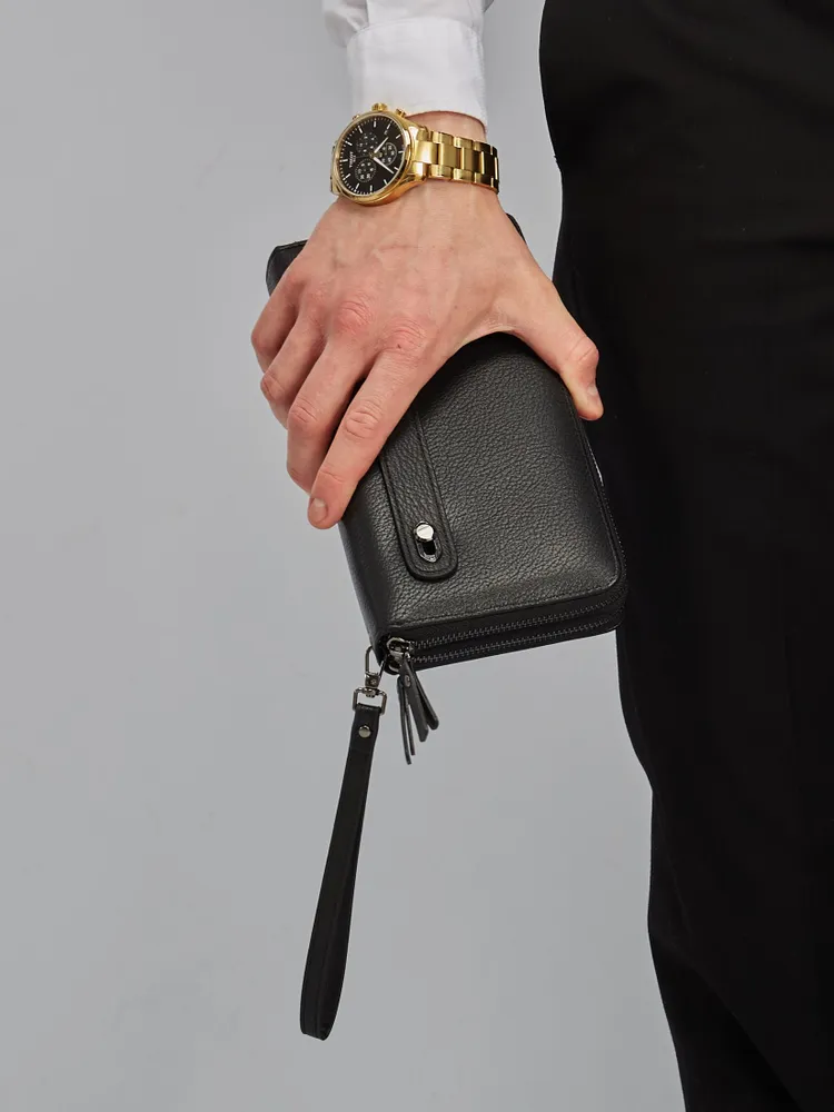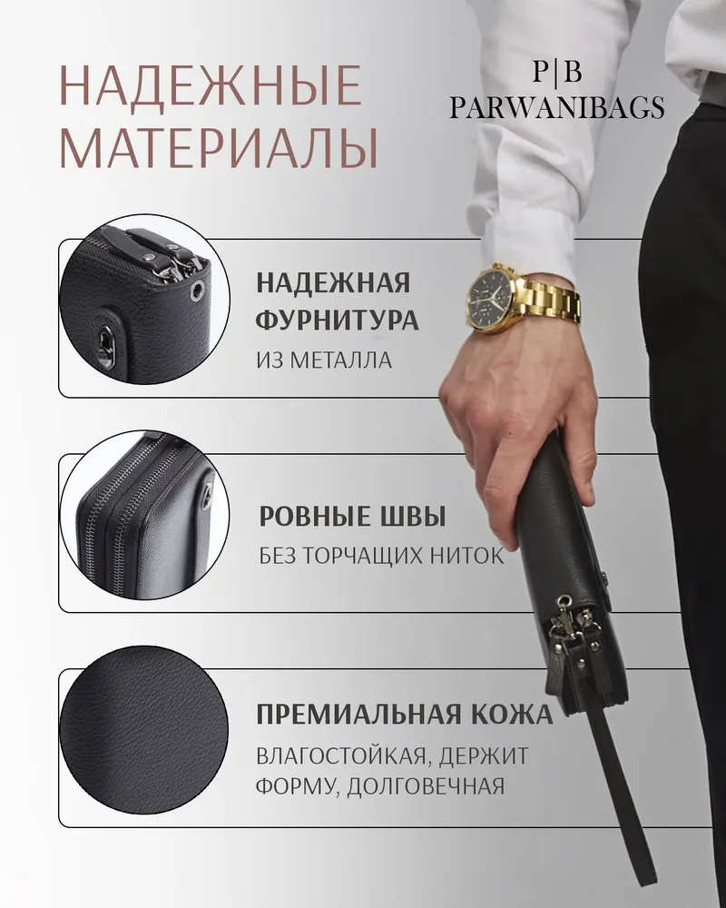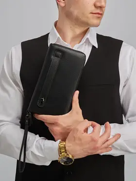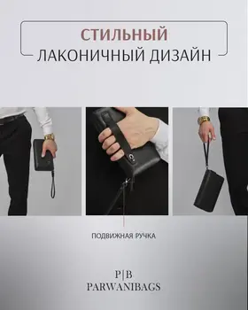 Портмоне мужское из натуральной кожи - премиум аксессуар для тех, кто предпочитает качественные и практичные вещи. Портмоне мужское для документов - стильный и необходимый предмет для мужчин. В него вы можете положить: деньги (купюры) и монеты, карты, телефон, паспорт, военный билет и автодокументы. Аксессуар удобен в использовании и имеет съемный ремешок и подвижную ручку. Портмоне мужское из кожи имеет практичный и презентабельный вид. Он будет уместно смотреться как с классическим костюмом, придавая особую элегантность, так и с повседневной одеждой. Кошелек мужской для денег не будет выглядеть как большой лопатник. Портмоне станет мини помощником для мальчика, подростка и мужчины. Бумажник помещается в сумку и удобен в школу, офис, или на прогулку. Универсальный и вместительный черный картохолдер - это отличный подарок который не будет лежать, а будет приносить воспоминая о вас. Внушительные габариты портмане позволяют хранить в нем вкладыш для автодукоментов, паспорта, удостоверения, снилс и страхового полиса. экокожа практичный и презентабельный материал.