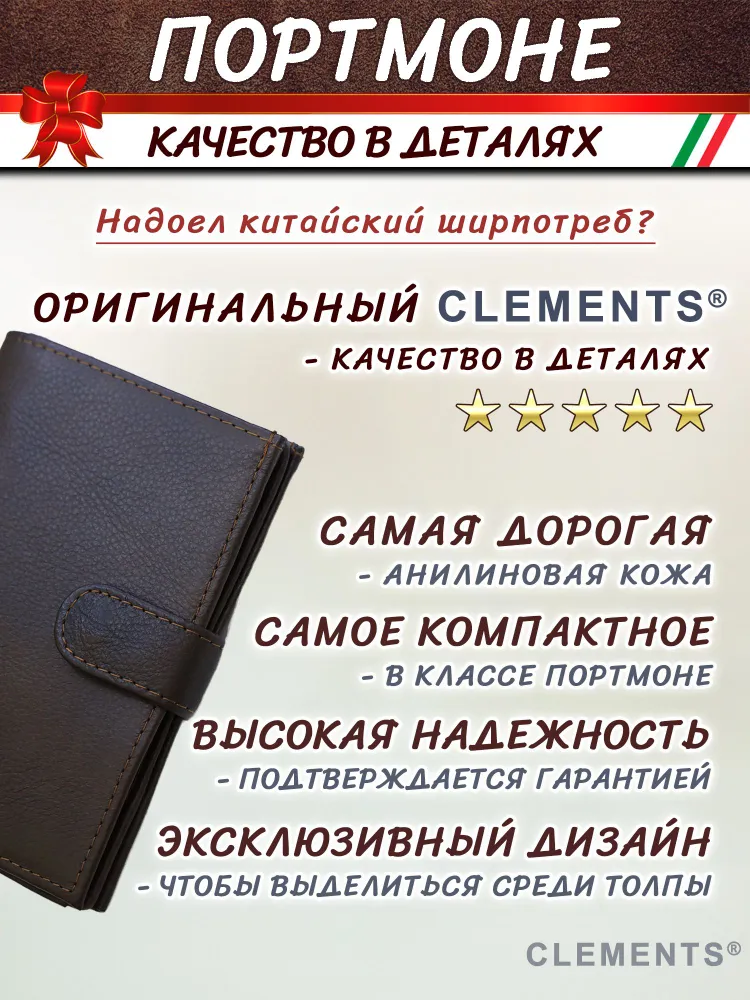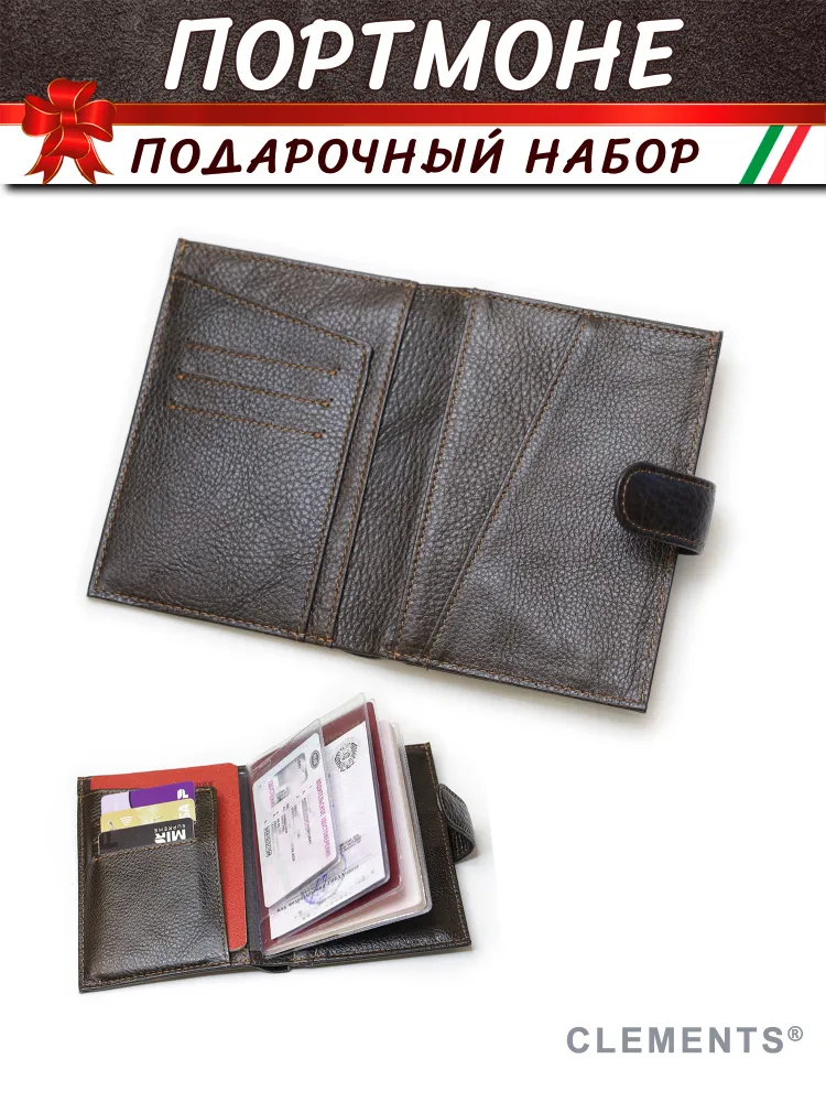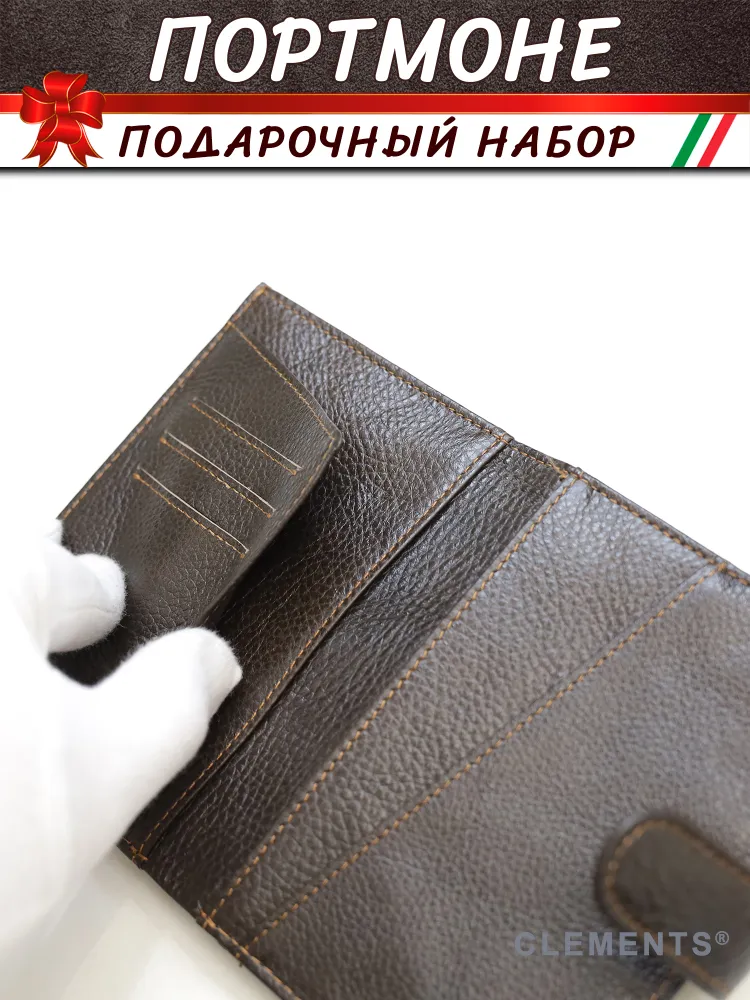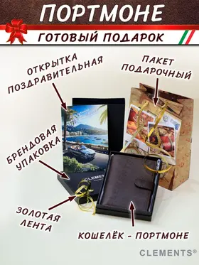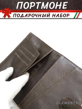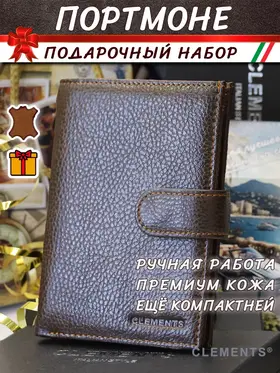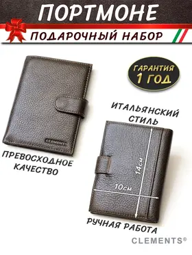 Очень качественный подарочный набор для мужчин - Кошелек мужской из натуральной кожи премиум или портмоне мужское кожаное под брендом Clements это модный аксессуар безупречного качества в Итальянском стиле из раздела Кошельки и кредитницы. Наш коричневый бумажник кожаный очень функциональный, он имеет 14 отделений: 3 кармана для карт и визиток, удобный отсек для паспорта и документница для прав водительских, СТС, СНИЛС, ПТС, страховки и прочих документов, а также одно большое вместительное отделение под деньги для купюр. Есть несколько потайных карманов. Компания Clements делает упор прежде всего на качество и удобство своих изделий. Вы будете очень довольны, если купите наши аксессуары, у которых просто нет аналогов в России. Думаете, что подарить мужчине? Наш премиальный бумажник мужской - это идеальный подарок мужу и брату, папе и дедушке, презент коллеге и боссу, а также другу. Наш кошелек обязательно понравится любимому парню. Данное портмоне ручной работы настолько компактное, что его можно использовать, как маленький кошелёк. Это будет лучшая покупка на др и не только на день рождения или 23 февраля, но и на Новый год 2025, День святого Валентина, на день водителя или 9 мая, 14 февраля и даже годовщину. Портмоне имеет большой съемный прозрачный вкладыш для автодокументов водителя и паспорта. Его часто берут друзьям на подарок. И хотя наш брендовый wallet - кошелек ручной работы самый тонкий (всего 1,5 см), в нем есть небольшая визитница - картхолдер, чтобы носить банковские карточки. В набор входит сам кошелёк кожаный коричневый мягкий в красивой упаковке без рисунка с принтом Clements Italian Style (Итальянский стиль) и всё, чтобы этот аксессуар красиво преподнести. На данный бумажник мы предоставляем гарантию 1 год. Способы ее получения прописаны в гарантийном талоне. Успейте купить идеальный подарок себе или парню на любой праздник.