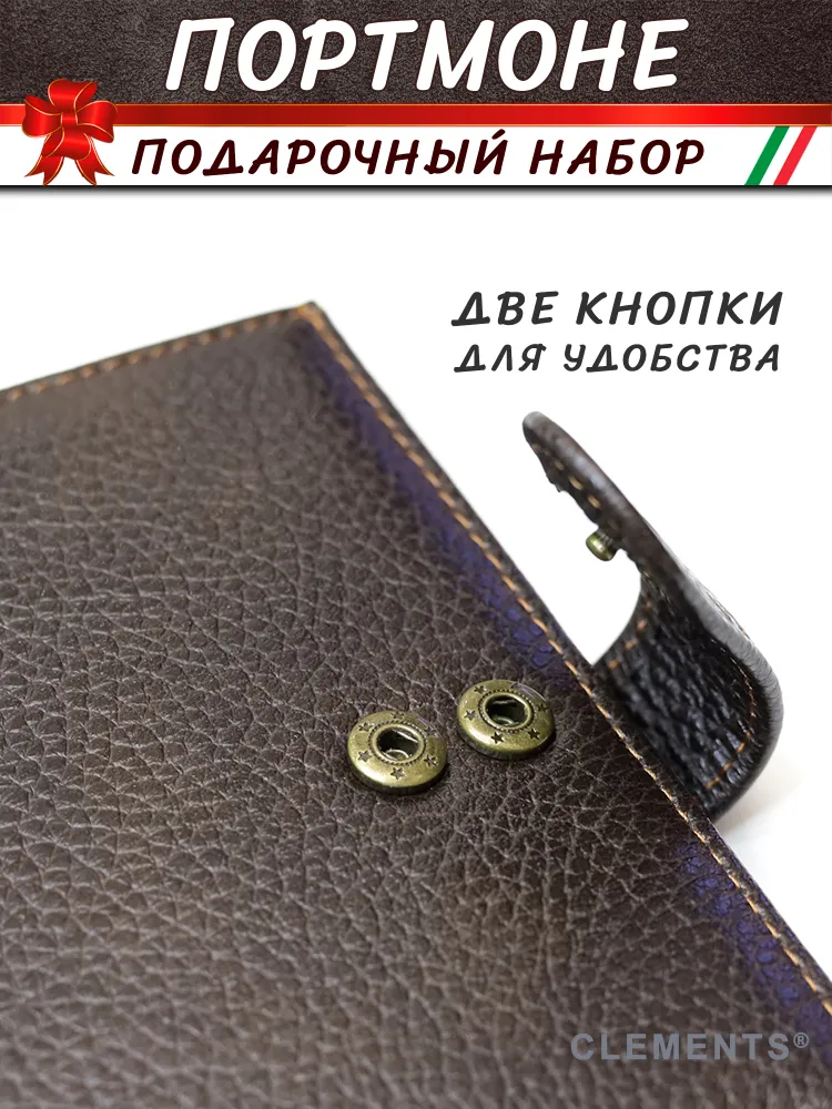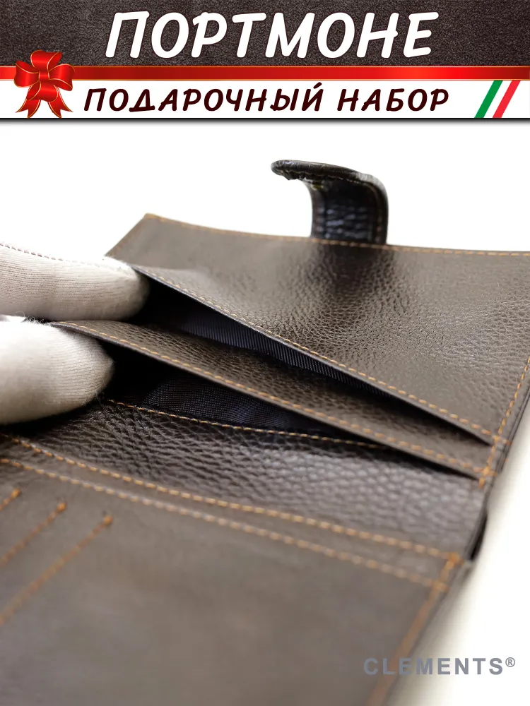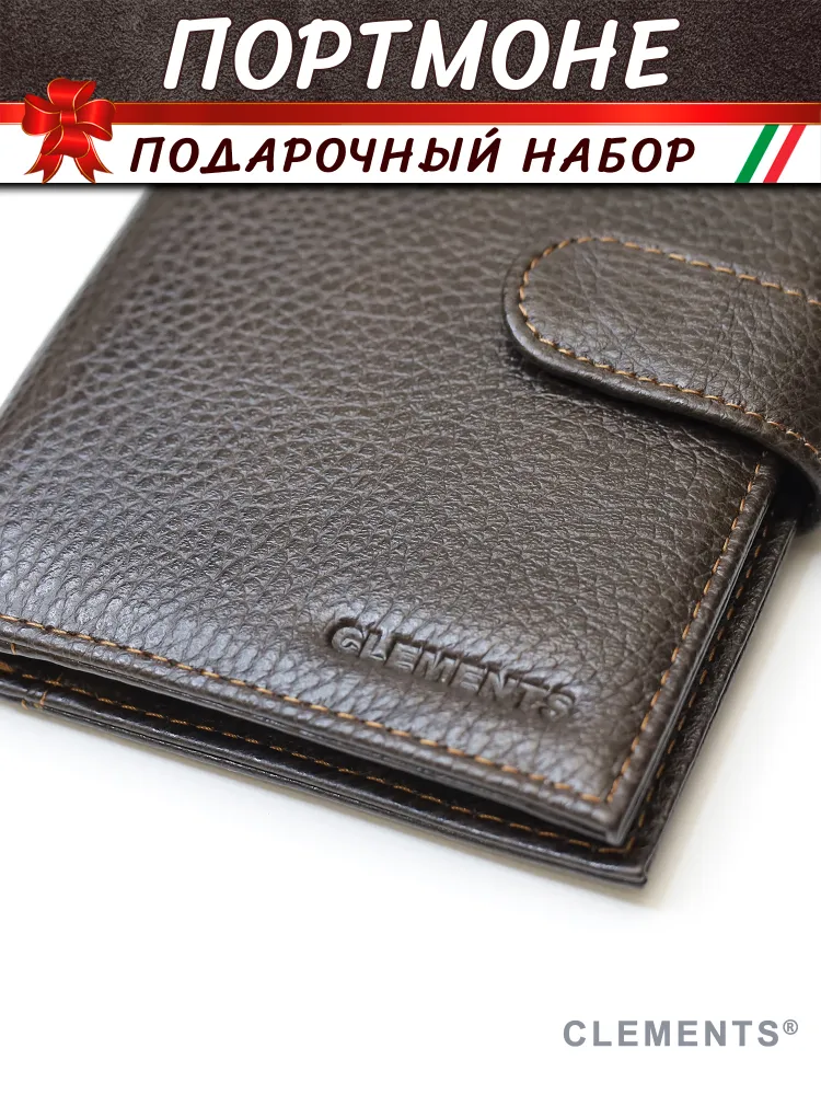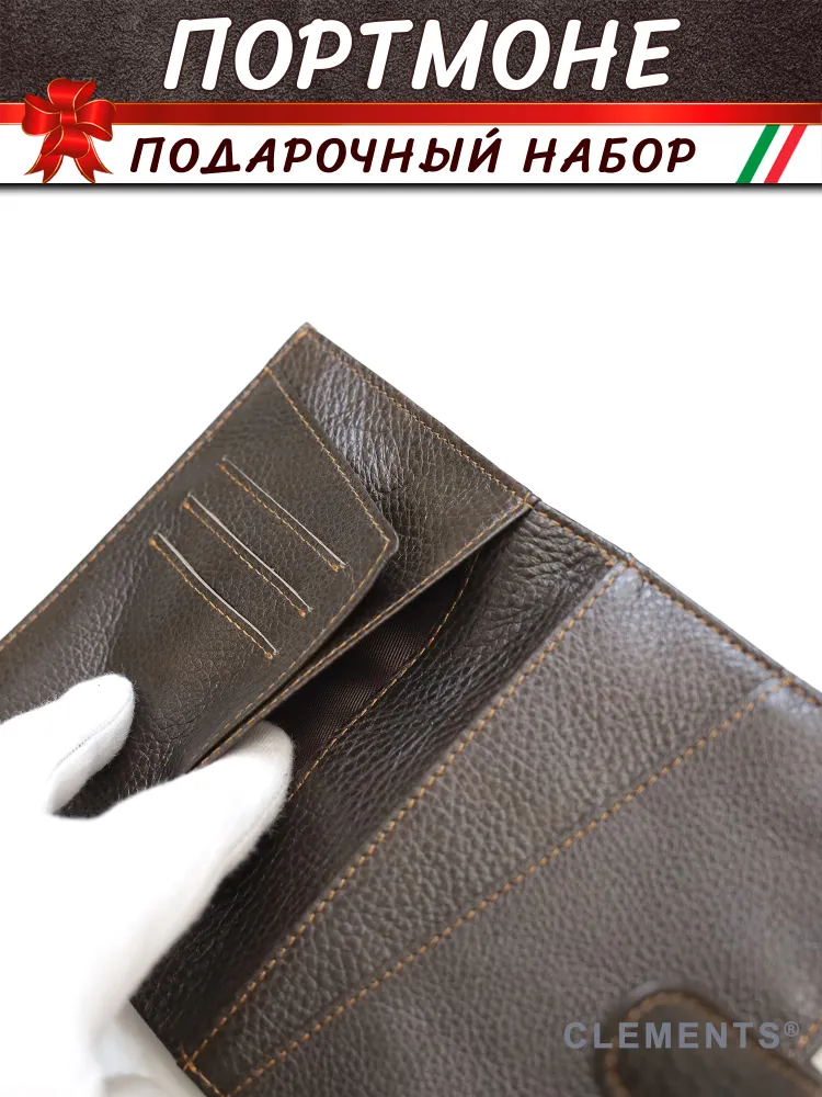 Портмоне мужское кожаное + подарочный набор, (Коричневое) - Clements