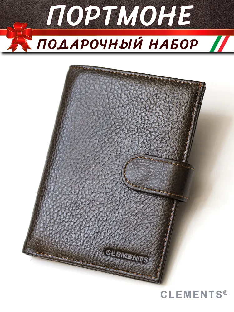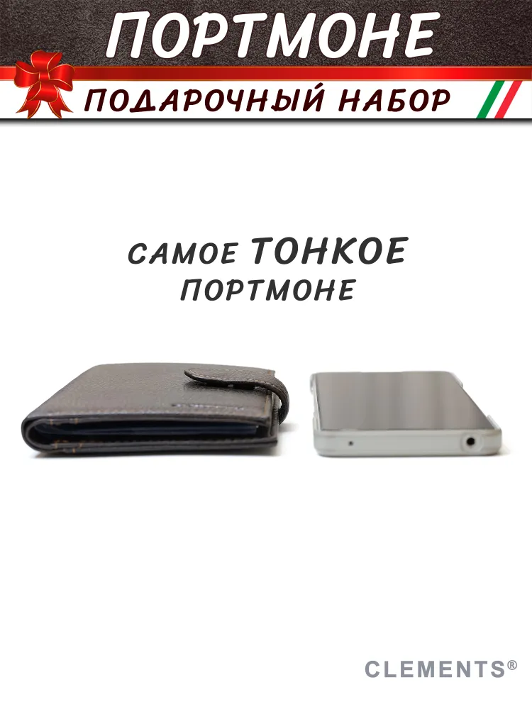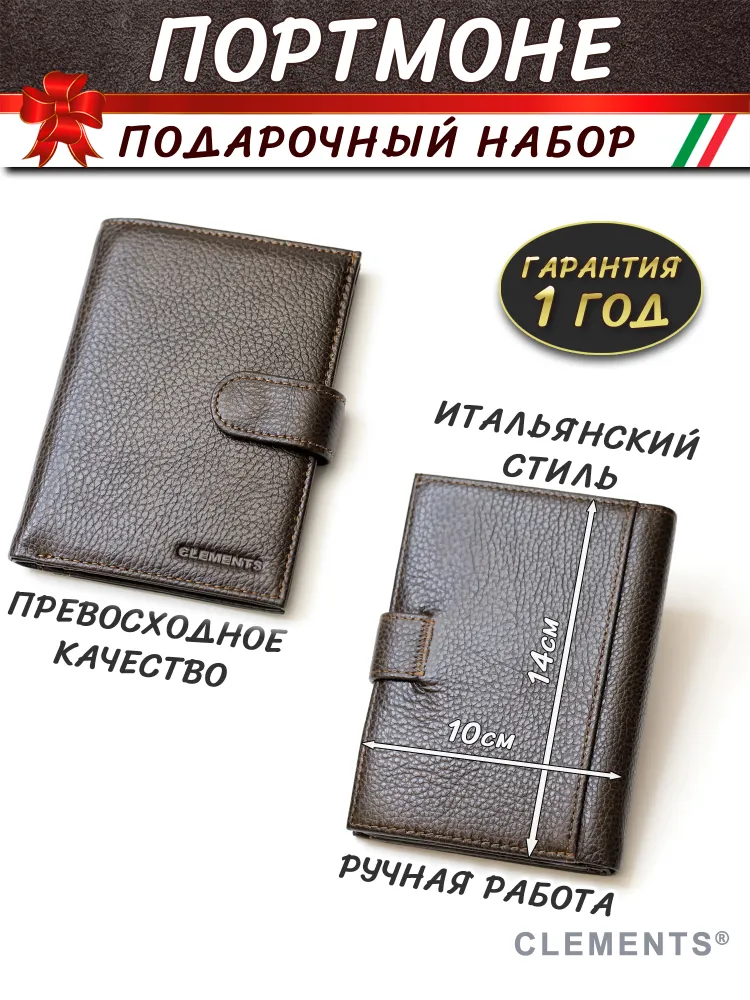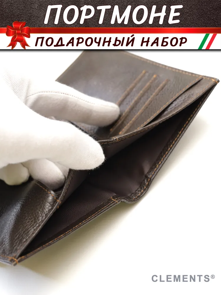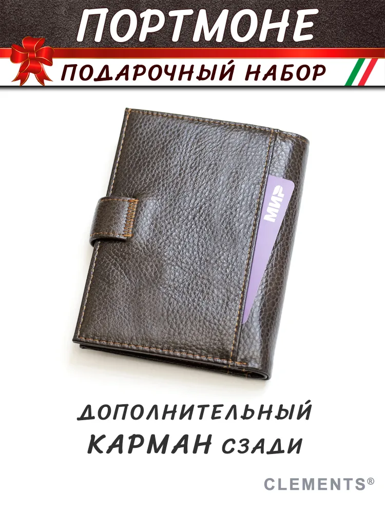 Портмоне мужское кожаное + подарочный набор, (Коричневое) - Clements