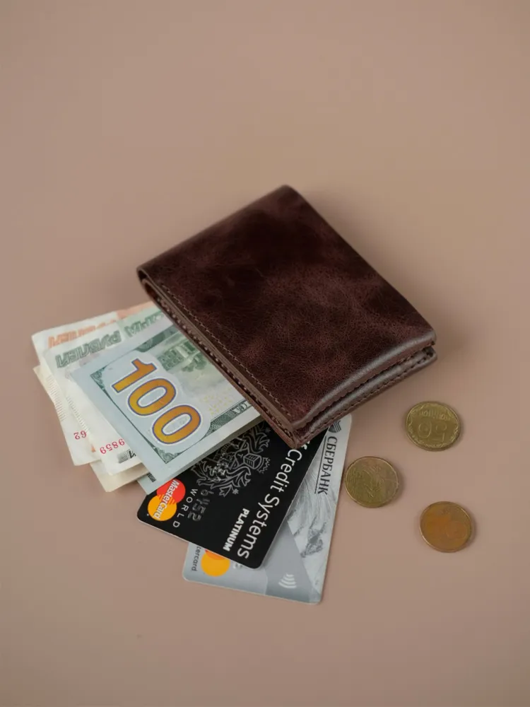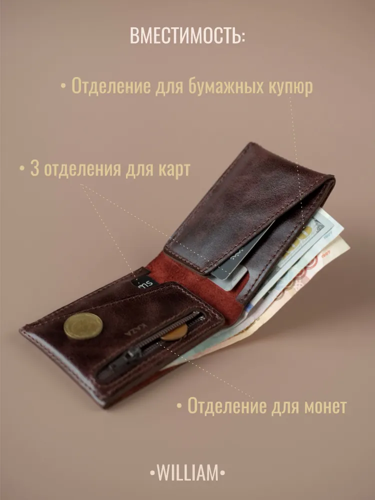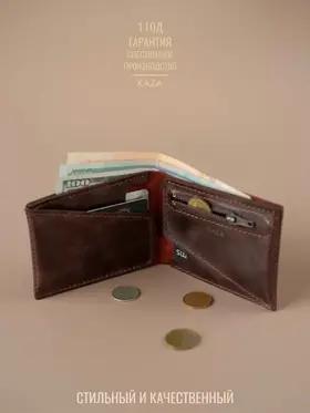 Маленький кошелек из натуральной кожи • Внешние размеры 10,5см Х 8см (+/-3мм). • Вмещает в себя: бумажные купюры, банковские или дисконтные карточки, монеты. • Имеет 1 отделение для бумажных денег; 3 отделения для пластиковых карт; 1 отделение для мелочи на молнии. • Изображение выжжено (не стирается и не трескается со временем). • Мы используем качественную плотную, но при этом мягкую кожу толщиной 1.2-1.4 мм. • Гладкая кожа достаточно устойчива к загрязнениям, легко протереть влажной тканью. • Кошельки нашего бренда качественные и созданы для повседневного пользования взрослых и молодых мужчин. • Портмоне – это роскошный подарок мужчине и идеальный подарочный вариант коллеге на день рождения (др). Стильные аксессуары брату или другу на 23 февраля (С Днём Защитника Отечества). Папе от дочки на Новый год (нг). Нужный подарок мужу на годовщину свадьбы или любимому парню ко Дню Святого Валентина (14 февраля). Мужской кожаный бумажник (картхолдер) удобно хранить в кармане или бардачке авто. Компактный формат подойдет подростку. • Универсальные, классические, красивые аксессуары от кожевенной мастерской KAZA на праздники. Корпоративные подарки клиентам или коллегам. Презент российского производства начальнику или директору. • Ручная работа. • Производим с 2009 года.