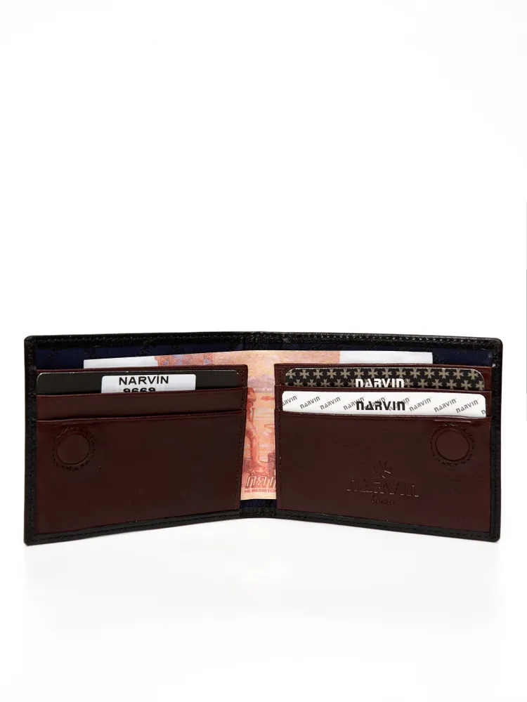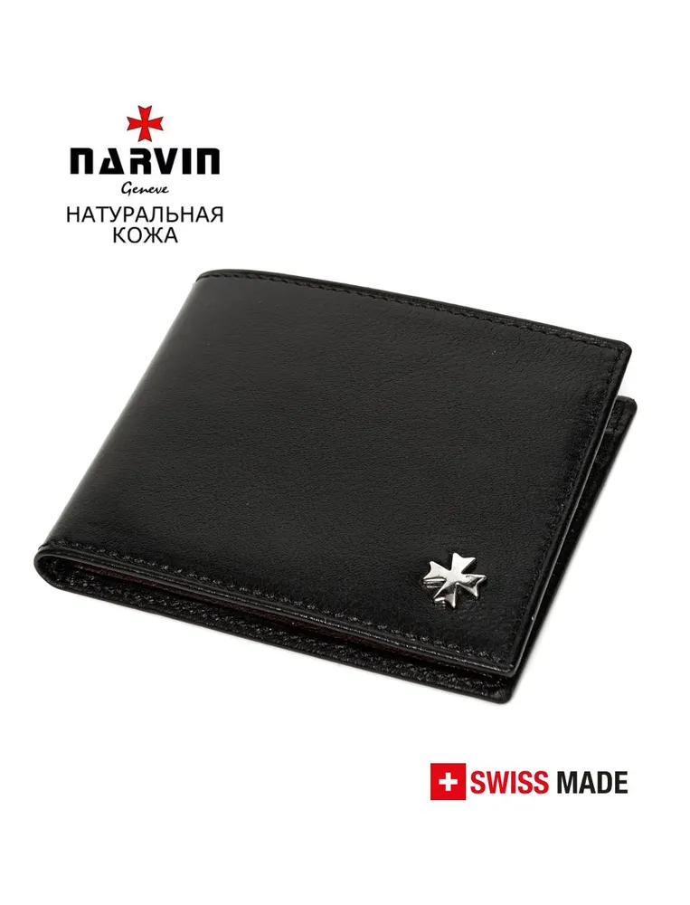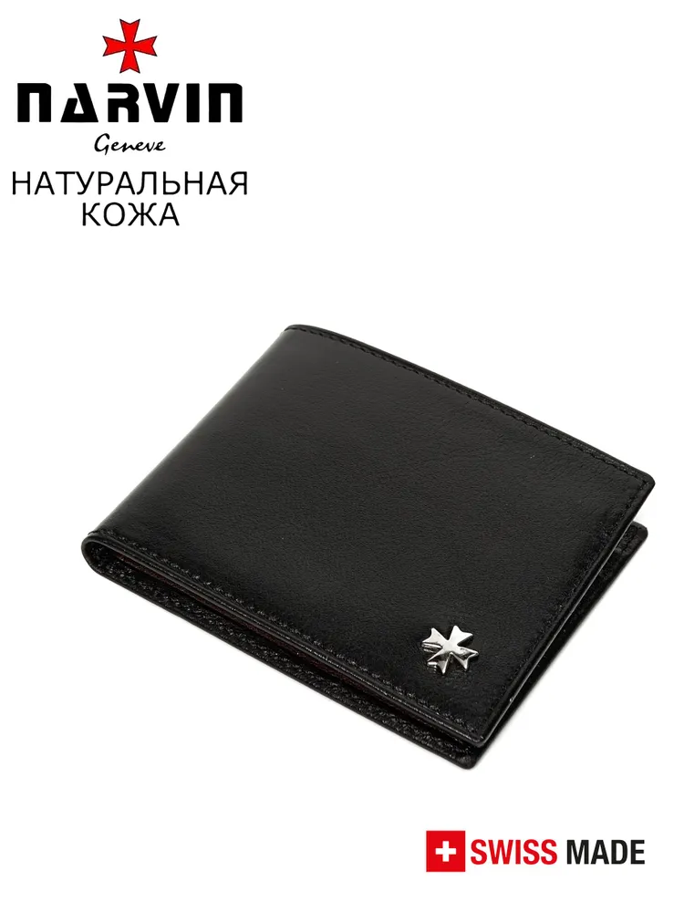 NARVIN (Швейцария) натуральная кожа, мальтийский крест Портмоне на магните из натуральной кожи от швейцарского бренда NARVIN. Внутри портмоне 4 отделения для кредитных карт. Также портмоне имеет секретные кармашки, которые помогут сохранить конфиденциальность личных данных. Кошелек NARVIN идеально подходит для мужчин и женщин, которые ценят комфорт и удобство в повседневной жизни. Гладкая фактура кожи придает изделию элегантный и благородный вид. Портмоне из натуральной кожи станет отличным подарком в день рождение, 8 марта, Новый год, 23 февраля, день влюбленных для тех, который ценит качество и стиль. Упаковано в фирменную подарочную коробку.