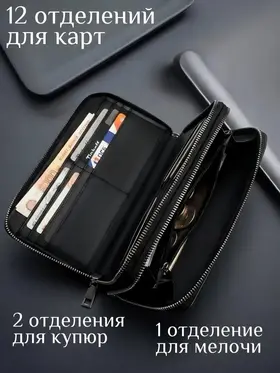 ✅ Функциональный кошелек, 12 кармашков для пластиковых и визитных карт. ✅ Имеет 2 больших отдела для купюр, 1 отдел для мелочи. Удобный размер ✅ Качественная фурнитура ✅ Стильный дизайн ✅ Удобная ручка