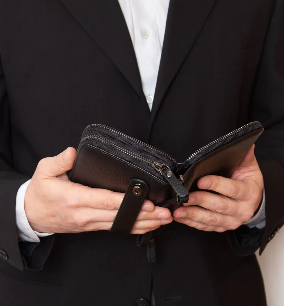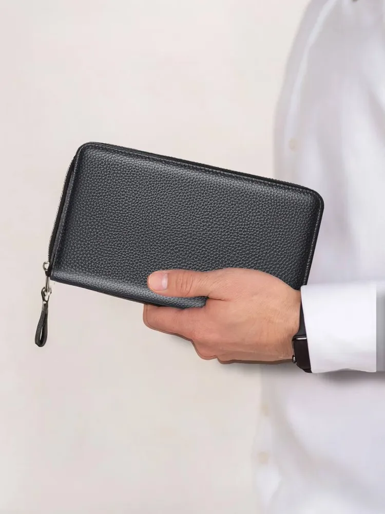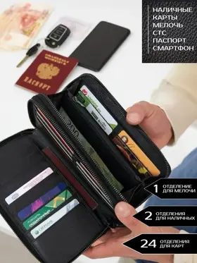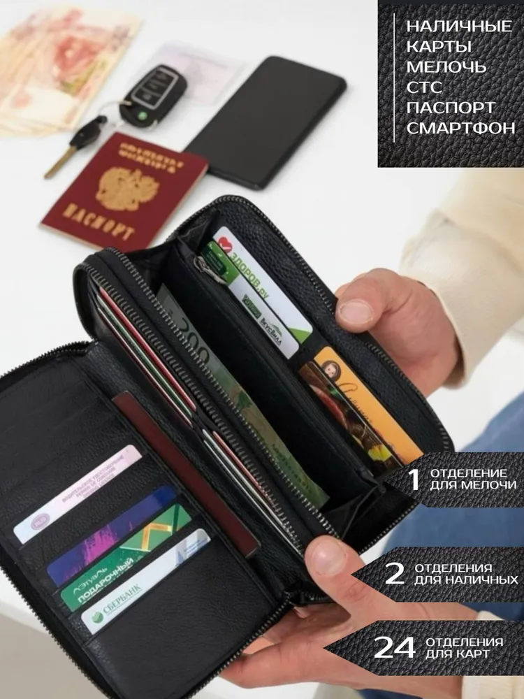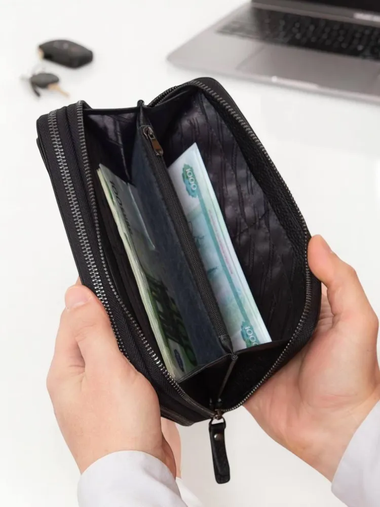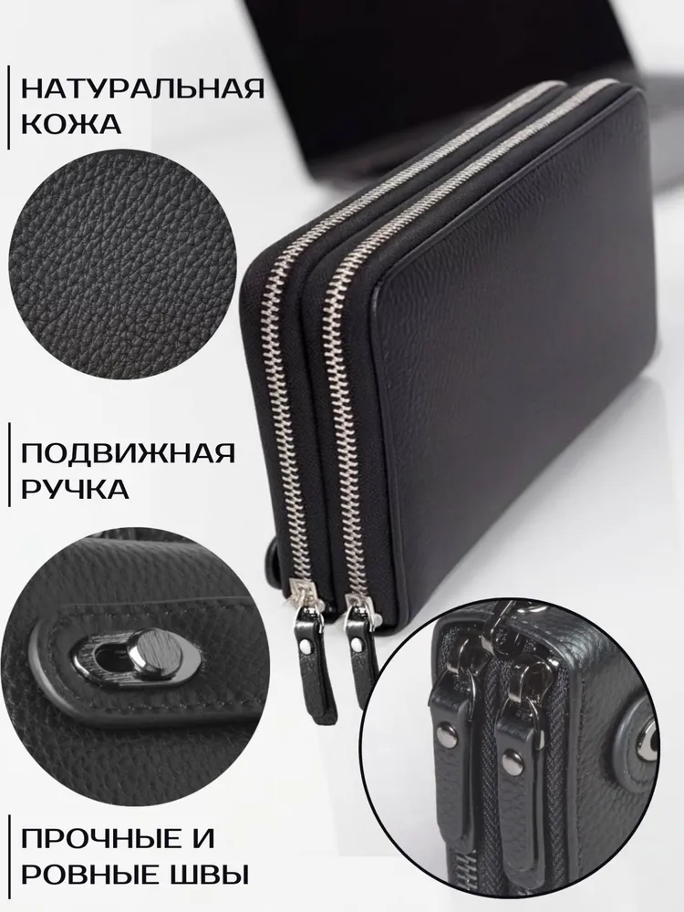 Кошелек мужской кожаный для современных мужчин, ценящих практичность и элегантность. Наше портмоне мужское сочетает в себе функциональность и изысканный дизайн. Это универсальное портмоне для документов и портмоне для денег, которое станет идеальным решением как для повседневного использования, так и для деловых встреч. Внутри предусмотрены отделения для карт, купюр и мелочи, а также удобные потайные карманы – идеальное портмоне с потайными карманами. Любителям минимализма понравится наш кожаный клатч – компактный и вместительный одновременно. Такой клатч мужской и клатч для мужчин позволит хранить телефон, паспорт и важные документы в одном месте. Благодаря надежной металлической молнии вы получаете долговечный и практичный портмоне на молнии. Мы предлагаем аксессуар premium класса – это изысканное портмоне в черном классическом стиле, выполненное из натуральной кожи. Наши кожаные кошельки портмоне отличаются высоким качеством и продуманной эргономикой. Если вы ищете надежное и стильное решение, обратите внимание на мужской портмоне из натуральной кожи . Такое портмоне станет прекрасным подарком для мужчины любого возраста или достойным приобретением для себя.