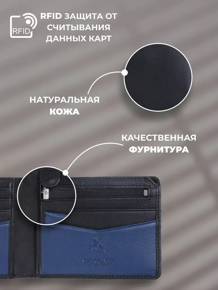 Портмоне Visconti Real Leather VSL20 Бумажник из натуральной кожи Visconti Real Leather VSL20 имеет 6 отделений для пластиковых карт, отделение для монет и купюр. Защита RFID обеспечивает безопасность данных банковских карт и документов. Поставляется в фирменной коробке. Натуральная кожа 100% Для производства используется специально отобранная кожа, изготовленная по традиционным технологиям, что придаёт изделиям уникальный, неповторимый характер и внешний вид. Сделано вручную Все изделия изготавливаются вручную, что обеспечивает непревзойдённое качество и придаёт дополнительную уникальность каждому изделию. Гарантия 3 месяца Мы официальный представитель Visconti Real Leather в России и уверены в качестве изделий под этой маркой. Именно поэтому мы даем гарантию 3 месяца на весь ассортимент моделей. Более 20 лет на рынке Английская компания Visconti Leather занимается производством аксессуаров из натуральной кожи уже более 20 лет. За это время компания зарекомендовала себя как производитель качественной кожгалантереи.