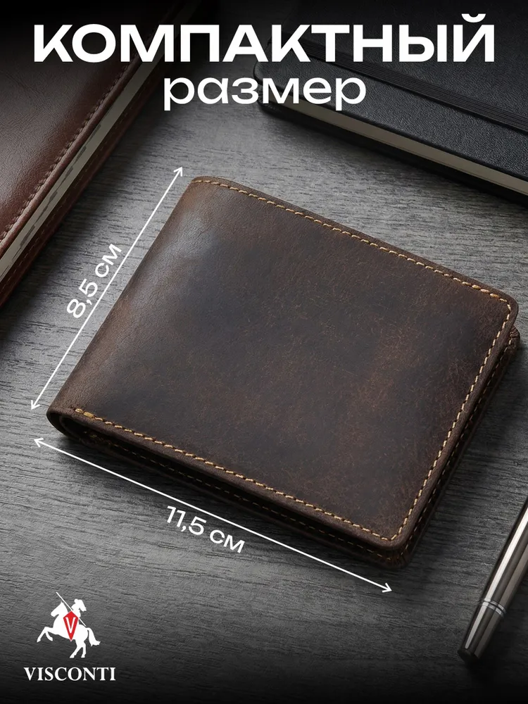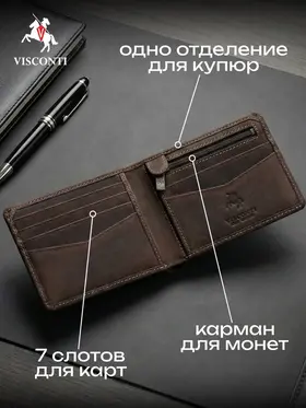 Портмоне Visconti Real Leather VSL20 Бумажник из натуральной кожи Visconti Real Leather VSL20 имеет 6 отделений для пластиковых карт, отделение для монет и купюр. Защита RFID обеспечивает безопасность данных банковских карт и документов. Поставляется в фирменной коробке. Натуральная кожа 100% Для производства используется специально отобранная кожа, изготовленная по традиционным технологиям, что придаёт изделиям уникальный, неповторимый характер и внешний вид. Сделано вручную Все изделия изготавливаются вручную, что обеспечивает непревзойдённое качество и придаёт дополнительную уникальность каждому изделию. Гарантия 3 месяца Мы официальный представитель Visconti Real Leather в России и уверены в качестве изделий под этой маркой. Именно поэтому мы даем гарантию 3 месяца на весь ассортимент моделей. Более 20 лет на рынке Английская компания Visconti Leather занимается производством аксессуаров из натуральной кожи уже более 20 лет. За это время компания зарекомендовала себя как производитель качественной кожгалантереи.