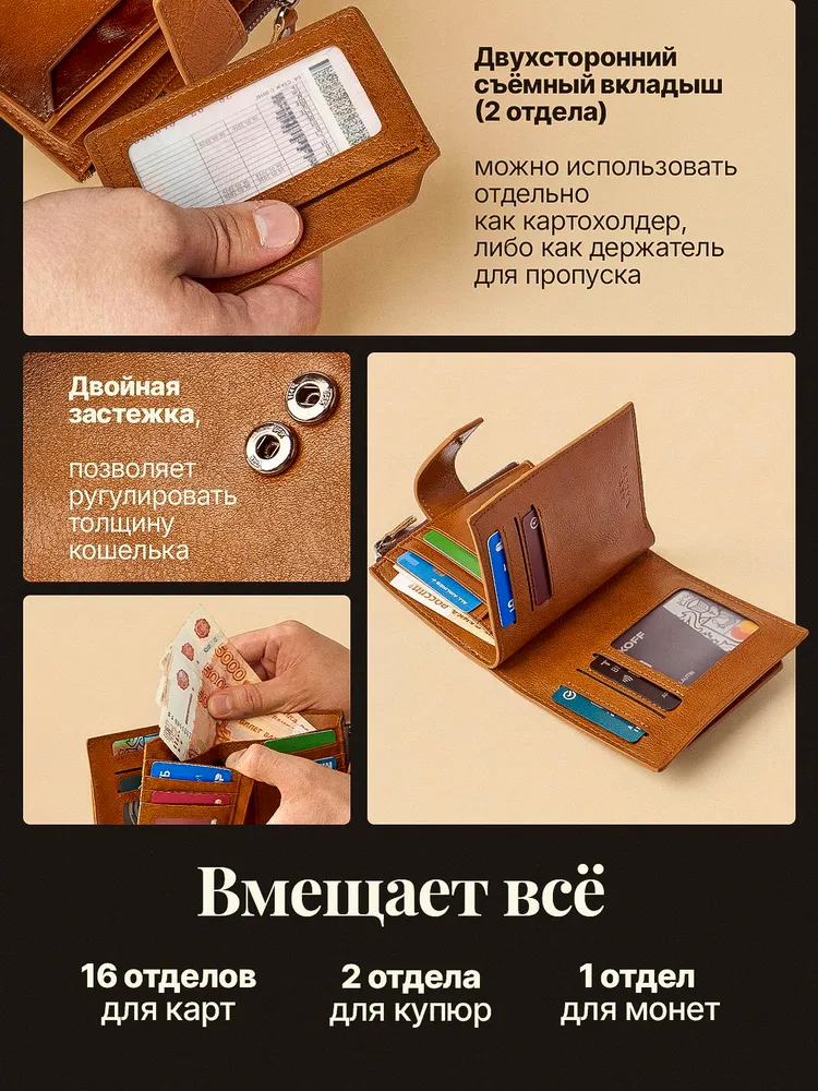 Кошелёк Премиум класса СТИЛЬ. СТАТУС. НАДЁЖНОСТЬ. Аксессуар который говорит за Вас. Продуманная организация. Всё на своих местах: - отделения для купюр; -слоты для банковских карт; - карман для монет на молнии; - отделение для купюр можно использовать для автодокументов Удобно в повседневной жизни и в поездке. Компактность и удобство Оптимальный размер без лишнего объёма Всё необходимое всегда под рукой Подарок, который оценят!!! Практичный и статусный аксессуар,готов радовать с первого дня подарочная упаковка в комплекте - готовый презент