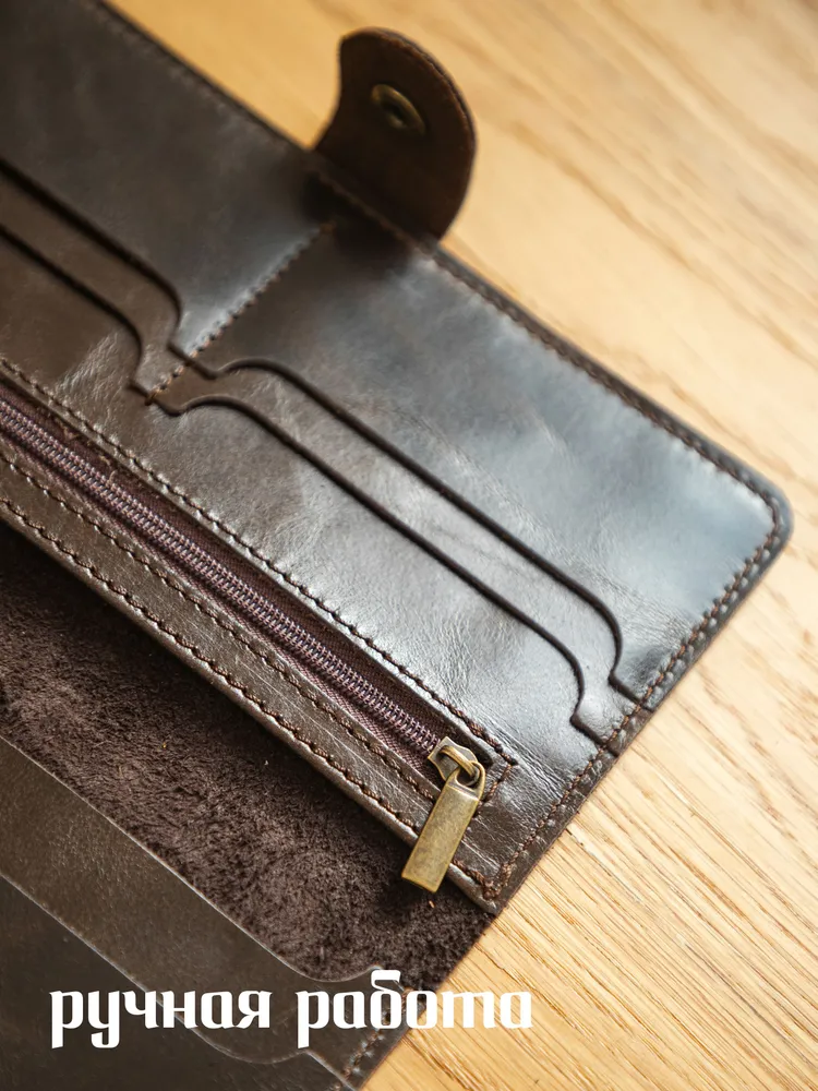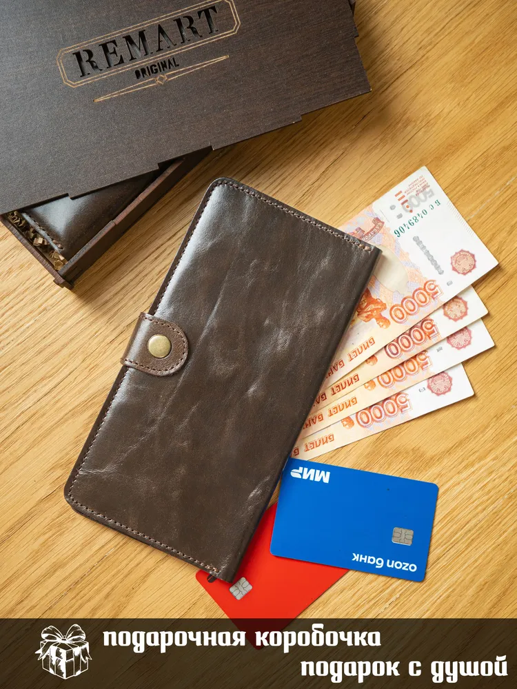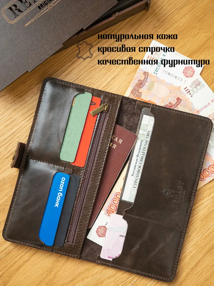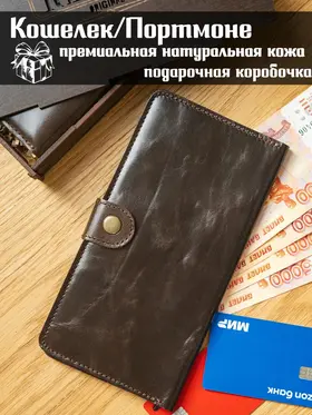 Портмоне мужское из натуральной кожи - Изготовлено из прочной натуральной кожи, сохраняет форму и элегантность годами - Компактный дизайн с 5 отделениями для карт, 2 для купюр и специальными секциями для паспорта и водительских прав - Минималистичный черный цвет идеально сочетается с деловым и повседневным стилем - Подарочная коробочка в комплекте — готовое решение для презента без дополнительных расходов - Легкий и вместительный аксессуар для ежедневного использования и поездок