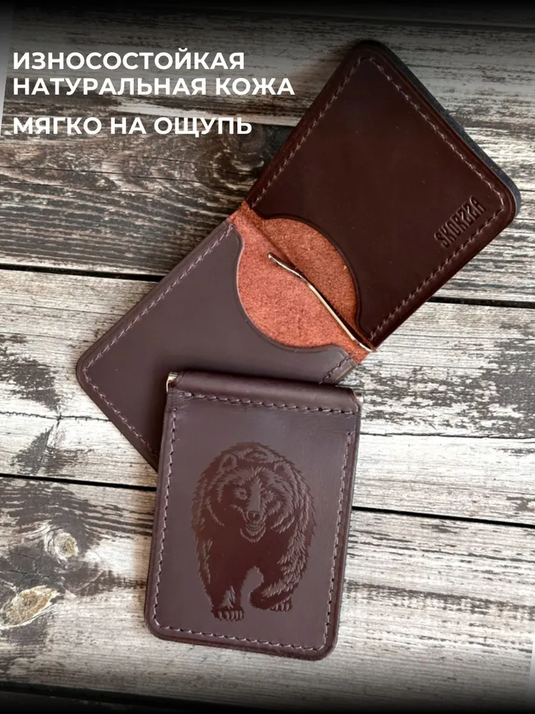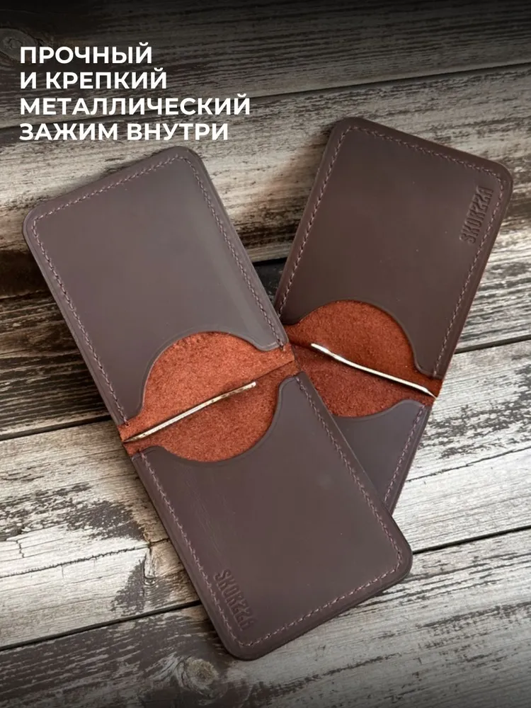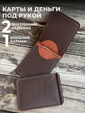 Стильный и практичный способ хранения денег и карт - зажим для купюр из натуральной кожи с карманами для карт! Изготовленный из высококачественной натуральной кожи, этот кошелек для купюр обеспечивает надежное и безопасное хранение ваших денег и карточек. Купюродержатель компактен и удобен в использовании, что позволяет легко носить его с собой в кармане или сумке Отделения для карт в зажиме позволяют вам хранить свои кредитные и дебетовые карты, визитки и другие документы в одном месте, делая его идеальным решением для организации вашей финансовой жизни. Зажим для денег с тиснением - это не только функциональный аксессуар, но и прекрасный подарок для тех, кто ценит комфорт и удобство в повседневной жизни.