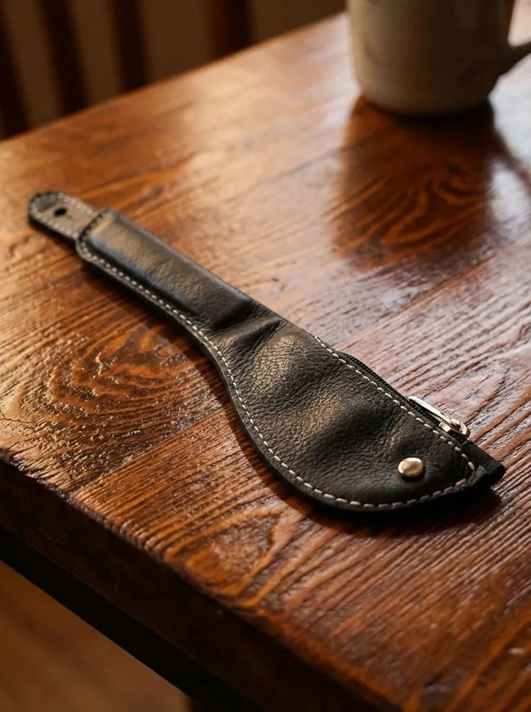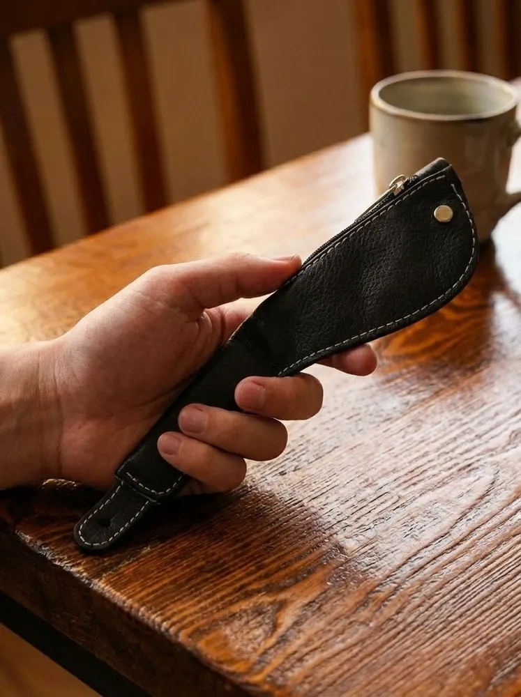 Монетница слеппер из натуральной кожи. Длина 24см. Ширина 6см. В сложенном виде застегивается на ремень Производство: Россия