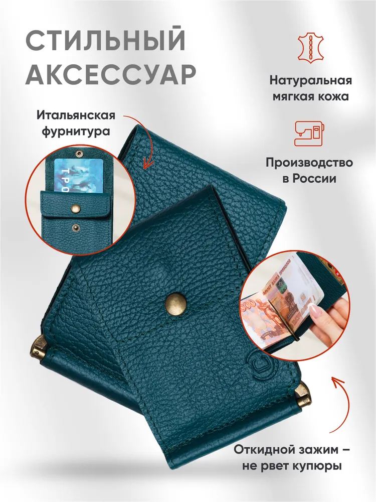 Откидной зажим из натуральной кожи Зажим для денег - незаменимый аксессуар, изготовленный из натуральной кожи. Идеально подходит для тех, кто хочет организовать свои финансы, не теряя стиль и комфорт. Этот кошелек для денег сочетает в себе удобство использования и привлекательный дизайн. Наш зажим для купюр имеет компактные размеры, что позволяет легко поместить его в карман или сумку, не занимая много места. Однако, несмотря на свою небольшую величину, он вмещает достаточное количество купюр и карточек, позволяя держать все деньги в одном месте. Зажим для денег мужской женский изготовлен из высококачественных материалов, что гарантирует его долговечность и стойкость к повреждениям. Внутренняя отделка сделана таким образом, чтобы обеспечить надежную фиксацию купюр и карточек, предотвращая их выпадение. Практичность и компактность Мужской кошелек привлекает внимание своей элегантностью и стильным исполнением. Благодаря своей универсальности, он подходит для мужчин и женщин, делая его отличным подарком на любой праздник. Неотъемлемый элемент гармонии между практичностью и эстетикой, наш кошелек женский мужской из натуральной кожи - выбор тех, кто ценит стиль и удобство. Чехол для денег это превосходный подарок на новый год, 14 февраля, 8 марта, 23 февраля, день рождение или юбилей, который порадует любого получателя своим изысканным видом и функциональностью. ВНИМАНИЕ: Фурнитура у нового изделия туго разжимается, это нормально, в процессе эксплуатации будет работать плавно. Мы часто обновляем наш ассортимент, поэтому рекомендуем, добавить наш бренд в избранное, чтобы не пропустить наши новинки! Удачных и стильных покупок с Leather Collection