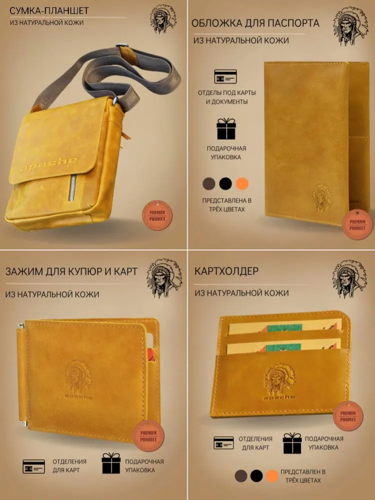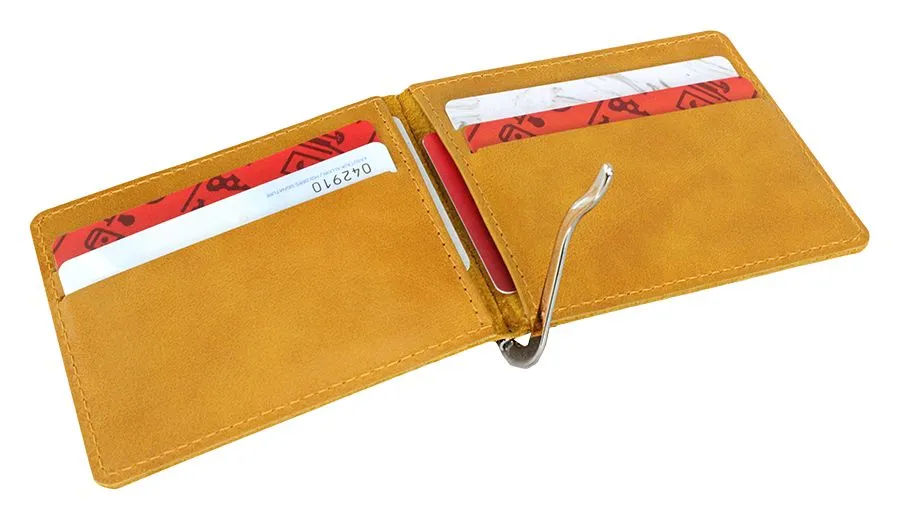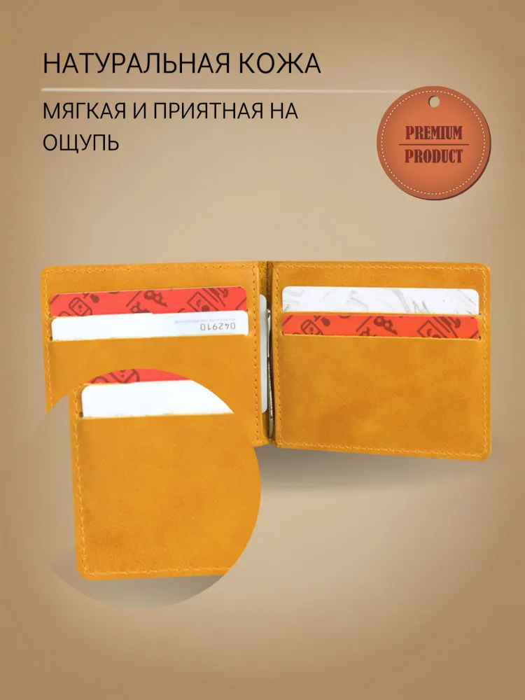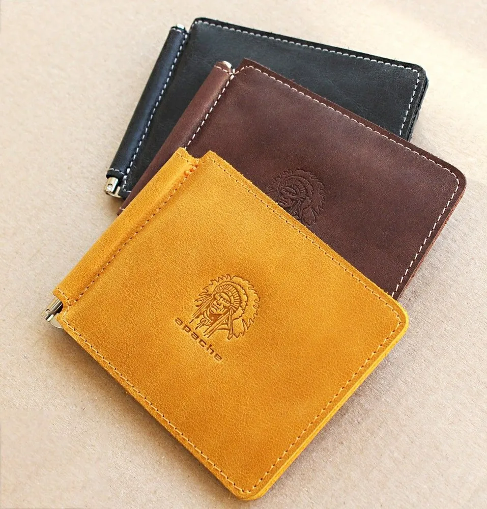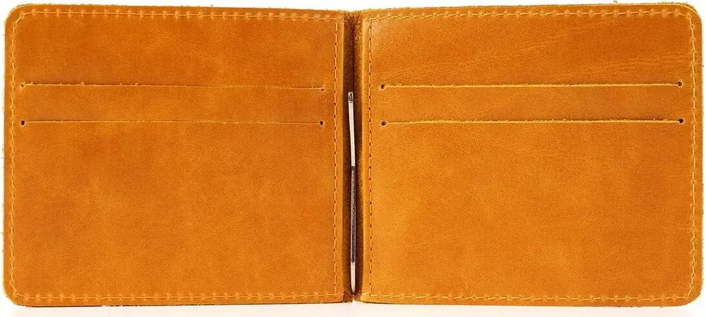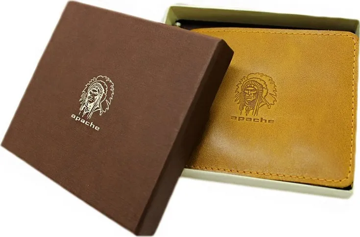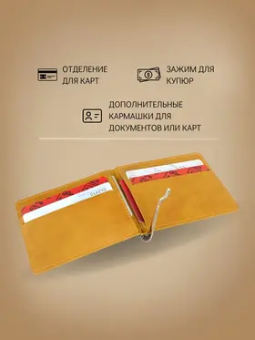 Зажим для денег кожаный ОК-А Apache табачно желтого цвета Зажим для купюр с местом для банковских карт, необходимый аксессуар для женщин и мужчин. Зажим для денег бренда Apache, лёгкий, имеет небольшой размер, поместится в любой карман. Зажим для денег из натуральной кожи, украшен двумя тиснениями (снаружи на лицевой и задней стенках) и декоративной строчкой. Внутри, на передней и задней стенках, горизонтальные кожаные карманы для пластиковых карт. По центру установлен прочный, металлический зажим для купюр который отличается качеством и долговечностью Зажим упакован в брендированную коробку из плотного картона с логотипом бренда. Такой зажим из натуральной гладкой кожи отлично подойдёт для подарка себе или своим близким. 23 февраля, День Рождения и Новый год, хороший повод подарить другу, папе, мужу, дедушке, маме или коллеге презент который прослужит долгую жизнь.