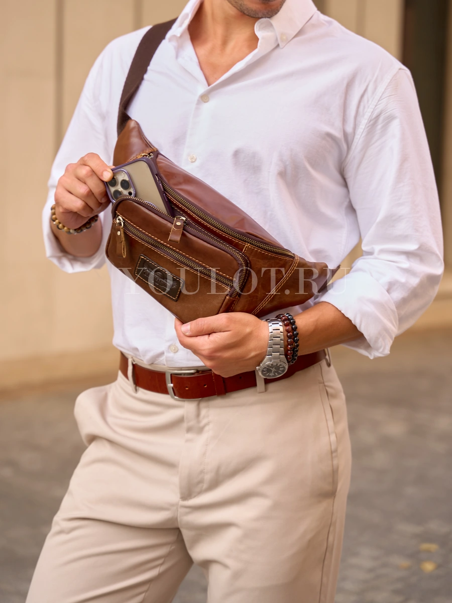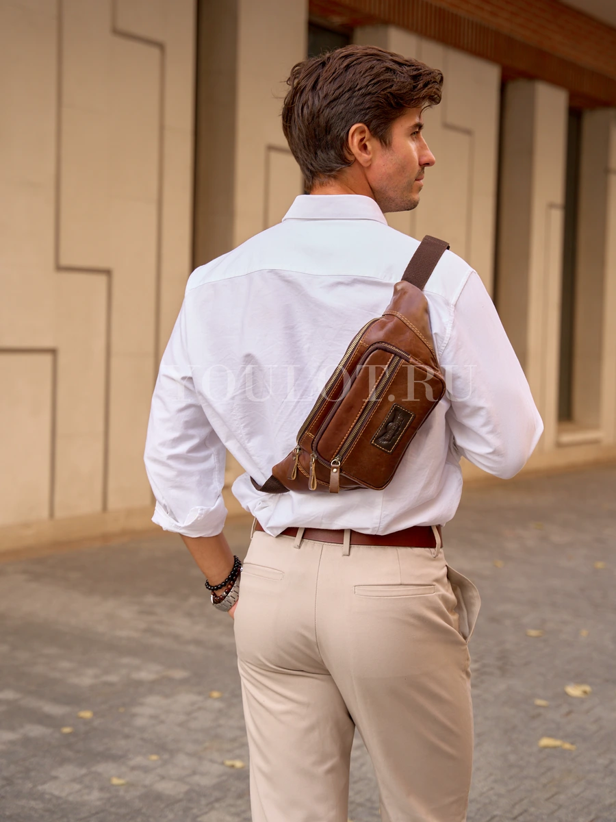 Бананка на плечо мужская Ruff Ryder 7143, сумка через плечо, на пояс кожаная