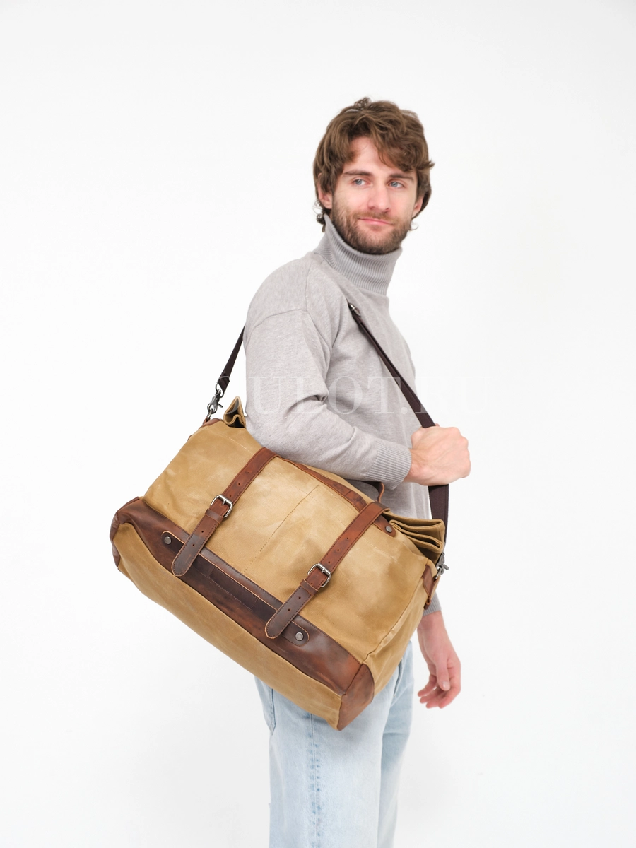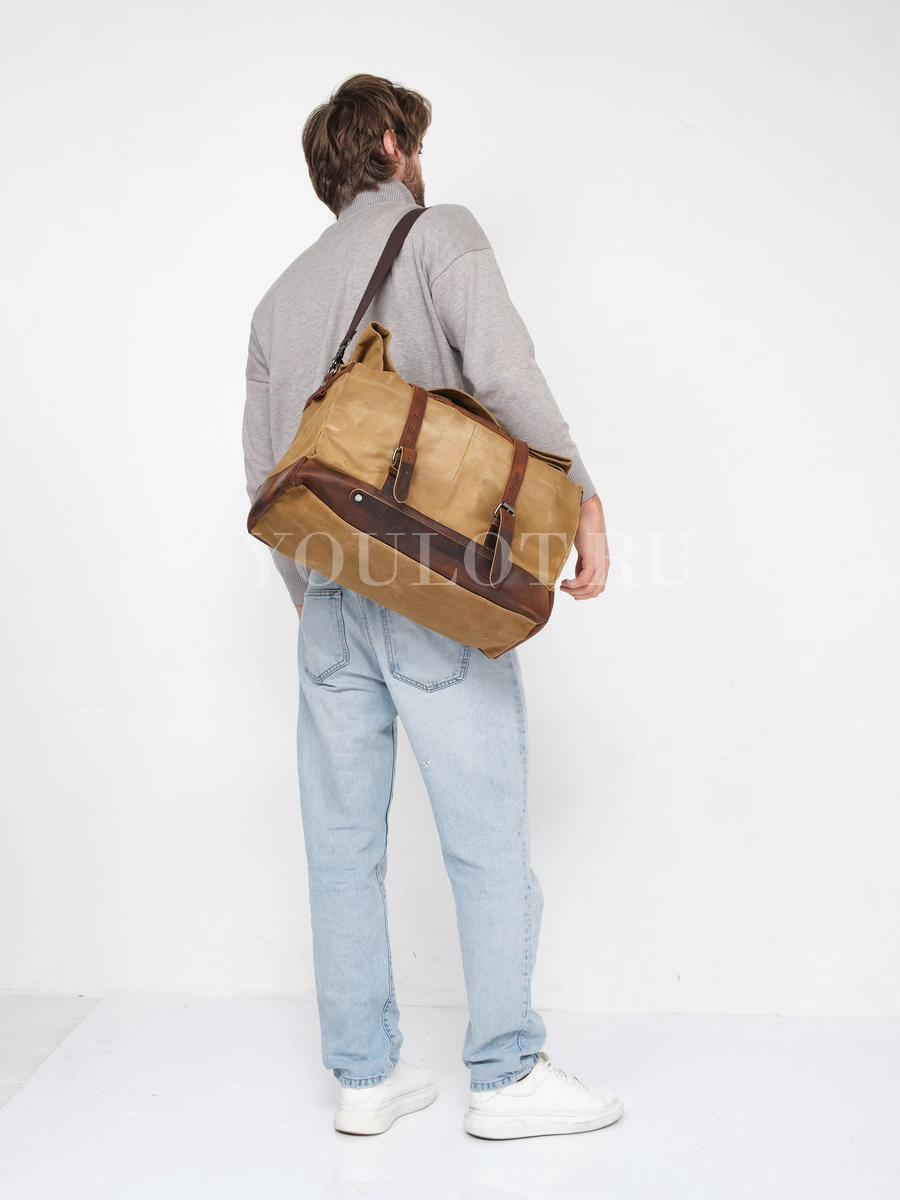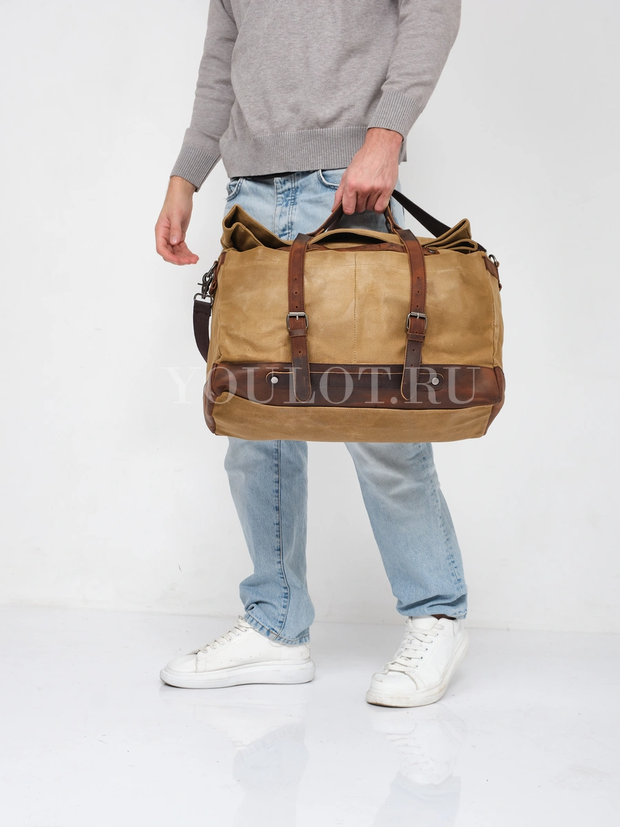 Стильная мужская дорожная сумка из прочного хлопка с элементами из натуральной кожи станет надежным спутником в любой дороге. Она отлично подходит для командировок, коротких путешествий, поездок на природу и активного отдыха. Вместительный формат позволяет аккуратно разместить все необходимые вещи без заломов и повреждений.