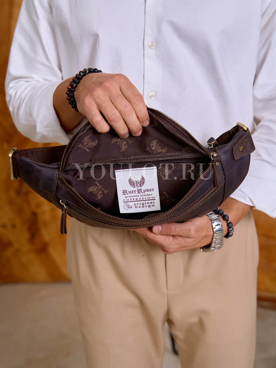 Кожаная бананка мужская Ruff Ryder из натуральной кожи коричневая — стильный и практичный аксессуар на каждый день. Модель выполнена из прочной высококачественной кожи с аккуратной фурнитурой и надежными молниями, что гарантирует долговечность и презентабельный внешний вид.