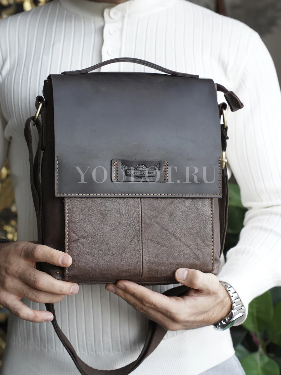 Кожаная сумка мужская Ruff Ryder с плечевым ремнём — практичный аксессуар для тех, кто ценит удобство, статус и аккуратный внешний вид. Модель выполнена из плотной натуральной кожи в классическом коричневом оттенке, который гармонично дополняет как деловой, так и повседневный образ. Такая сумка подчёркивает уверенность и хороший вкус владельца.