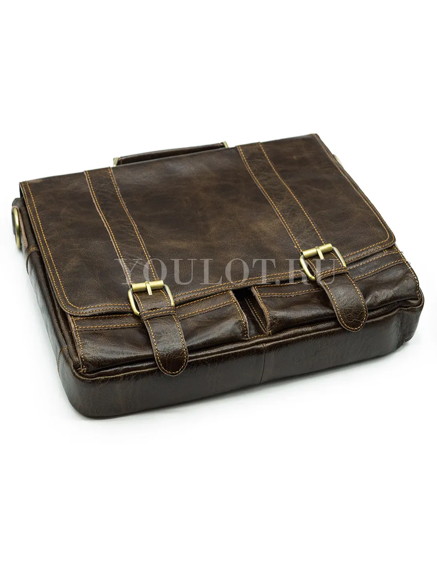 Портфель мужской кожаный Briefcase с клапаном и плечевым ремнем