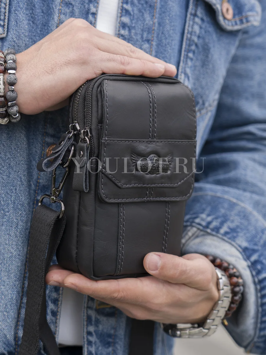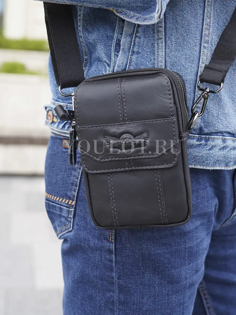 Сумка мужская через плечо, на пояс Ruff Ryder маленькая из натуральной кожи создана для активной городской жизни и тех ситуаций, когда важно иметь всё необходимое под рукой. Лаконичный чёрный цвет и аккуратный дизайн делают аксессуар универсальным — он одинаково хорошо подойдёт для повседневных дел, поездок, прогулок, а также для велосипедистов и путешественников.