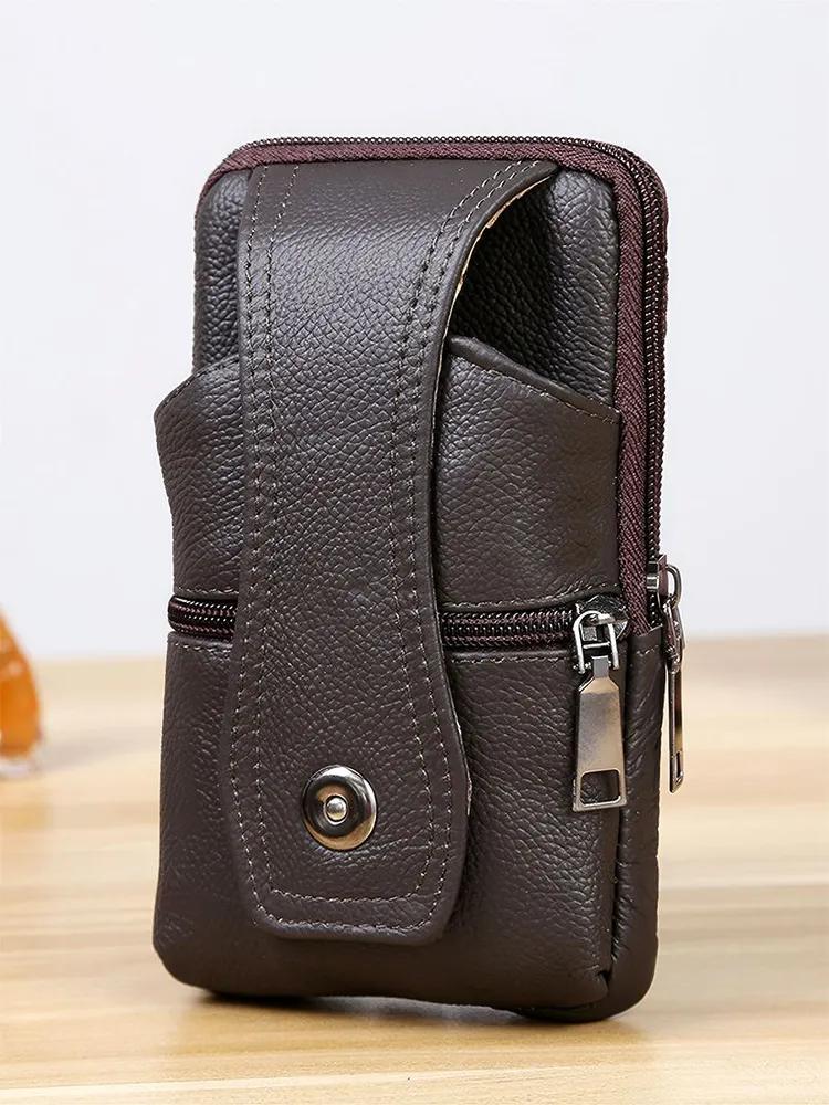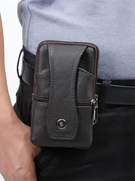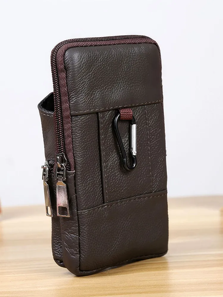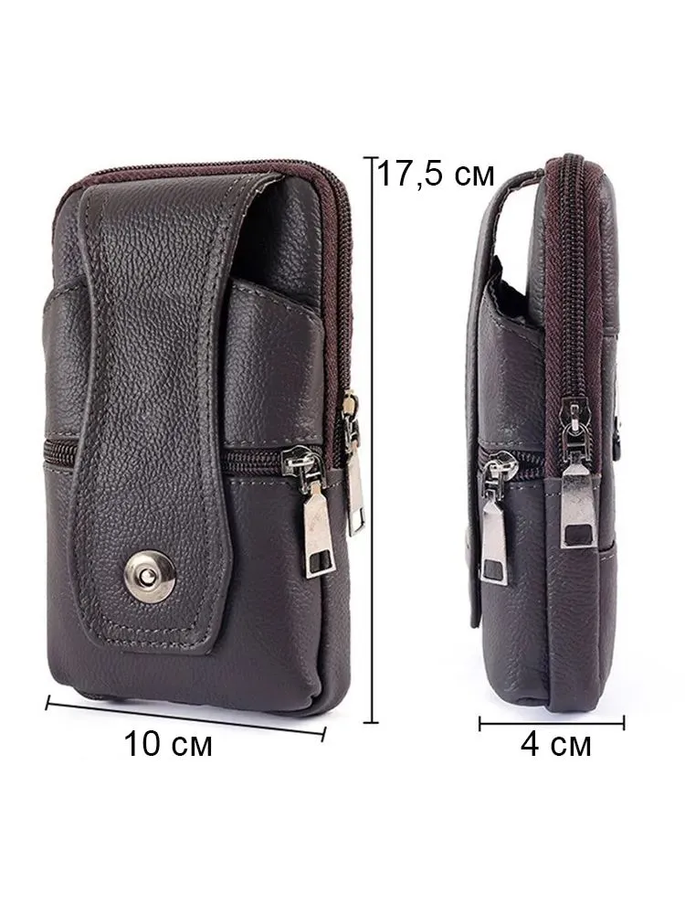 Стильный дизайн Мужская сумка маленькая - сумка-чехол - отличный вариант, когда необходимо взять с собой небольшое количество вещей! Сумка на пояс мужская с лёгкостью вмещает документы, телефон, блокнот и кошелёк! Натуральная кожа Сумка мужская оснащена специальным креплением, при помощи которого сумку можно фиксировать на брючном ремне. Поясная сумка мужская выполнена из качественной натуральной кожи, благодаря чему она прослужит долго! Вместительность Сумка мужская кожаная обладает одним основным отделением. На лицевой стороне сумка имеет карман на кнопке и карман на молнии. Классическая поясная сумка (сумка-кошелёк или сумка-органайзер для телефона) подойдёт для хранения самых необходимых в повседневной жизни вещей. Отличный подарок Мужская поясная сумка незаменима для активного отдыха, спорта, пляжа, отпуска, рыбалки, охоты, путешествий, туризма. Сумка на пояс мужская - это отличный подарок брату, папе, дедушке, другу, коллеге мужчине на 23 февраля, новый год, день рождения или день отца.