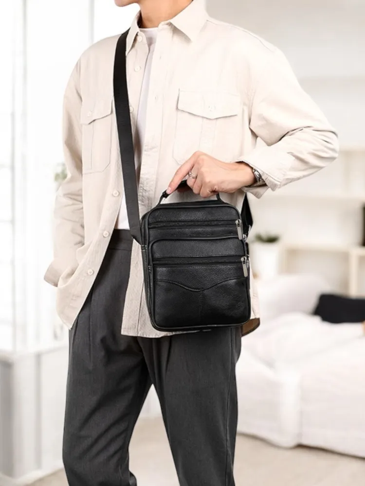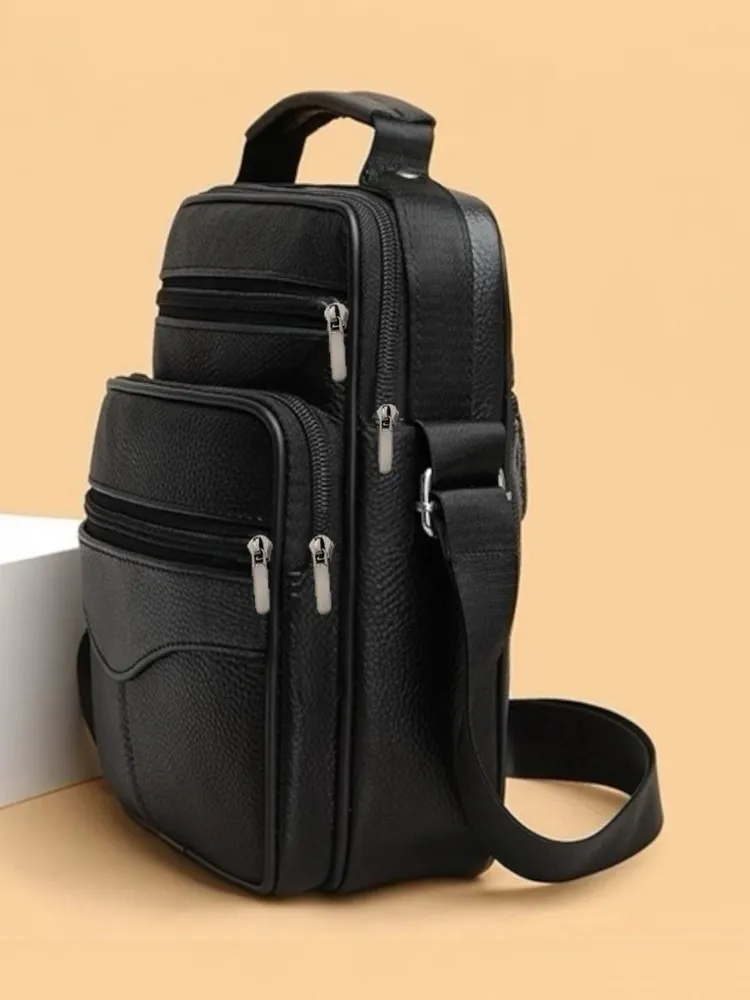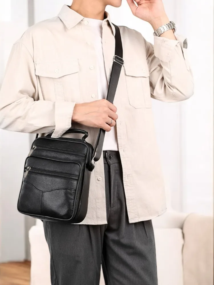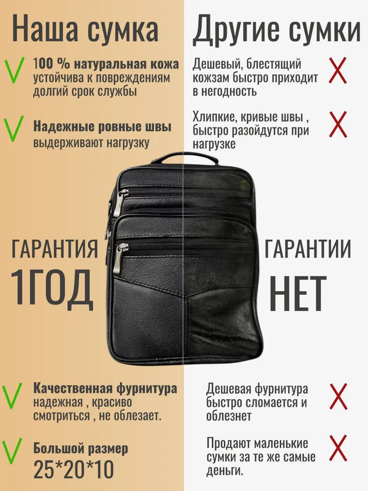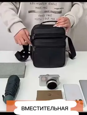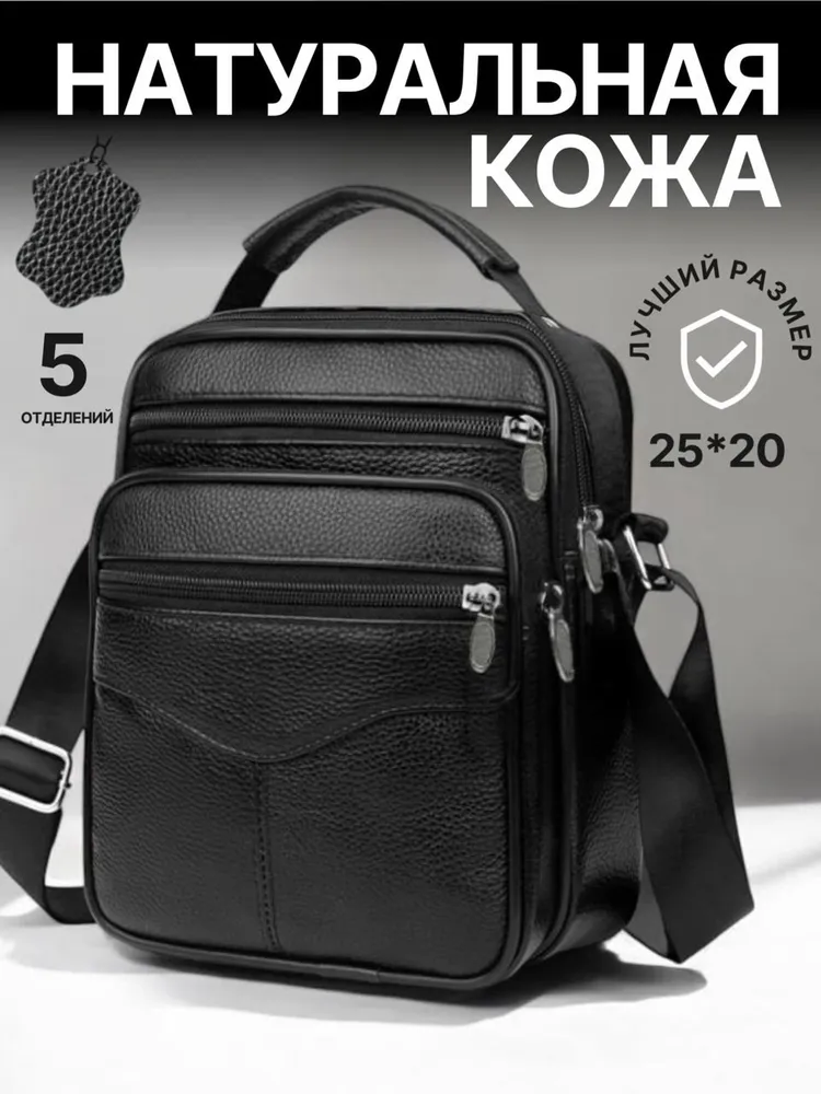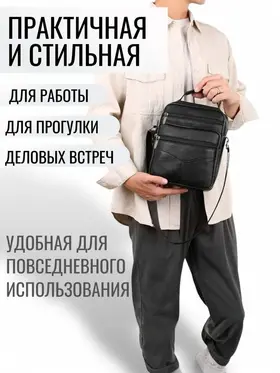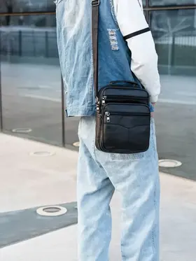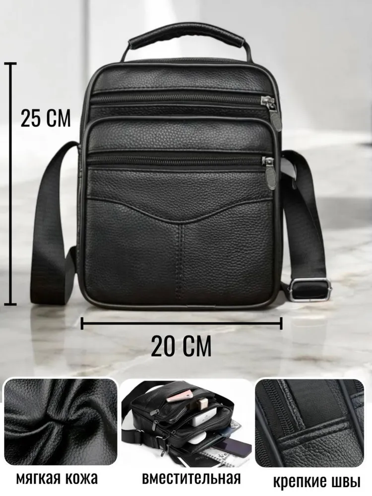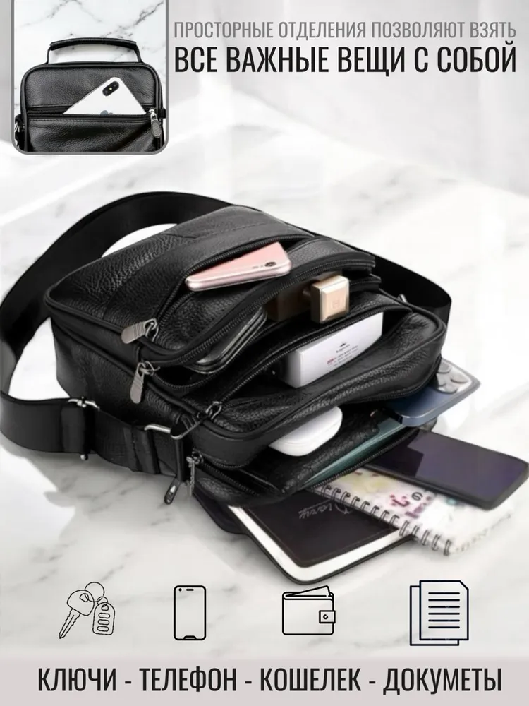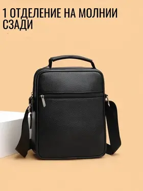 Сумка-барсетка для мужчин, выполненная из мягкой натуральной кожи. Внутри имеются два отделения с молнией, а спереди расположены три кармана также на молниях. На задней стенке находится еще один карман на молнии. Модель оснащена регулируемым ремнем на плечо, что делает её подходящей для любого роста. практичная и удобная разработана для переноски только самых необходимых вещей: паспорта, автомобильных документов, мобильного телефона и ключей.
