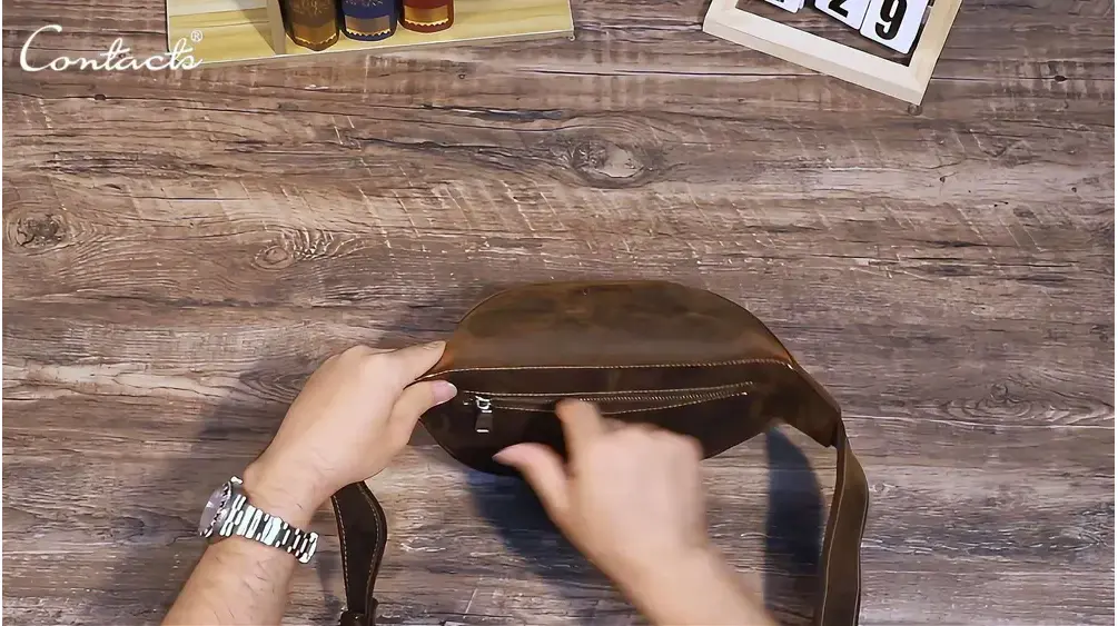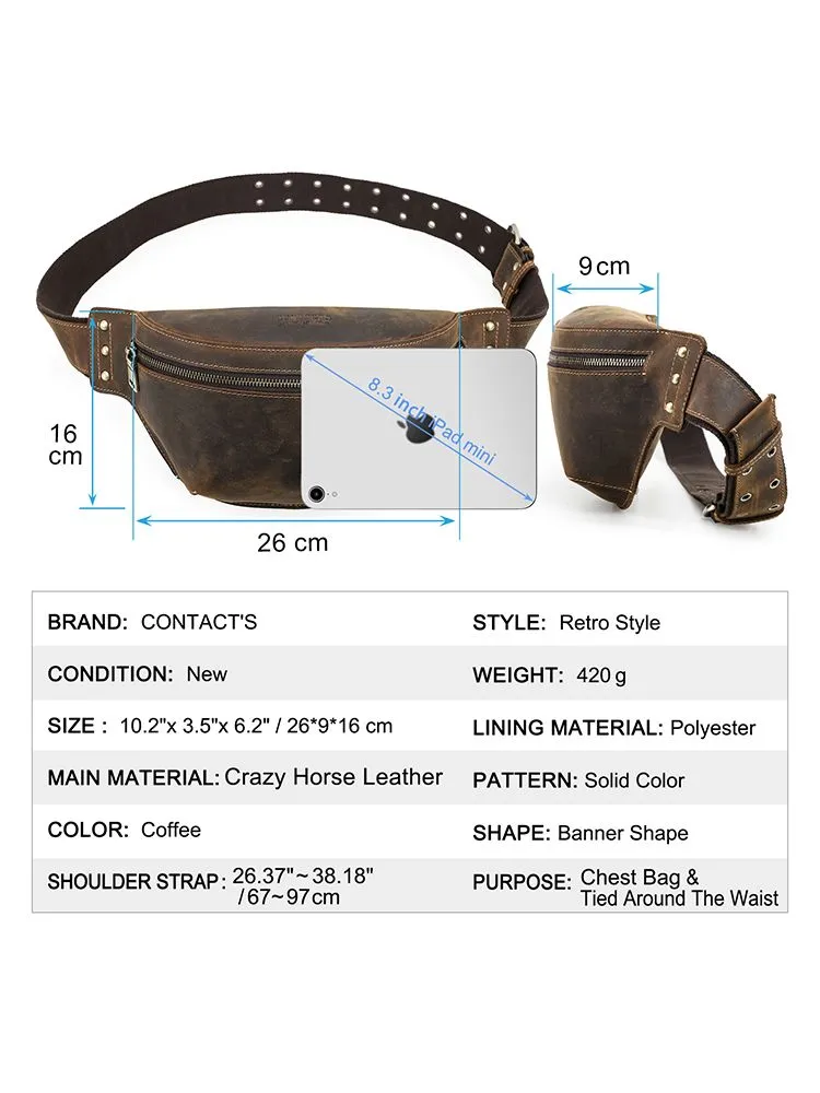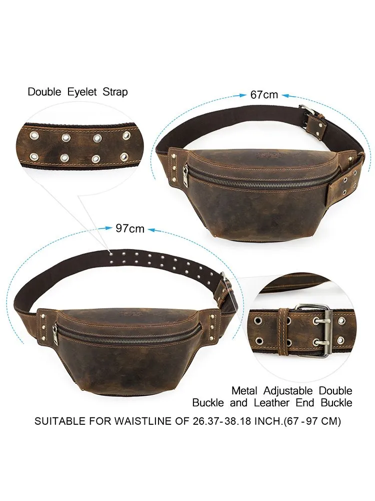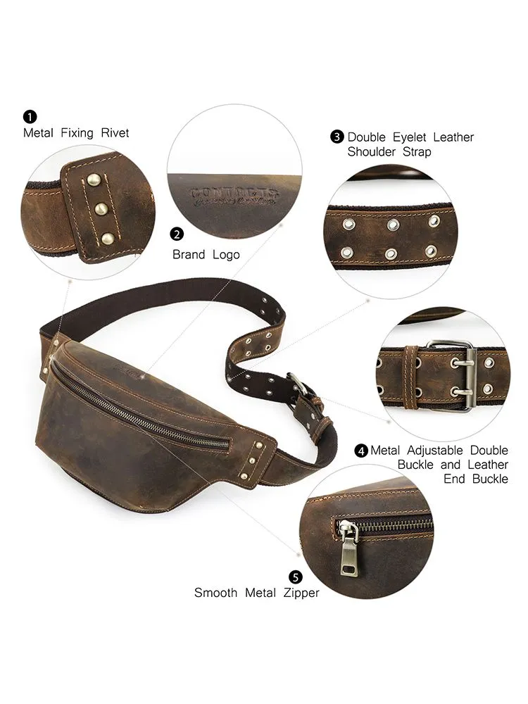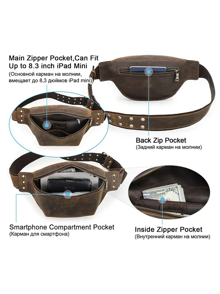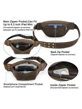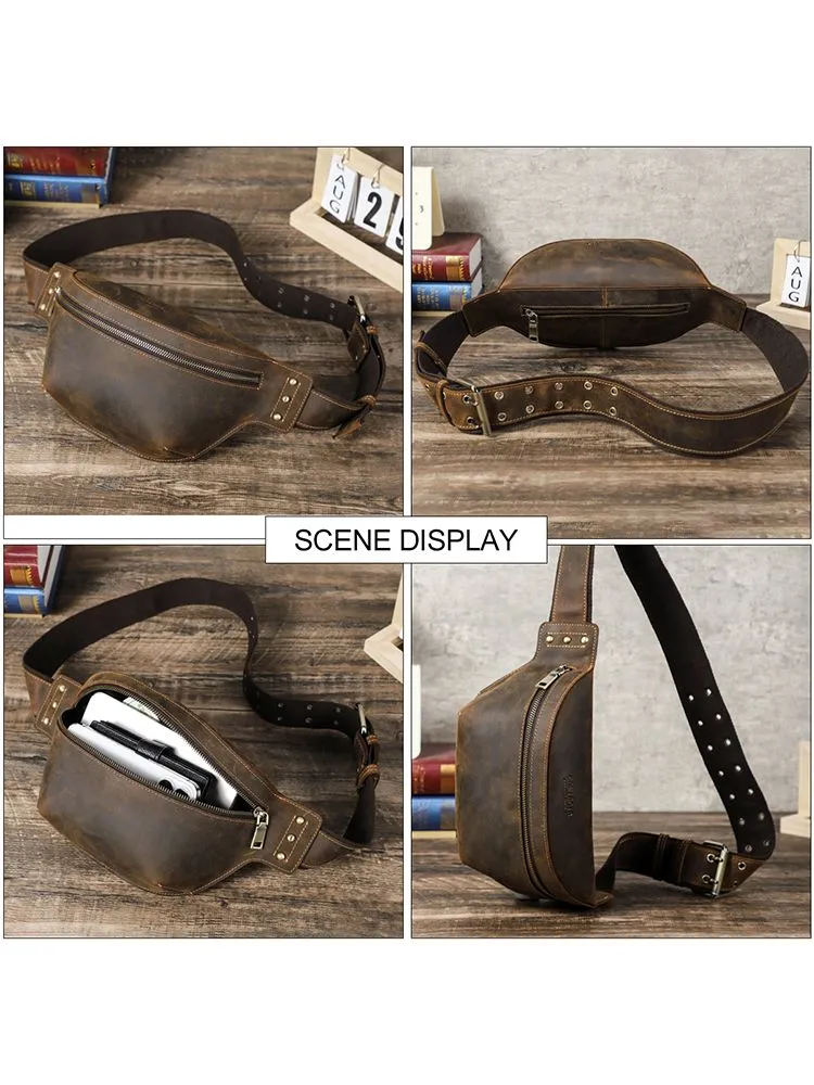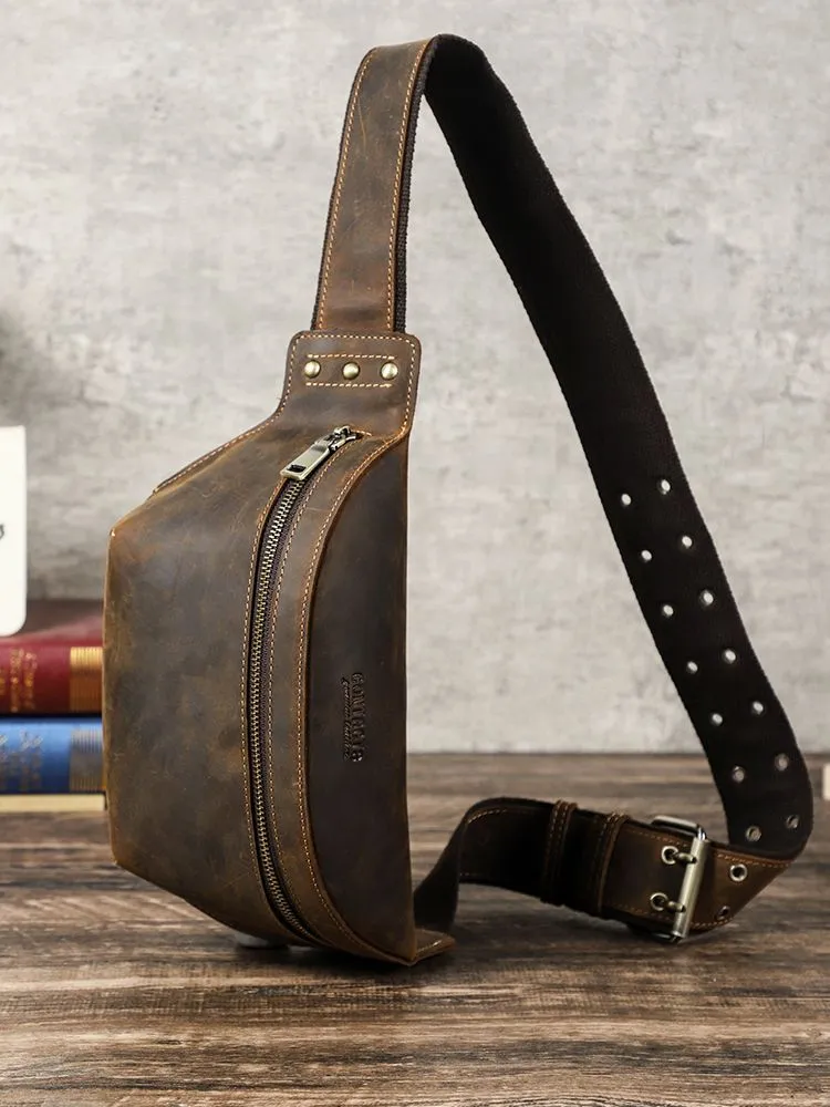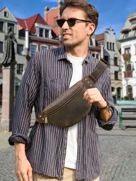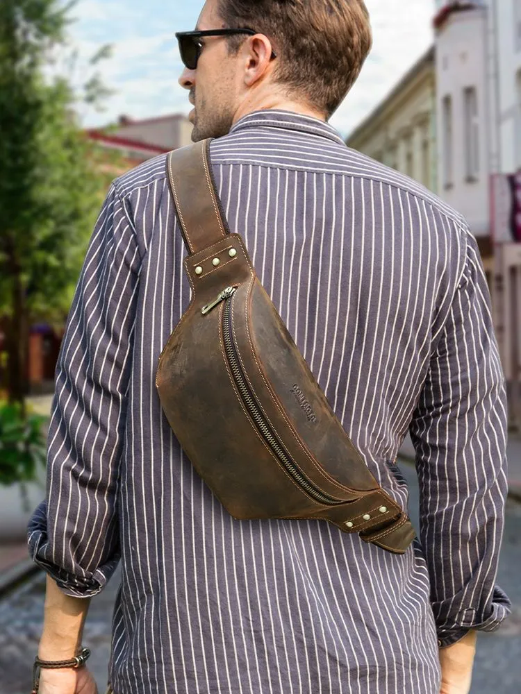 Сумка на пояс мужская, нагрудная, из натуральной кожи