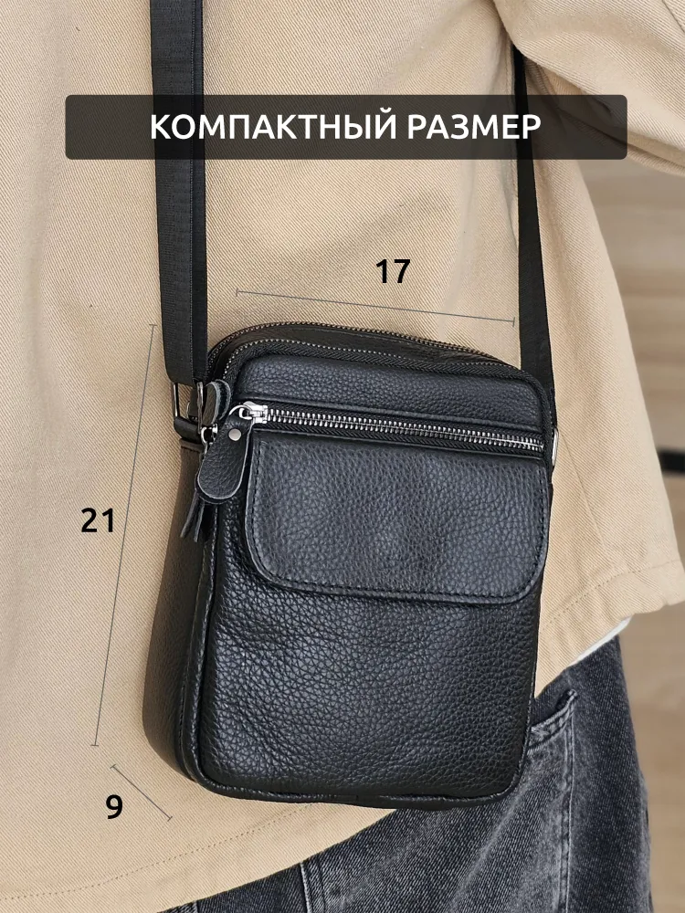 ЭКСКЛЮЗИВНАЯ мужская сумка через плечо из натуральной кожи Эта кожаная сумка на плечо – УНИКАЛЬНАЯ модель 2024 года! Это УДОБНАЯ, СТИЛЬНАЯ и ПРАКТИЧНАЯ модель для мужчин, которая подойдет на все случаи жизни. КАЧЕСТВЕННАЯ Благодаря КАЧЕСТВЕННОЙ фурнитуре и 100% НАТУРАЛЬНОЙ мягкой коже она прослужит Вам долгие годы! Она имеет ИДЕАЛЬНЫЕ сточки и прочную текстильную подкладку. ФУНКЦИОНАЛЬНАЯ Эта кожаная барсетка, несмотря на компактный размер (21*18*9 см), очень ВМЕСТИТЕЛЬНАЯ! Она имеет 6 отделений, включая внутренний карман и РЕГУЛИРУЕМЫЙ РЕМЕНЬ (от 65 до 130 см) с крепким карабином. УДОБНАЯ и СТИЛЬНАЯ Эту кожаную сумку можно носить как через плечо, так и кросс боди. Мужская сумка бренда VELANCE – выбор успешных мужчин, ценящих стиль и качество! Не упустите возможность порадовать себя и близких!