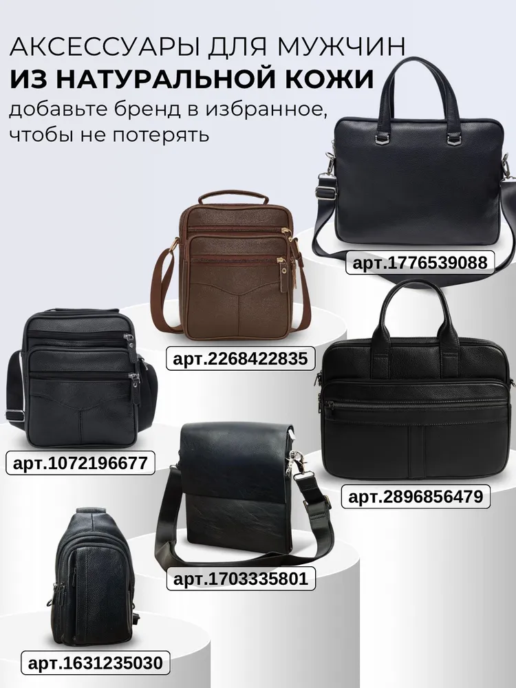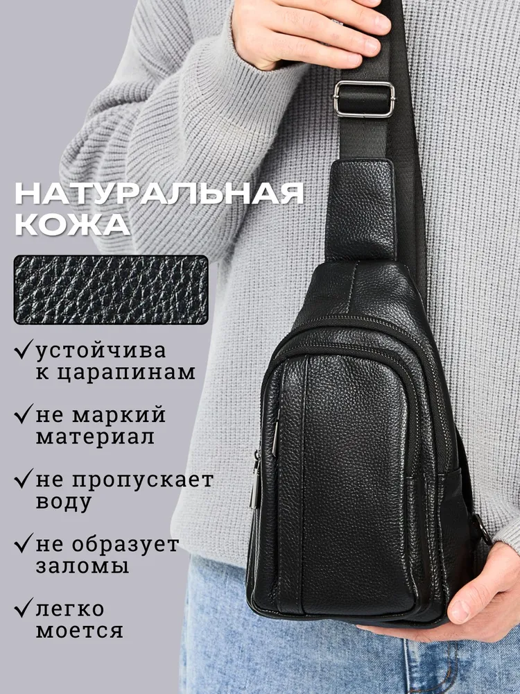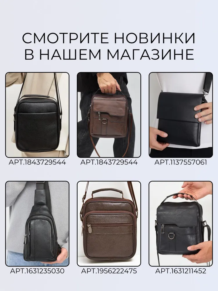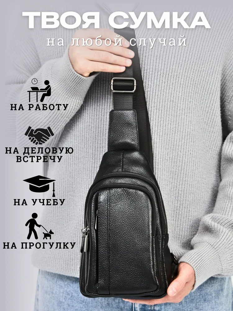 Стильная сумка для современного мужчины Ищете удобную и стильную сумку для повседневного ношения? Наша модель идеально подойдёт для мужчин, ценящих практичность. Эта сумка мужская через плечо станет незаменимой для тех, кто предпочитает держать всё необходимое под рукой. Изготовленная из натуральной кожи, она обладает долговечностью и стильным дизайном, что делает её отличным выбором для любого случая - будь то деловая встреча, прогулка по городу или путешествие. Регулируем ремень Ремень выполнен из плотного нейлона. Длина ремня регулируется от 85см до 159см, что позволяет выбрать комфортную длину человеку любого роста и телосложения. Фурнитура При производстве сумки использовалась только надежная металлическая фурнитура, которая прослужит Вам долгие годы. Карман Анти-вор Задний карман антивор для самого ценного. Вместит ключи, наличные или банковские карты. Вместительность Несмотря на небольшие размеры, сумка оснащена большим количеством отделений. 1 основное и 4 кармана. Организация хранения Внутри основного отдела расположен карман на молнии, который идеально подойдет для хранения документов. Универсальность. Сумка из натуральной кожи станет Вашим любимым аксессуаром на каждый день. К ней не просто приятно прикасаться и удобно использовать - каждый её элемент говорит о том, что она была создана именно для вас. Этот аксессуар подчеркнет Ваш стиль и индивидуальность.