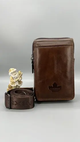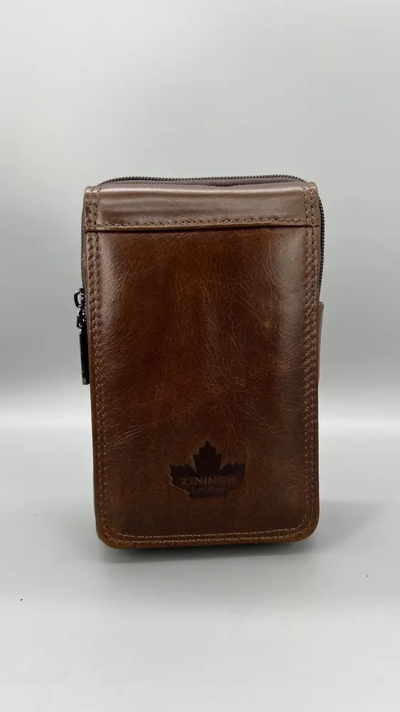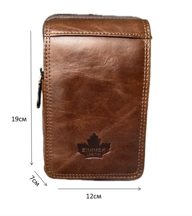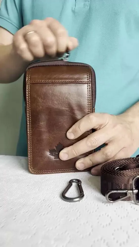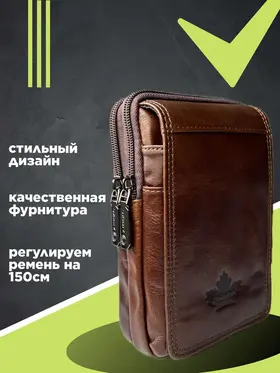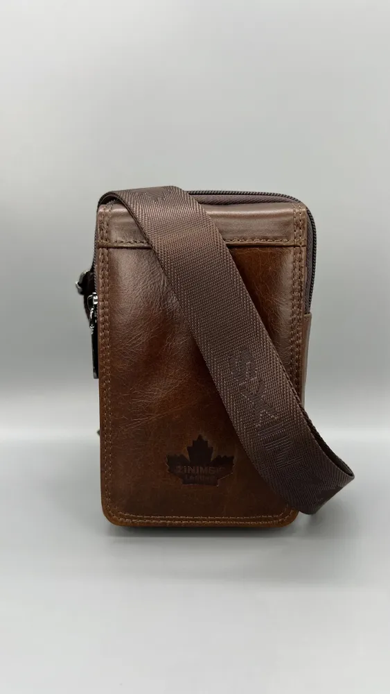Кожаная сумка на пояс мужская, коричневая