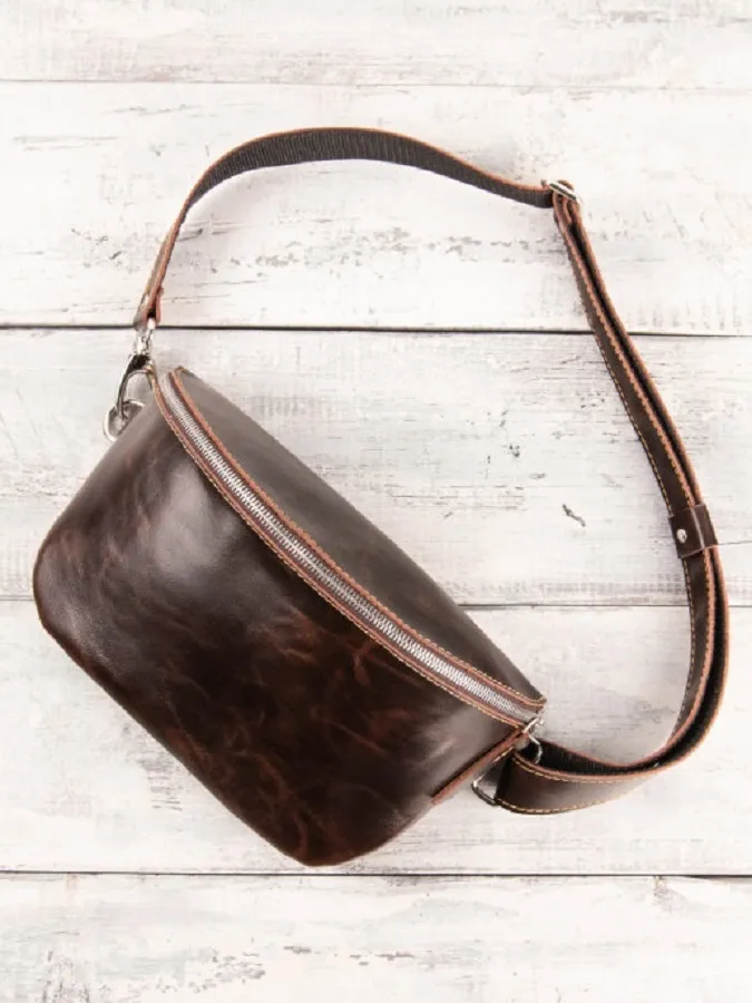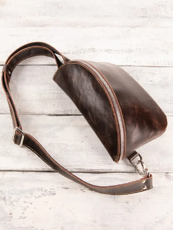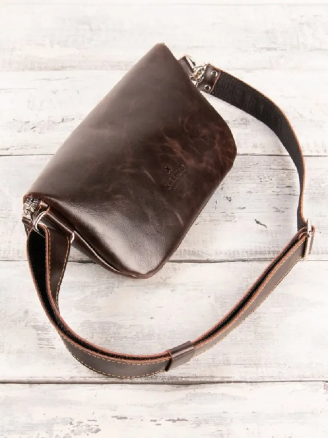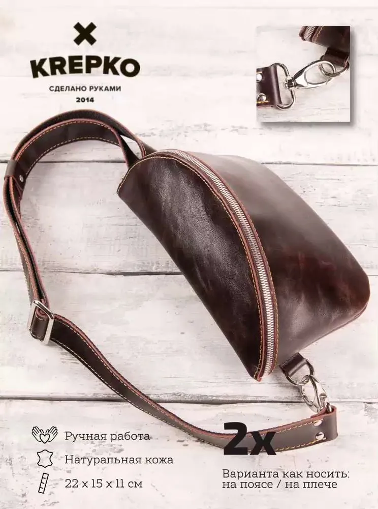 Сумка из натуральной кожи от KREPKO Поясная сумка Miller KREPKO — компактная барсетка unisex из кожи pull up растительного дубления. Универсальная носка: пояс, плечо, через плечо. Одно отделение на надежной молнии для документов/ценностей. Ручная работа, регулируемый ремень. Без подклада для прочности. Подарок на 23 февраля, 8 марта, Новый год! Купите молодежный стиль! Характеристики ‣ Материал: Натуральная кожа pull up растительного дубления (ручная работа) ‣ Отделения: 1 основное на молнии ‣ Носка: Пояс/плечо, регулируемый ремень ‣ Дизайн: Компактная бананка, премиум-фурнитура ‣ Уход: Протирать влажной тканью Для города и прогулок. Преимущества ‣ Универсальность: Мужчинам/женщинам, любой образ. ‣ Безопасность: Молния защищает ценности. ‣ Долговечность: Кожа + фурнитура на годы. ‣ Уникальность: Ручная работа — эксклюзив. ‣ Подарок: Мужу, маме на 14 февраля, ДР. Городской фаворит! Добавьте в корзину — подарок готов! Уникальность натуральной кожи Натуральная кожа pull up - это высококачественный материал, который изготавливается из цельных кожевенных шкур высшего качества. Его называют "тянущейся" или "скрученной" кожей, так как она легко поддаётся механическим воздействиям и при этом сохраняет свою эластичность и прочность. Преимущества кожи Pull Up ‣ Износостойкость: Служит годами без потери вида. ‣ Уникальность: Естественный рисунок — каждое изделие эксклюзивно. ‣ Натуральные оттенки: Не выцветает, подходит для аксессуаров и мебели. ‣ Дышащие свойства: Комфорт в жару/холод, легкий уход (протирать тканью). ‣ Главное — красота и долговечность: инвестиция в стиль на годы.