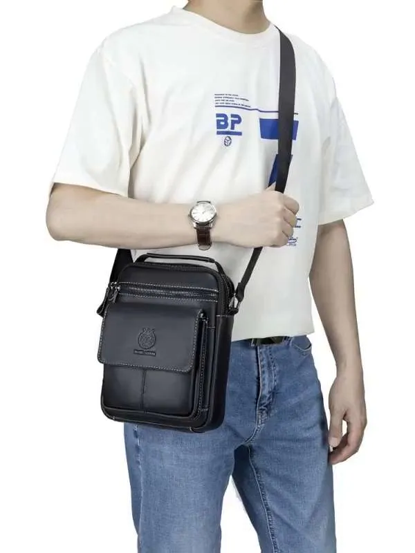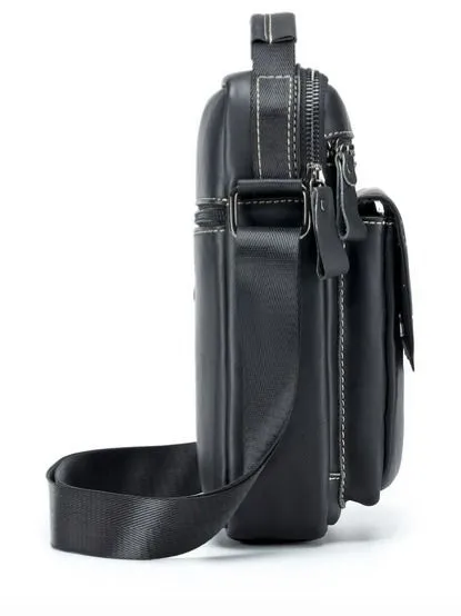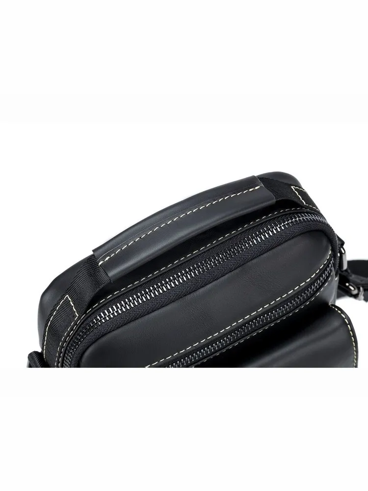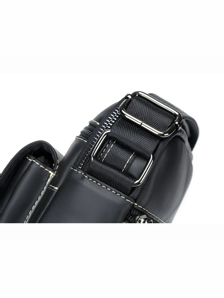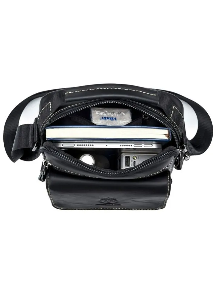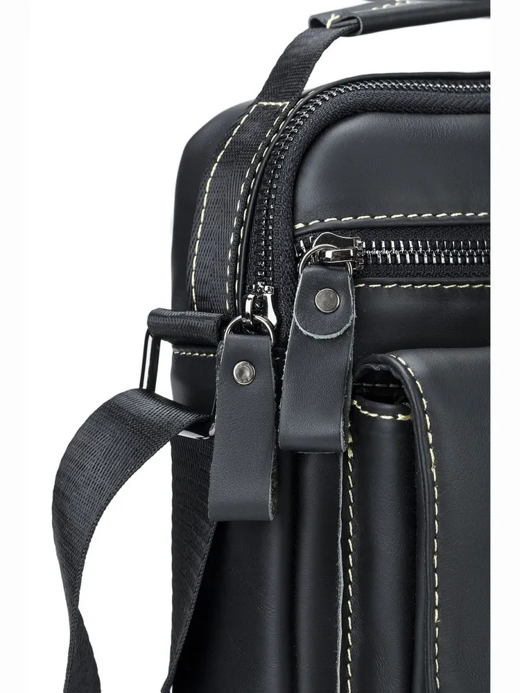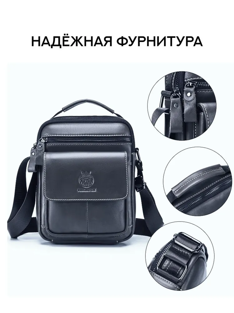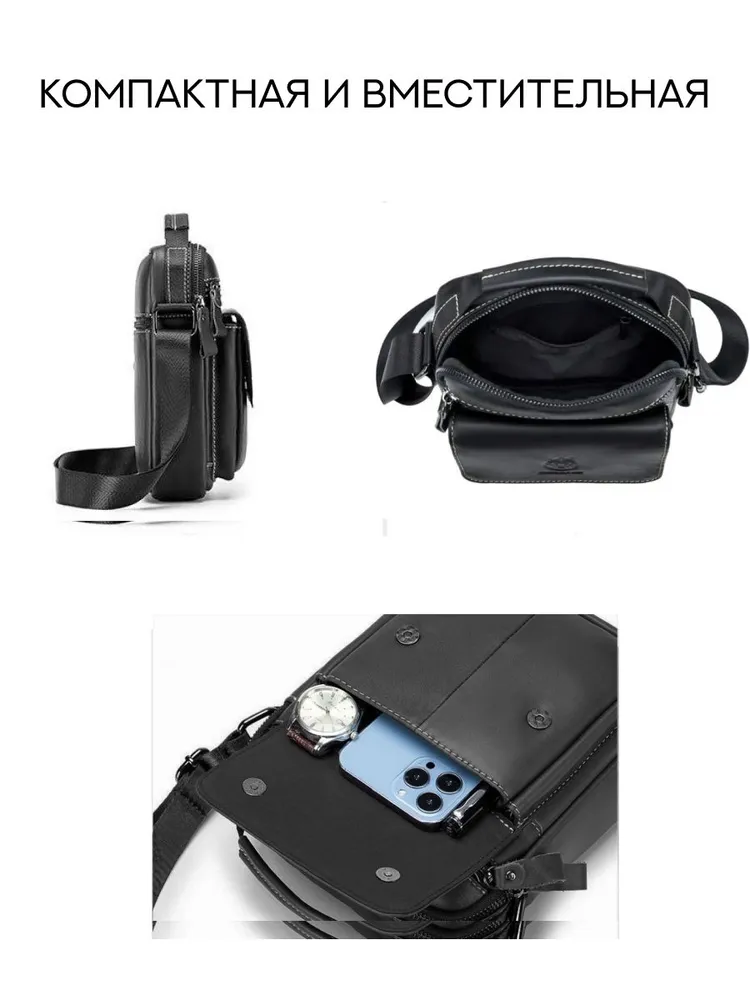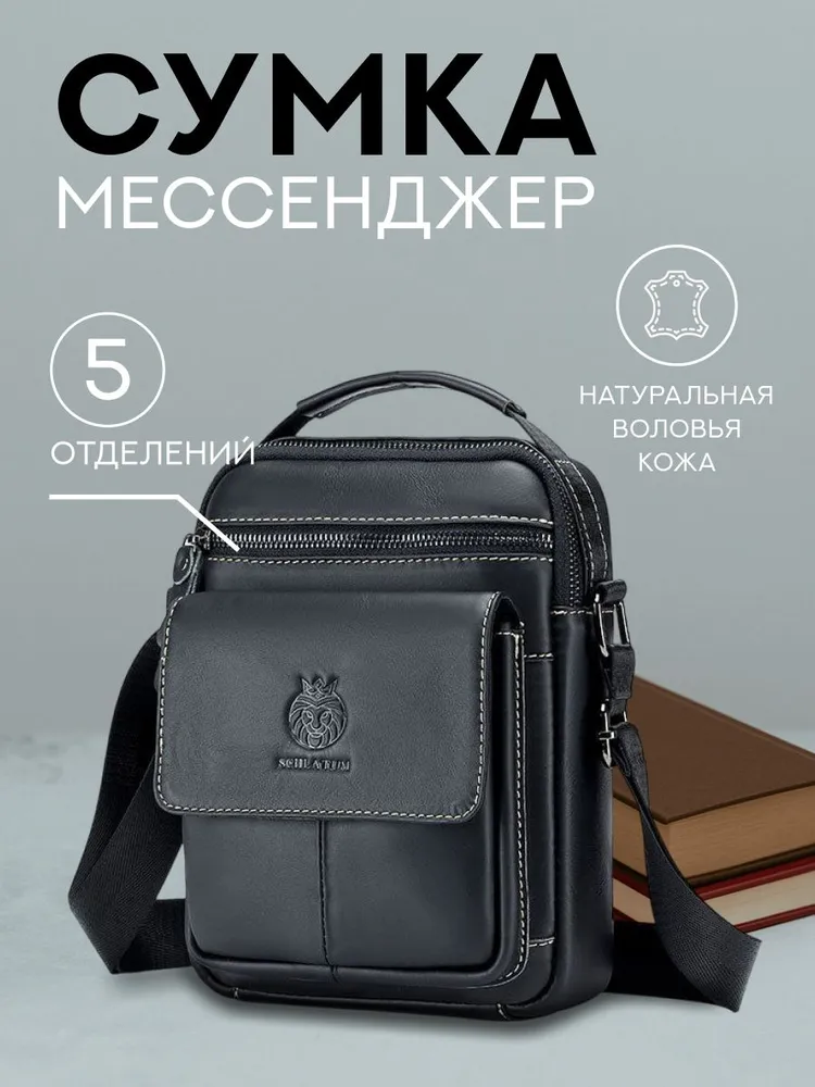 Высокая функциональность в классическом исполнении 1. 5 отделений для быстрого доступа к личным вещам; 2. Железные молнии и карабины для частой эксплуатации и эстетичного внешнего вида; 3. Длинный (140 см.) ремень для любого роста. ВОЛОВЬЯ КОЖА / Премиальное качество / Сумка выполнена из премиальной воловьей кожи экстра выделки, что обеспечивает: 1. Высокую износостойкость и прочность; 2. Мягкость текстуры и уникальный рисунок зерна; 4. Глубокий и насыщенный цвет; 4. Дышащую поверхность, устойчивую к суровым погодным условиям; 5. Современный и практичный дизайн, максимально функциональный в эксплуатации. Премиальная фурнитура Металлические карабины и железные кнопки и молнии устойчивы к суровым погодным условиям. Эффективны при частой эксплуатации. Эстетичный внешнего вид отдельных элементов сумки, как обязательный атрибут вещей premium класса. Самые популярные размеры в стильной классике Высокую функциональность обеспечивает современный эргономичный дизайн. Светлая строчка на чёрной коже, акцентирует дорогую поверхность сумки, которая сразу привлекает к себе взгляды Кожаные элементы фурнитуры выделяют сумку по уровню качества. Это заметный и дорогой, но в тоже время функциональный атрибут