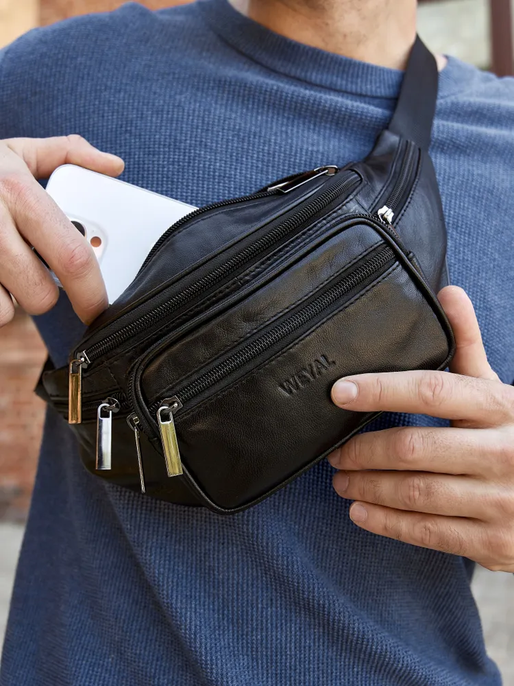 Поясная сумка мужская выполнена из натуральной кожи. Сумка поясная имеет семь отделений на молнии для разных нужд. Ремень на сумке регулируется. Такая сумка бананка отлично подойдет для прогулок на свежем воздухе, поездок. Мужская и женская сумка - это не только удобный и практичный аксессуар, но и стильный элемент гардероба. Она позволяет удобно разместить все необходимые вещи и обеспечивает быстрый доступ к ним в любой момент. Поясная сумка - это идеальный выбор для тех, кто ценит удобство и свободу движений. Она легко крепится на поясе и не мешает при ходьбе или занятиях спортом. Сумка из натуральной кожи - это признак высокого статуса и хорошего вкуса. Такая сумка прослужит долго и будет выглядеть дорого и элегантно.Бананка - это eдобный и практичный вариант сумки для мужчин и женщин.