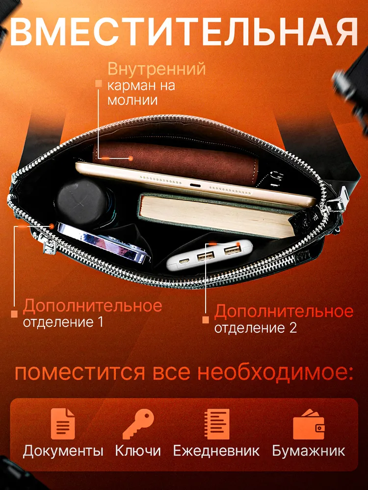 Мужская кожаная сумка - это идеальный выбор для тех, кто ценит качество и стиль. Эта сумка изготовлена из натуральной кожи высокого качества, что обеспечивает ее долговечность и прочность. Она имеет удобную форму, которая позволяет легко носить ее на плече или перекинуть через плечо. Внутри сумки есть несколько отделений для хранения ваших личных вещей, таких как ключи, кошелек и телефон. Она также оснащена молнией, которая обеспечивает быстрый доступ к вашим вещам. Отличный выбор для тех, кто хочет иметь надежный и стильный аксессуар для своей повседневной жизни. Она будет подходящей для работы, учебы или просто для прогулок по городу.